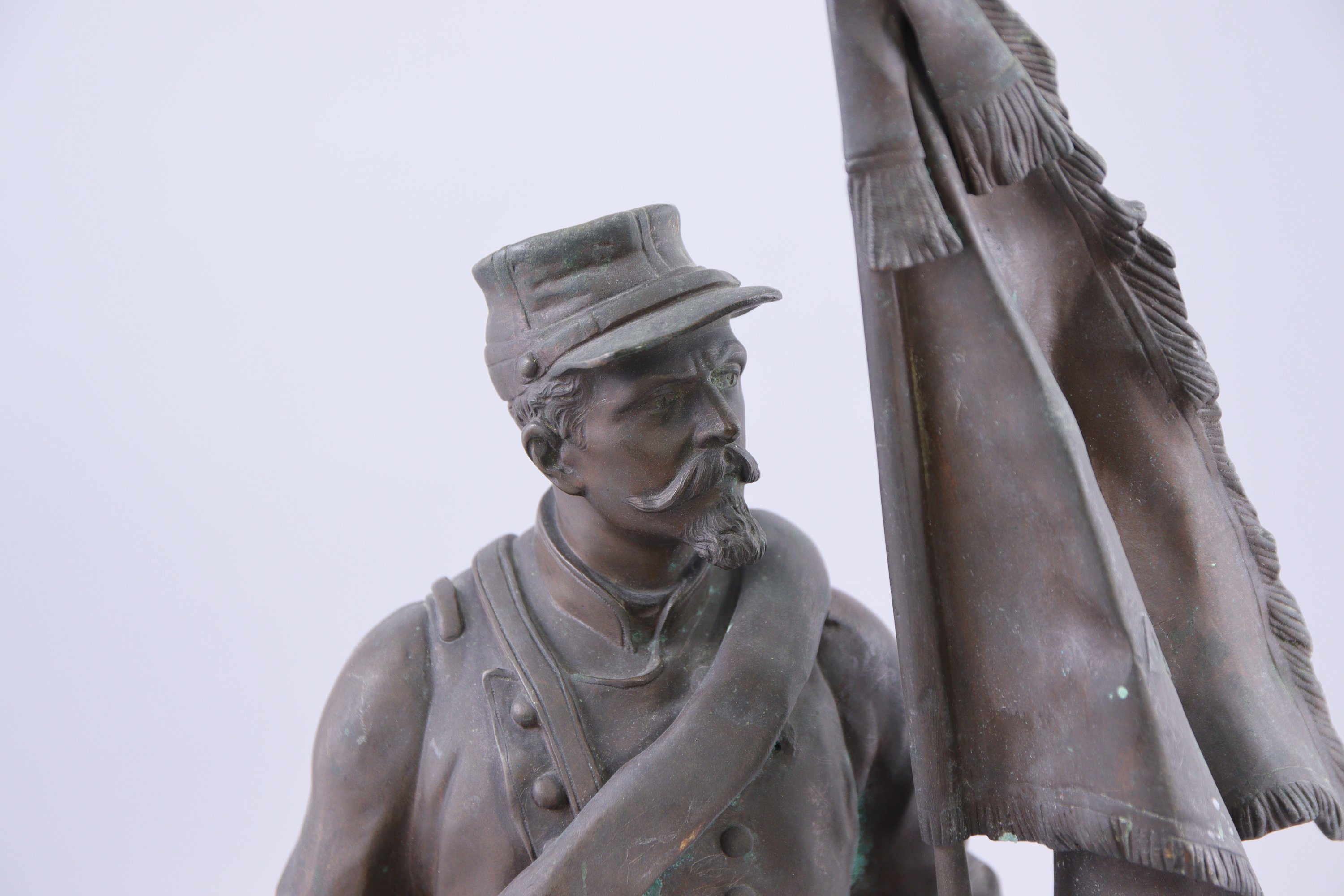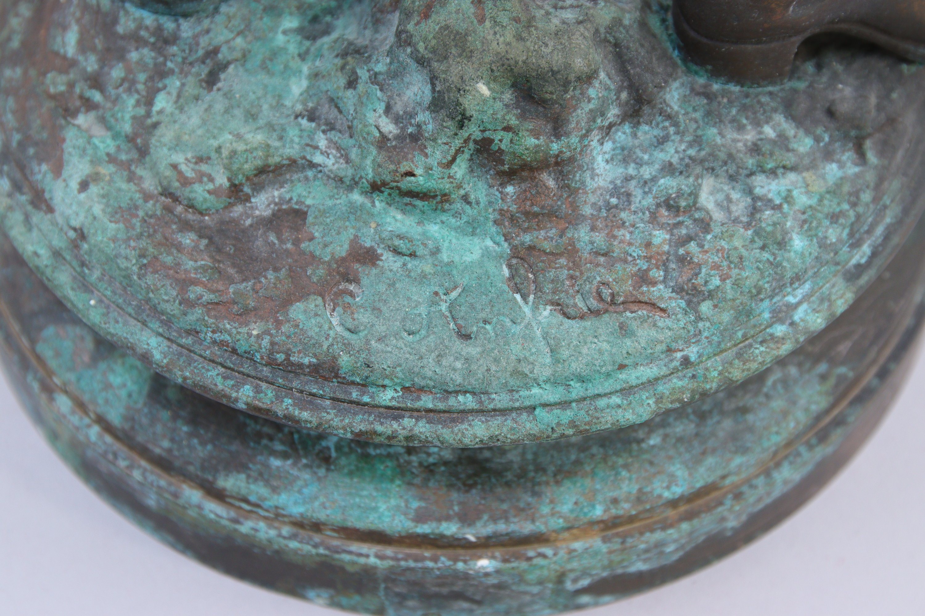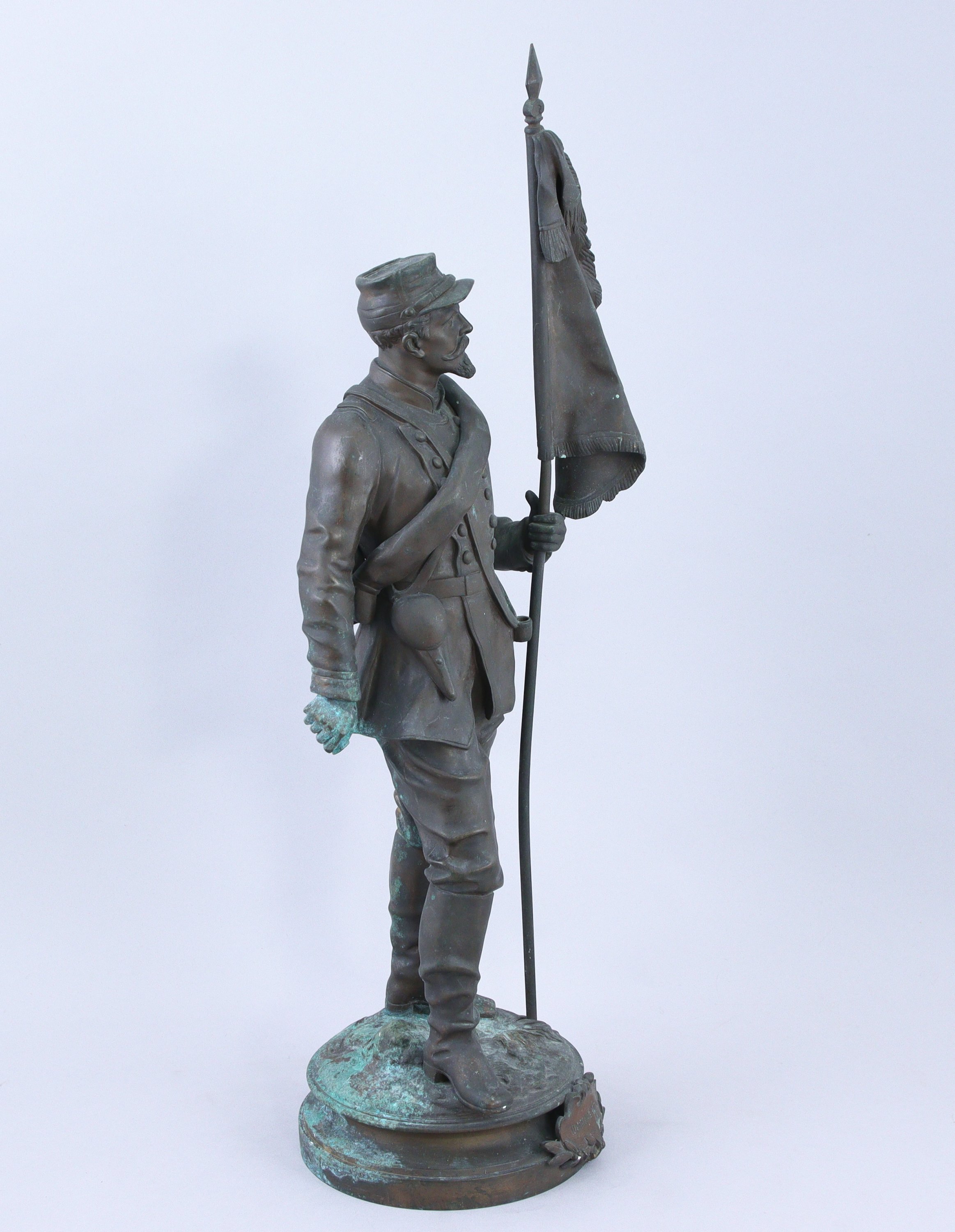 Bronze patiné. Signé et orné sur la terrasse d'un écusson "Honneur & Patrie".