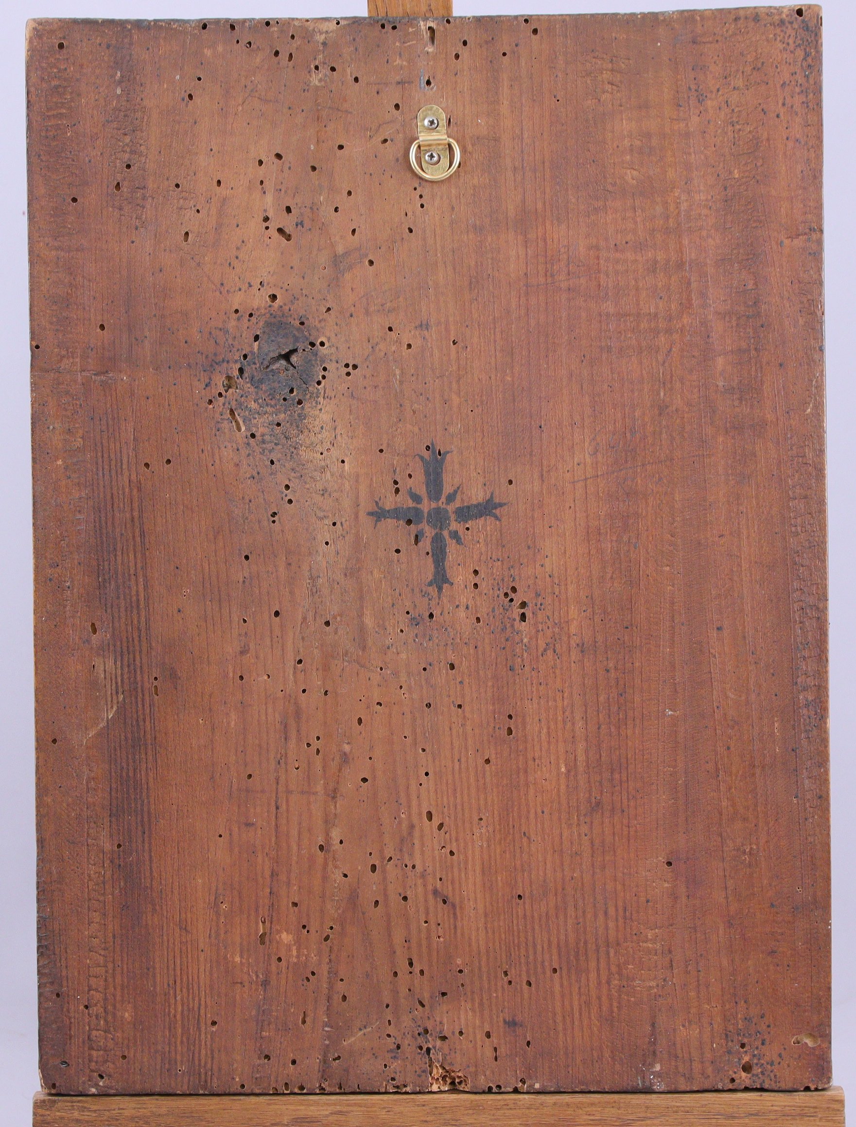 représentant le Saint Évêque Euthyme le Grand et le Saint Moine Jean Aumônier. Les inscriptions entre les deux saints au-dessus et en dessous de la croix sont des abréviations des expressions suivantes: