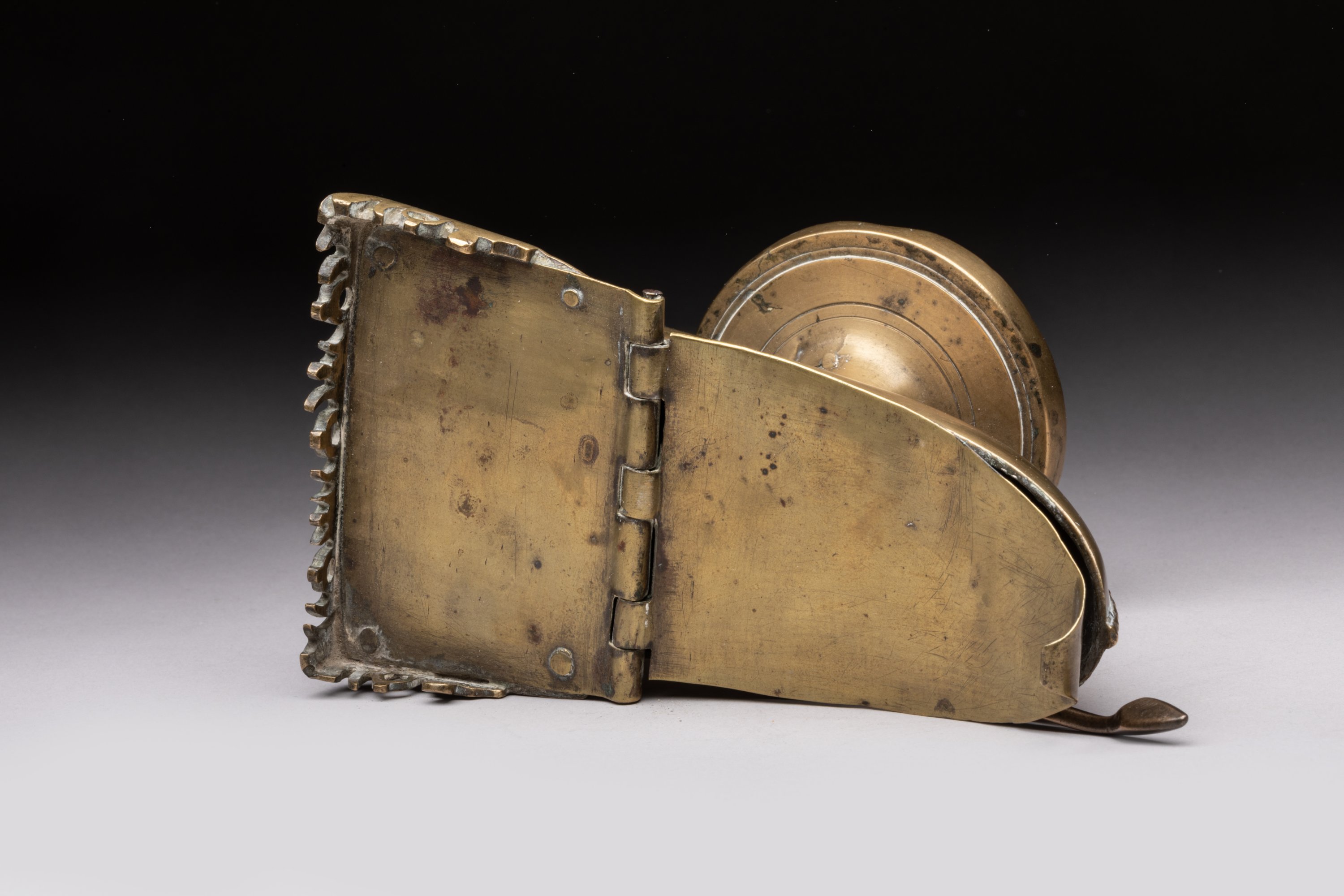 Le couvercle à charnière est orné dans sa partie fixe d'une galerie dans le goût oriental.