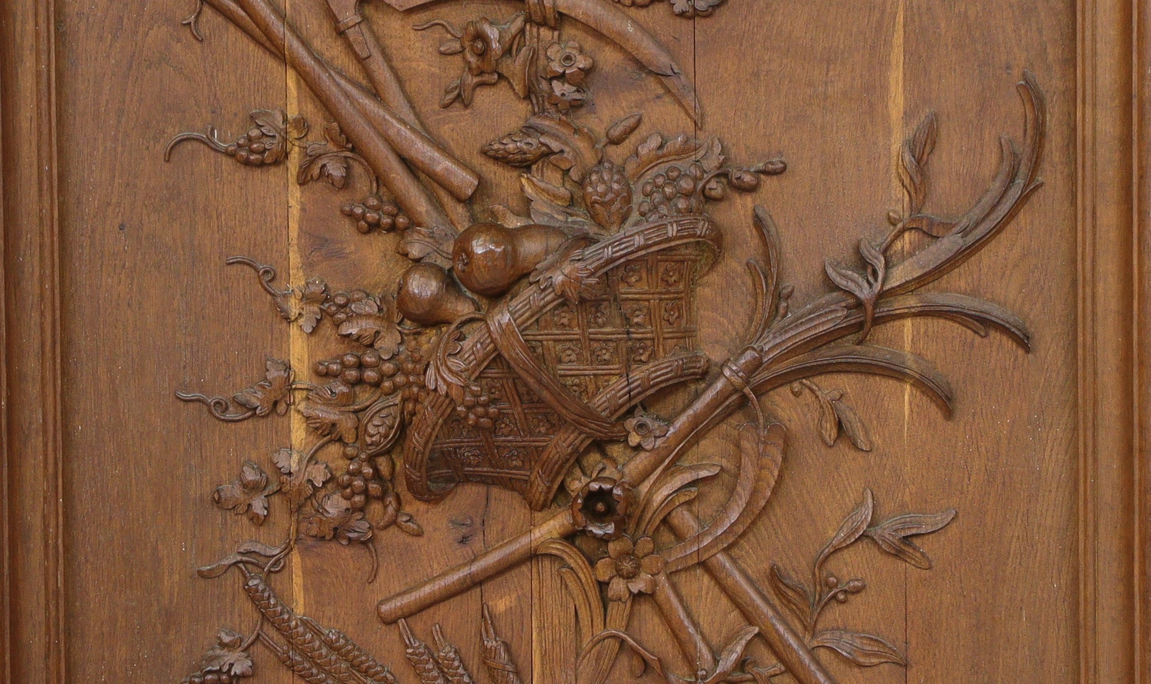Spectaculaire ALLÉGORIE DES MOISSONS. HAUT-RELIEF en bois sculpté