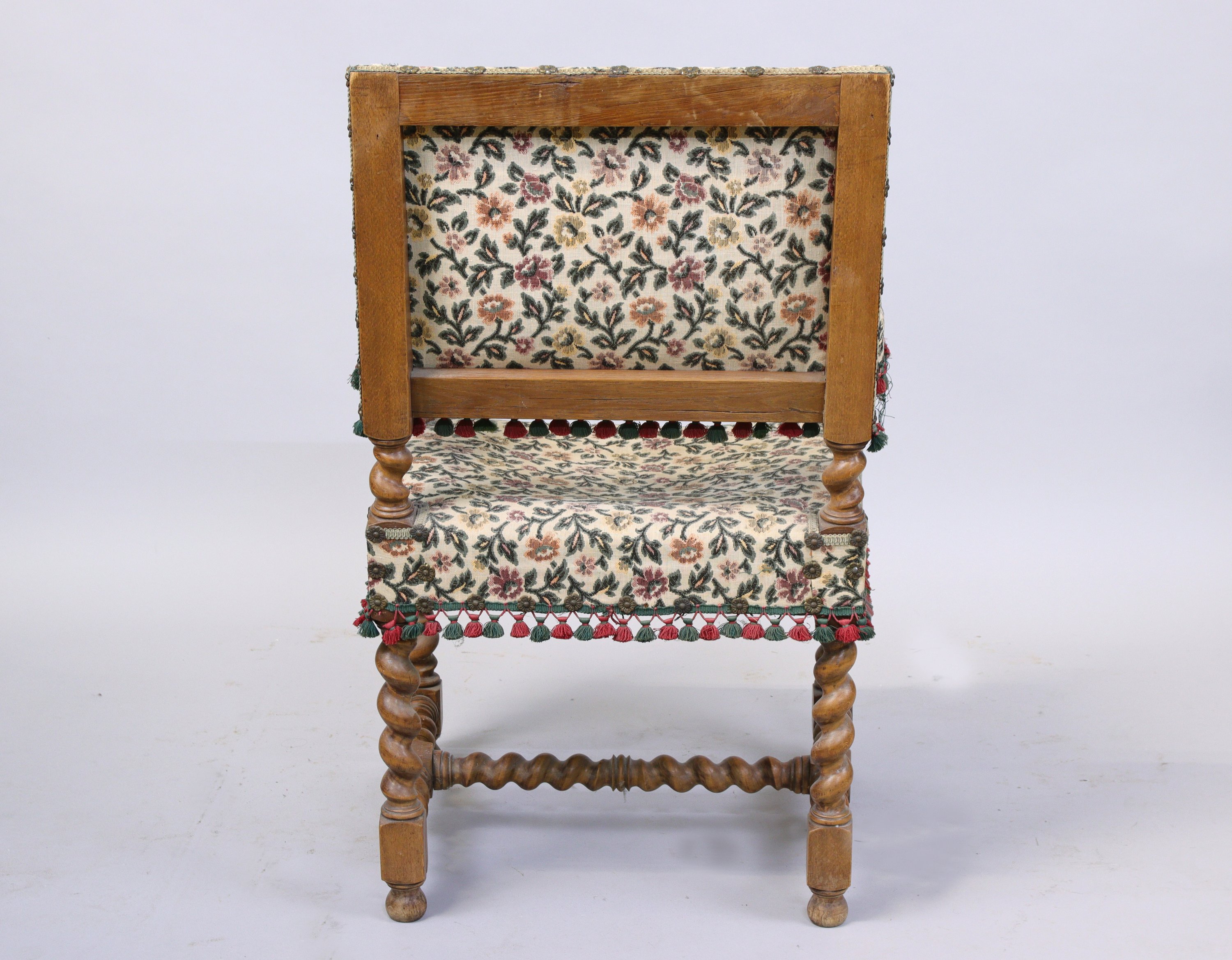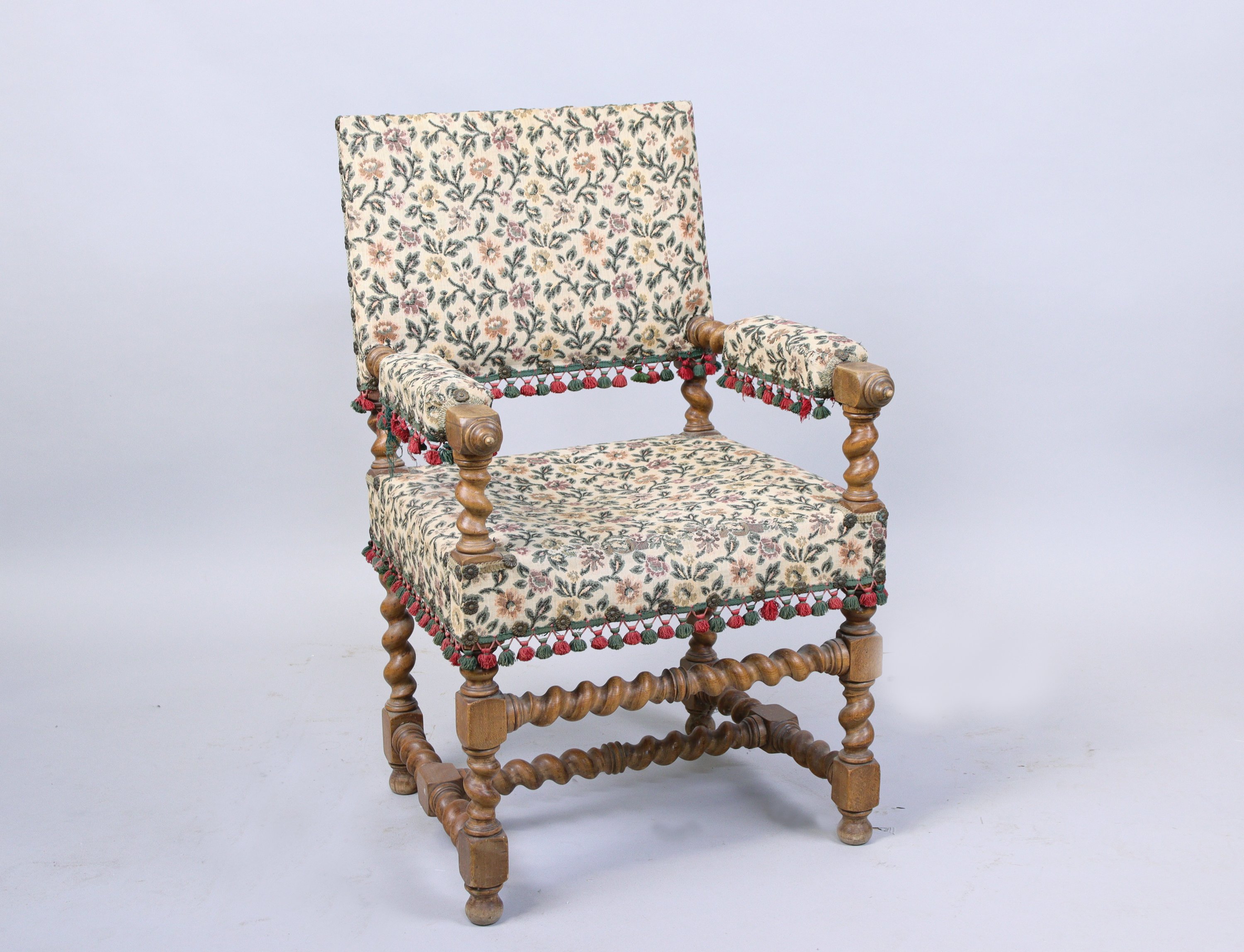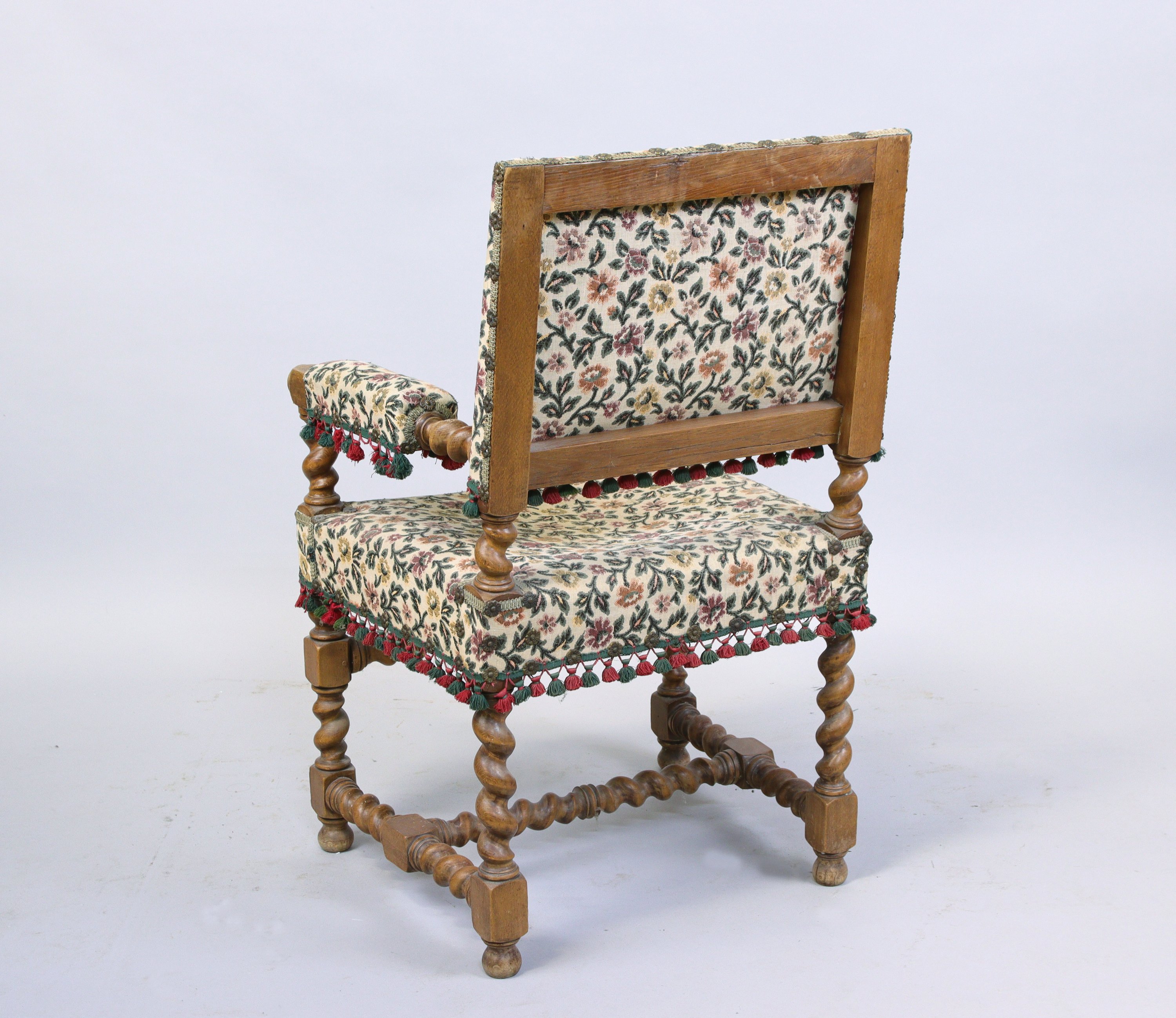 Accompagné d'un FAUTEUIL en bois tourné, dossier droit et accotoirs en tapisserie au point de Hongrie.