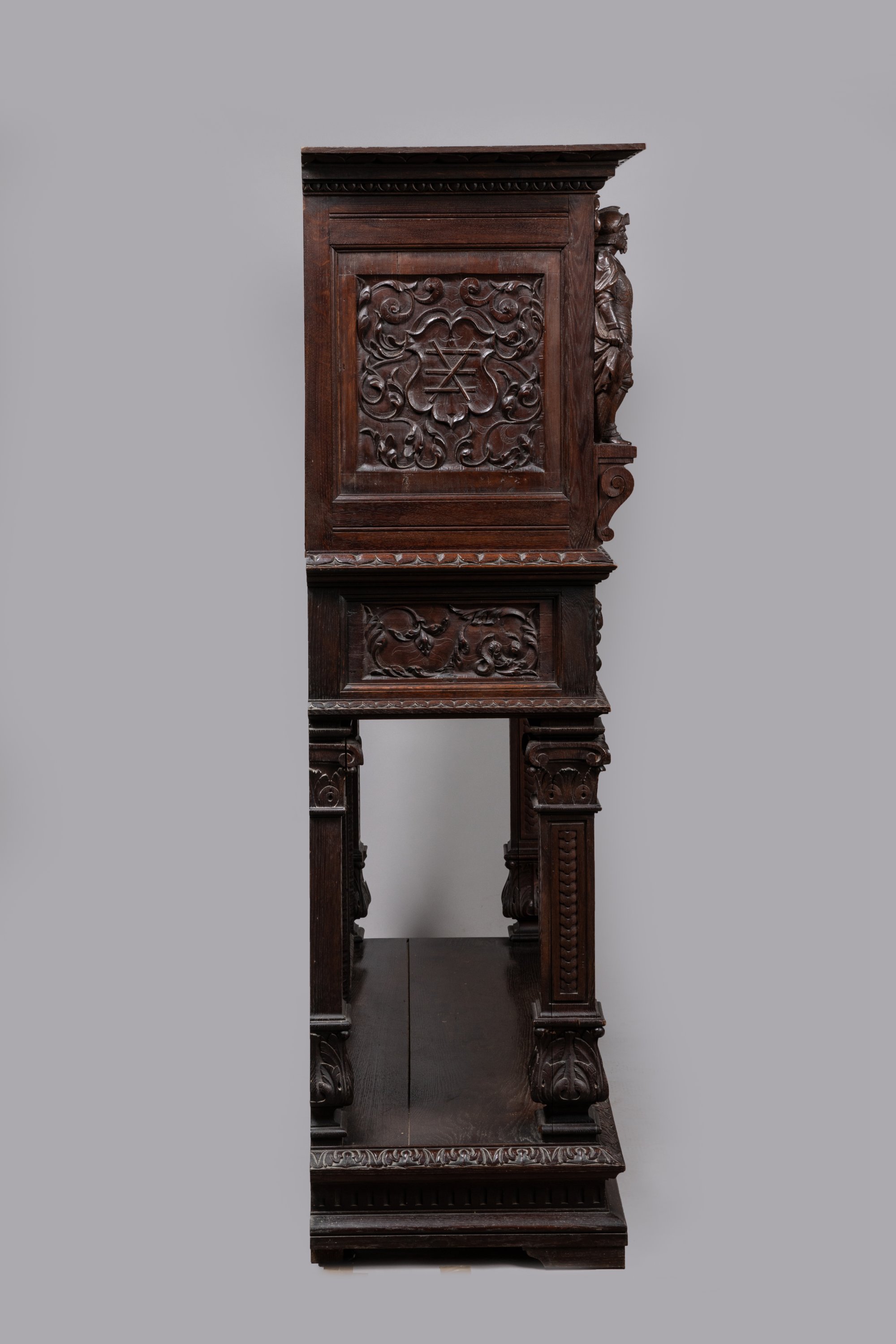 CRÉDENCE AUX GUERRIERS en chêne mouluré et sculpté