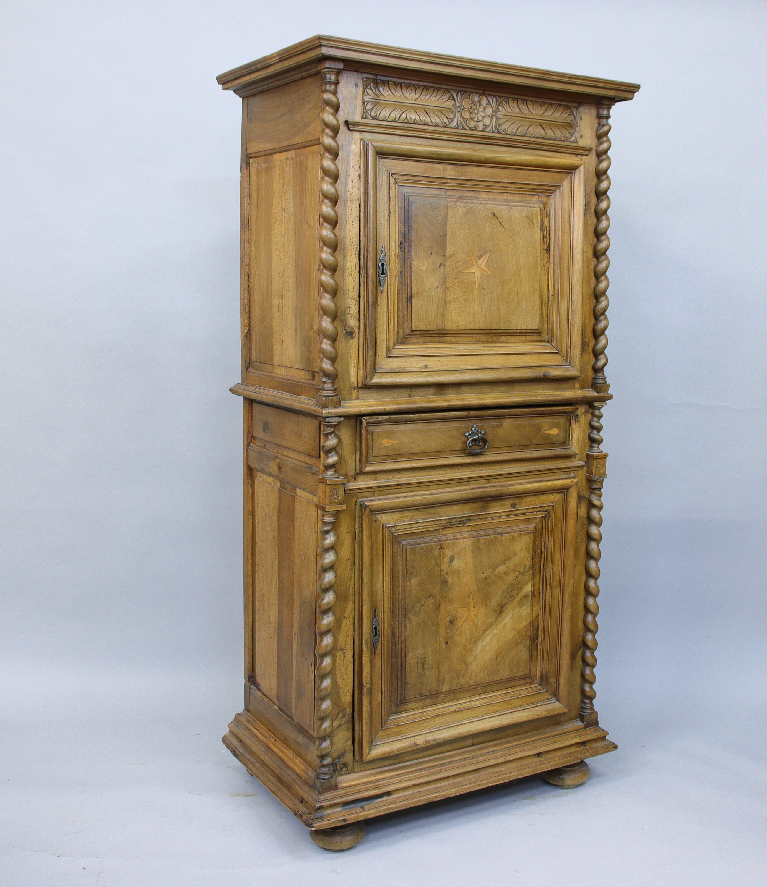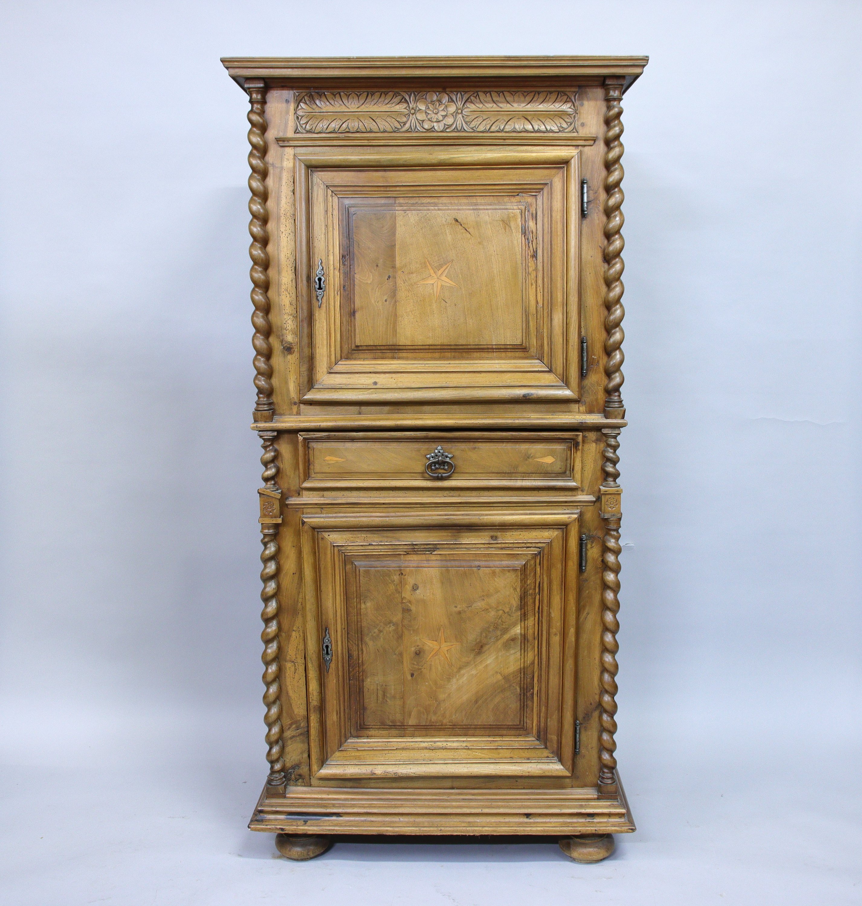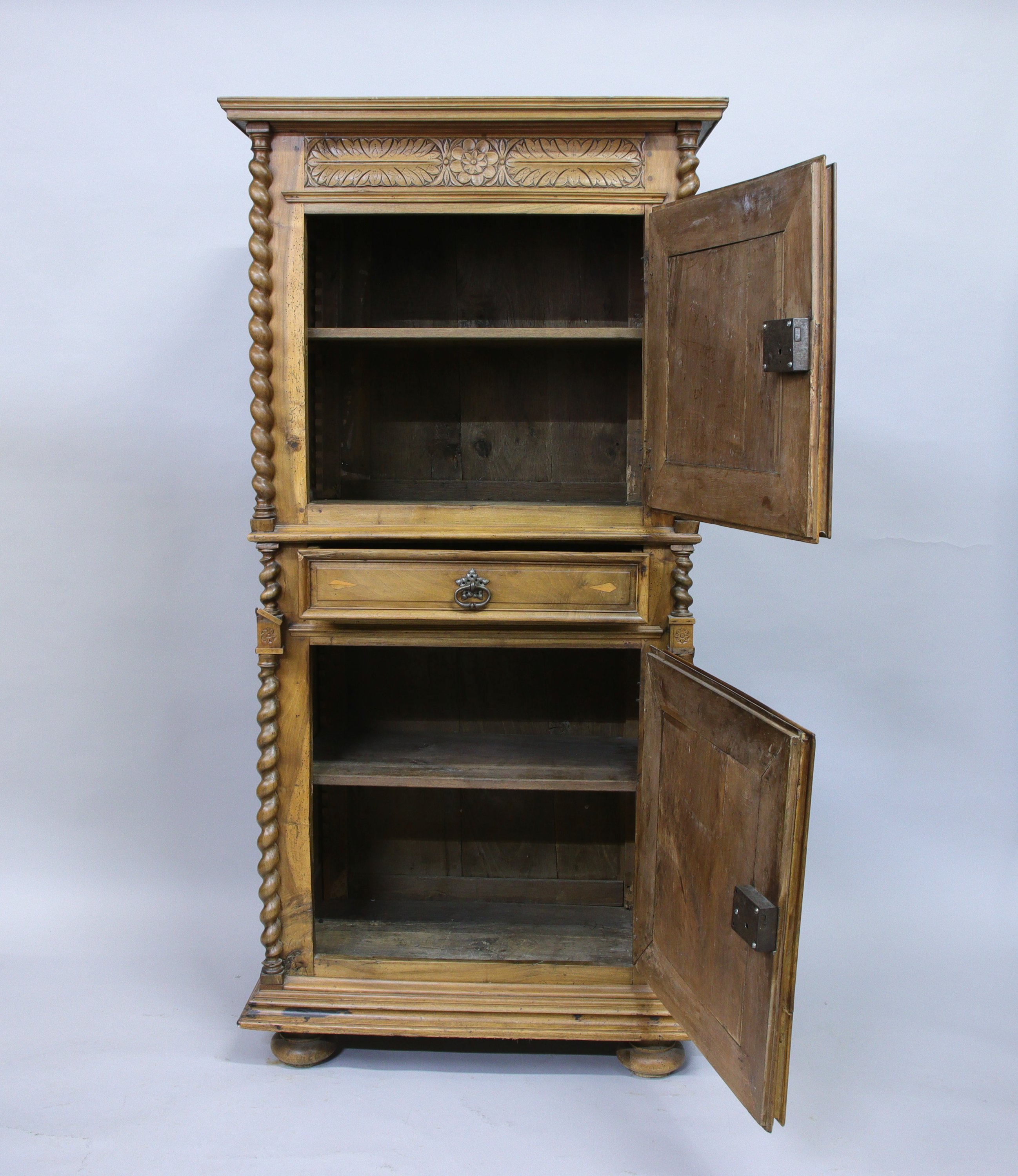 ARMOIRE HAUTE en noyer à deux battants superposés et un tiroir médian.