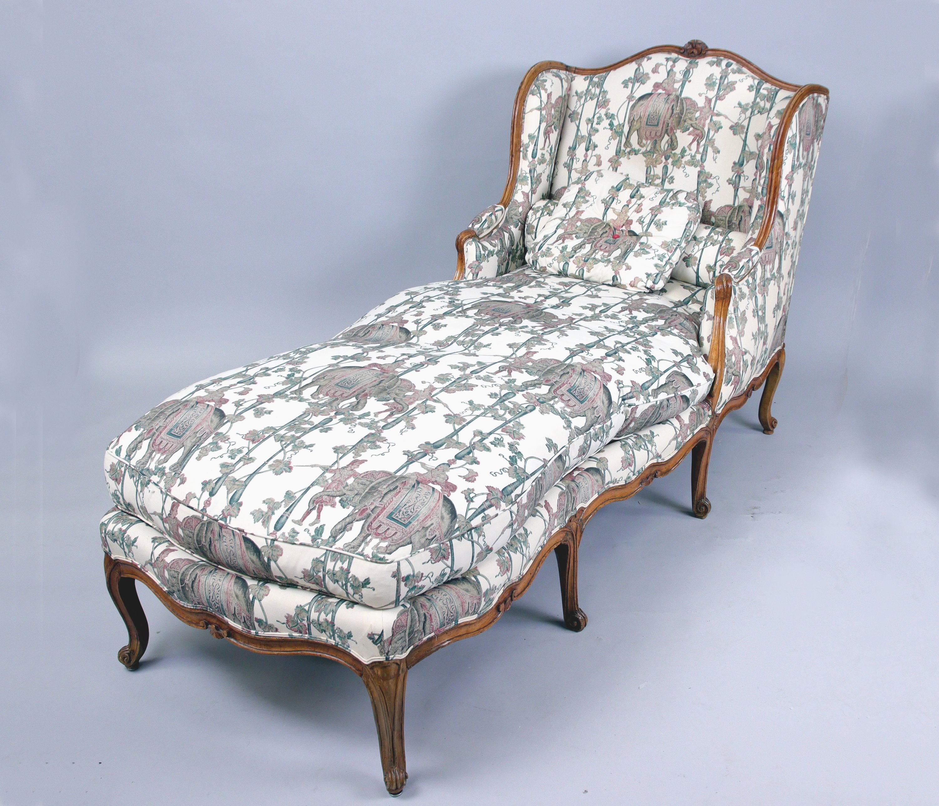 Garniture aux éléphants, motif emprunté à la tapisserie d'époque Louis XIV "LÉléphant" de la tenture des Grotesques, daprès Jean-Baptiste Monnoyer, par Beauvais.