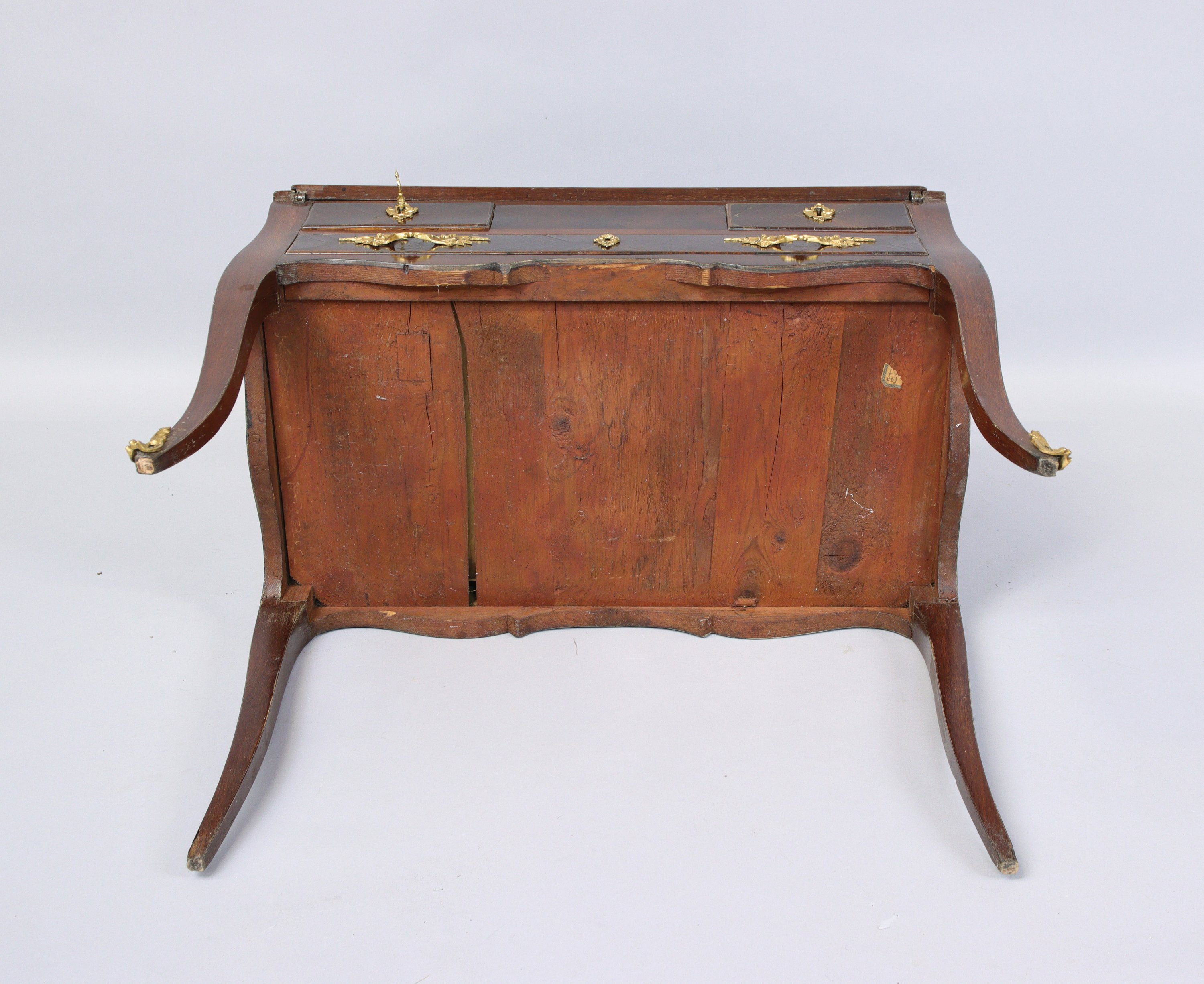 BUREAU DOS D'ÂNE en placage d'amarante ouvrant par deux rangs de tiroirs et reposant sur quatre pieds cambrés. L'intérieur à caisson et tiroirs secrets.