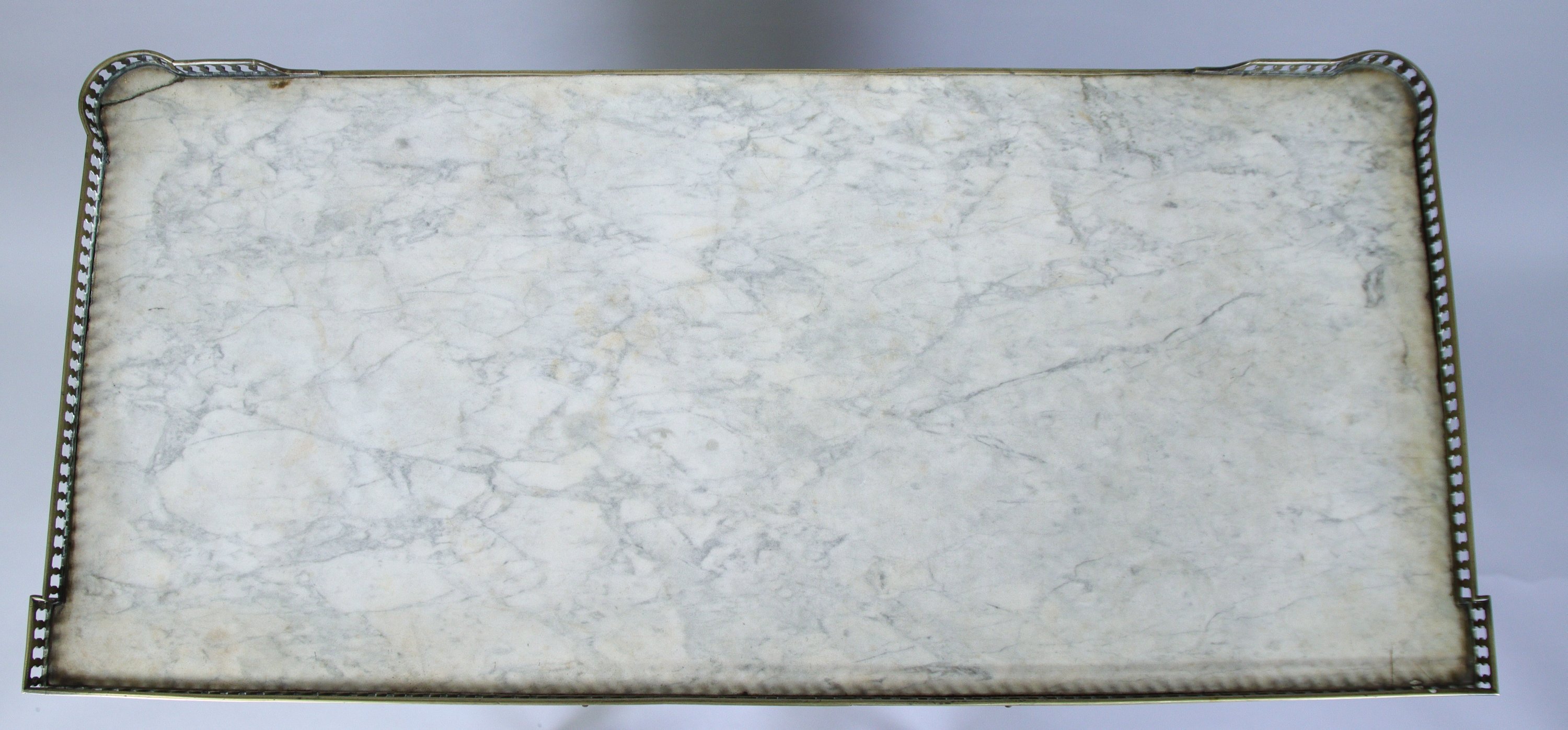 Dessus en marbre arabescato (carrière de Carrare) ceint dune galerie en laiton ajouré.