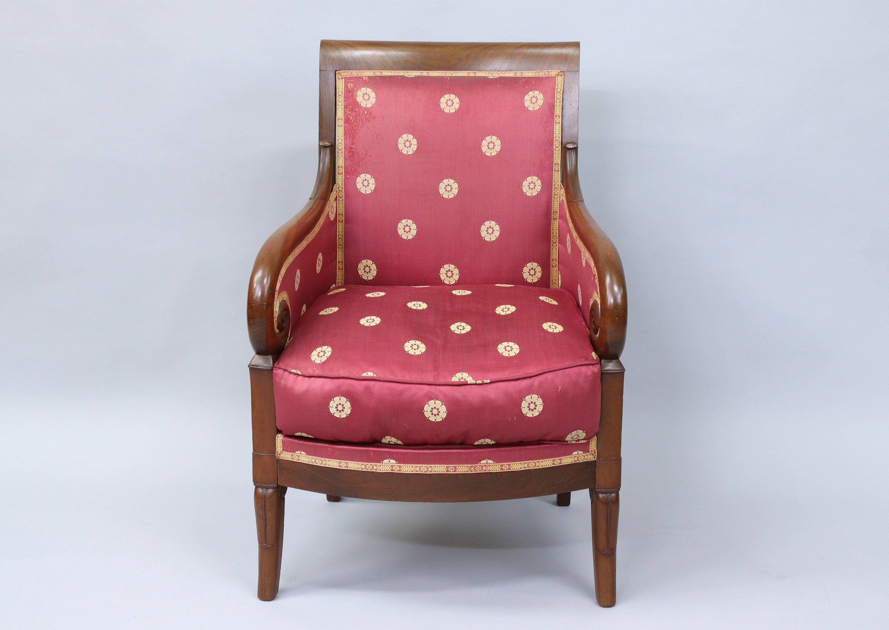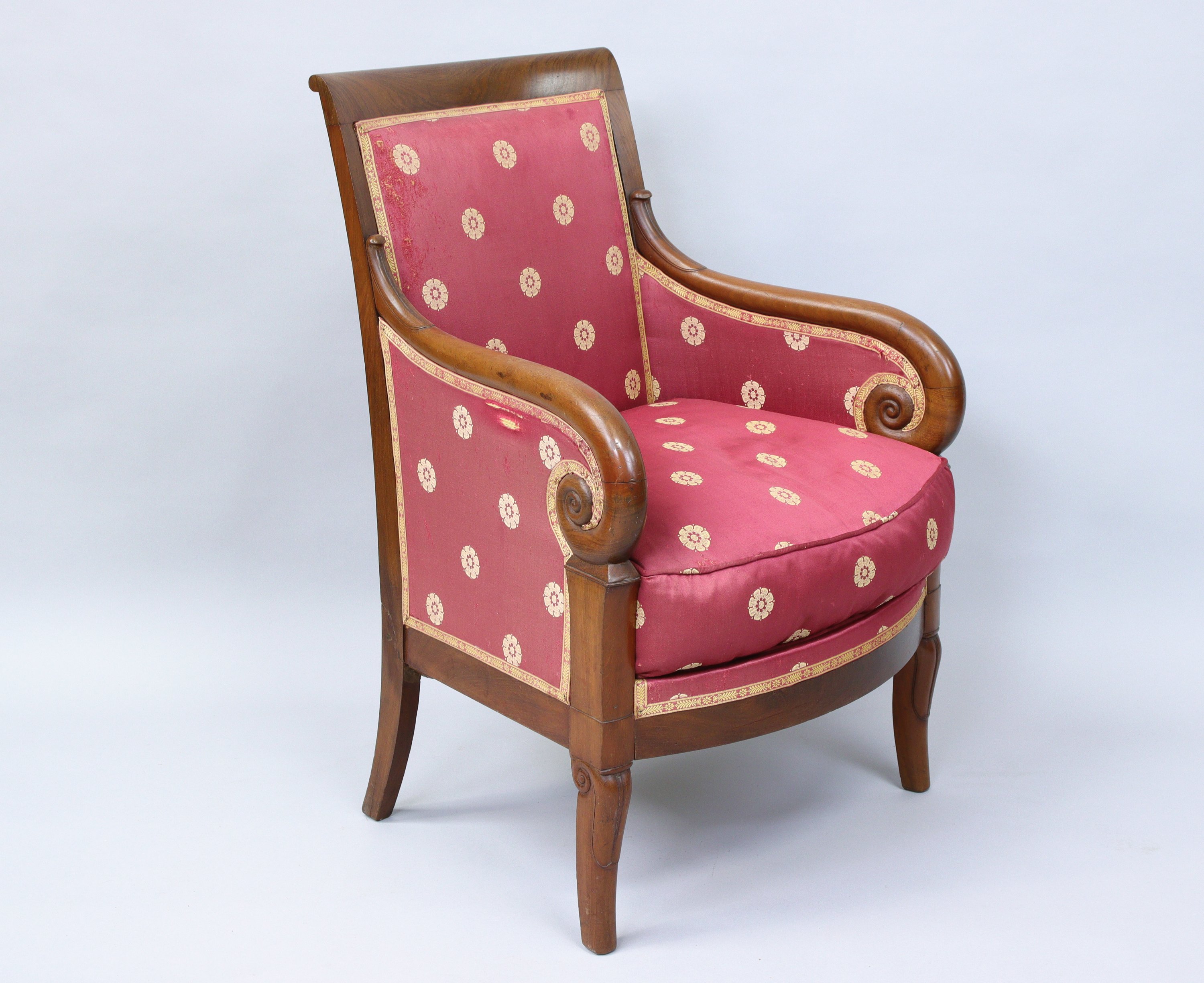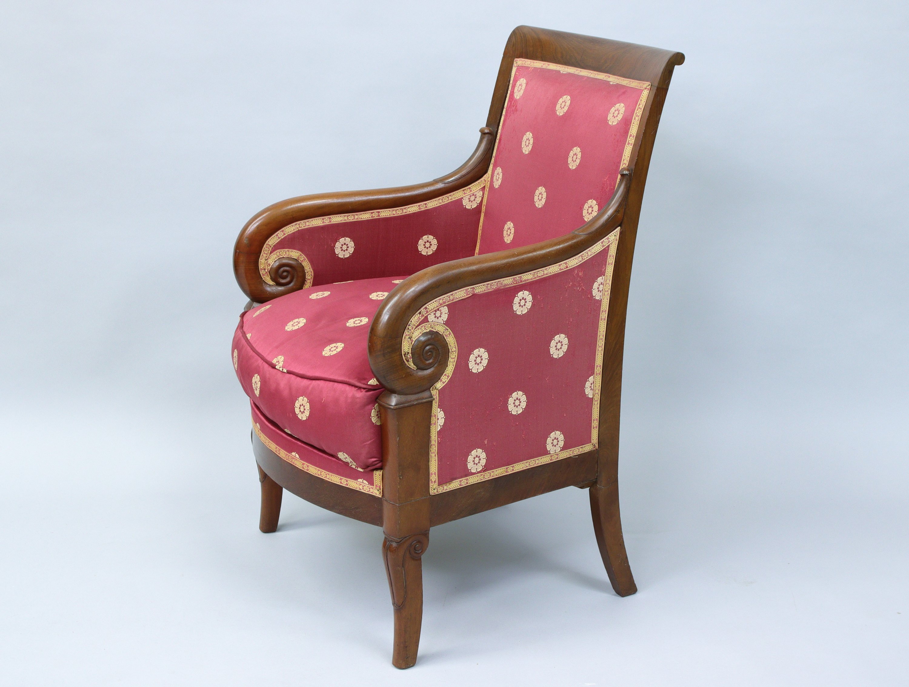 Accotoirs à enroulement. Piétement antérieur contourné et piétement postérieur en sabre.
