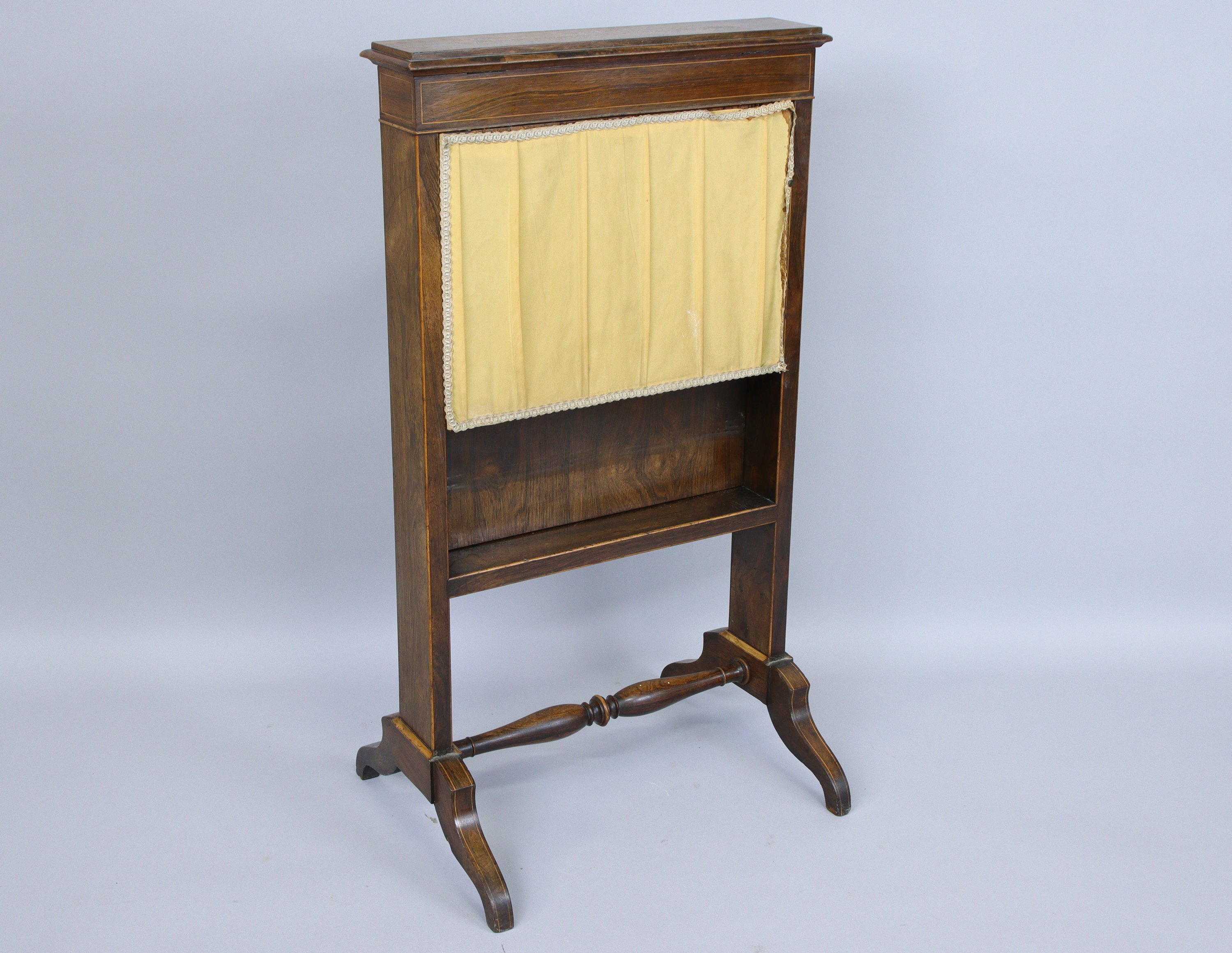SECRÉTAIRE À BILLET DOUX en placage de bois exotique et marqueterie à la cathédrale en filet de citronnier. Il ouvre par un abattant découvrant un casier en bois clair comprenant un porte-lettres à bascule, deux tiroirs articulés formant plumier et écritoire. Un casier ouvre en partie supérieure. L'ensemble repose sur quatre pieds découpés réunis par une entretoise. Deux clés.