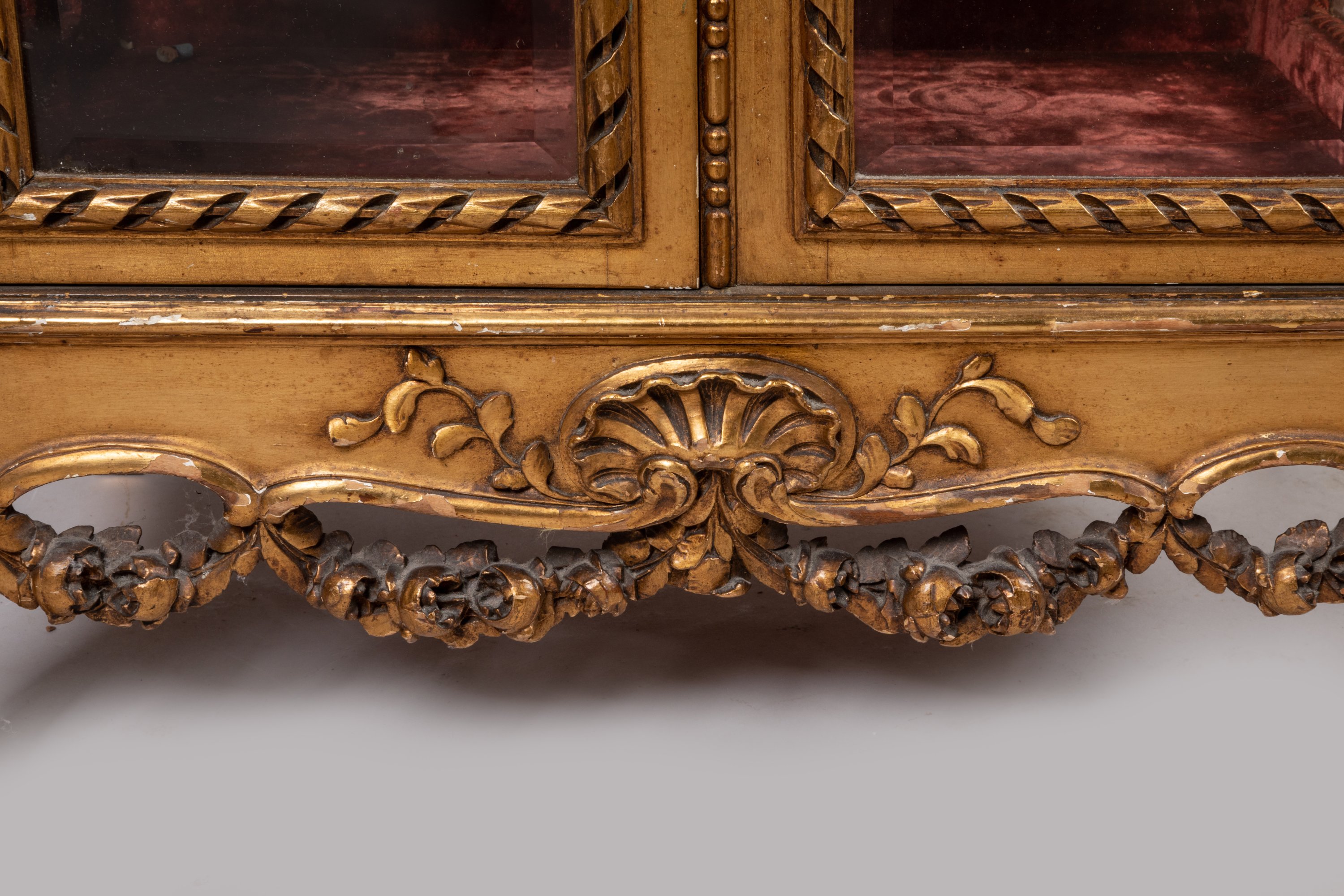 CABINET-VITRINE en bois doré ouvrant en façade par cinq portes.