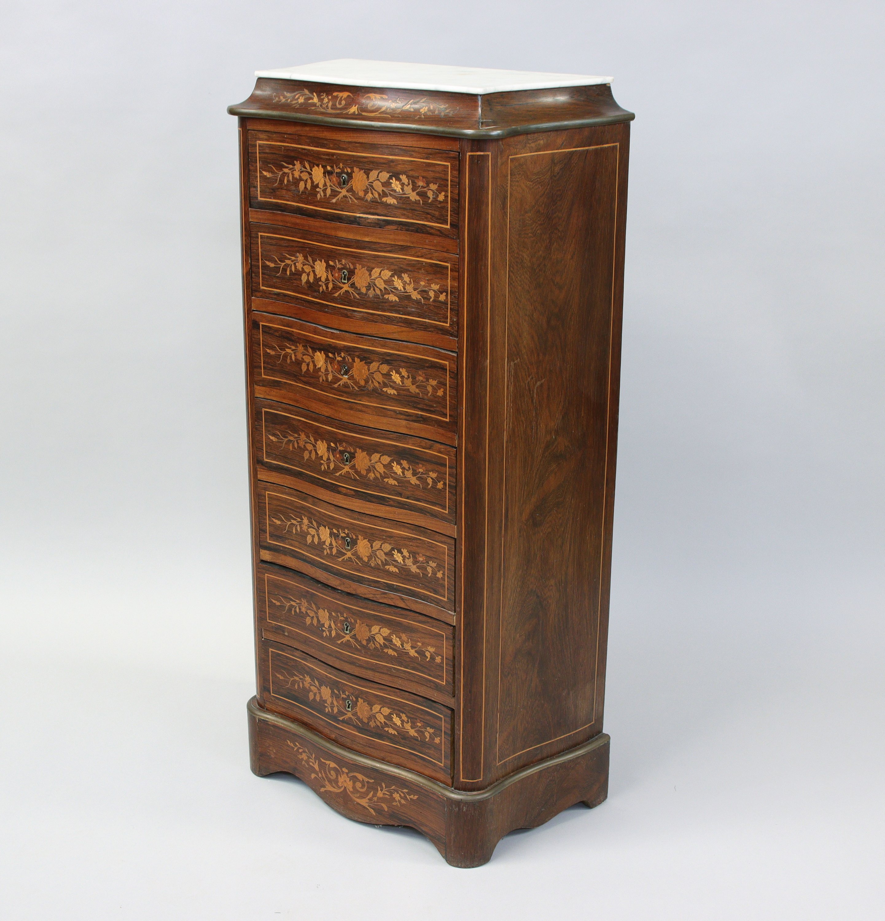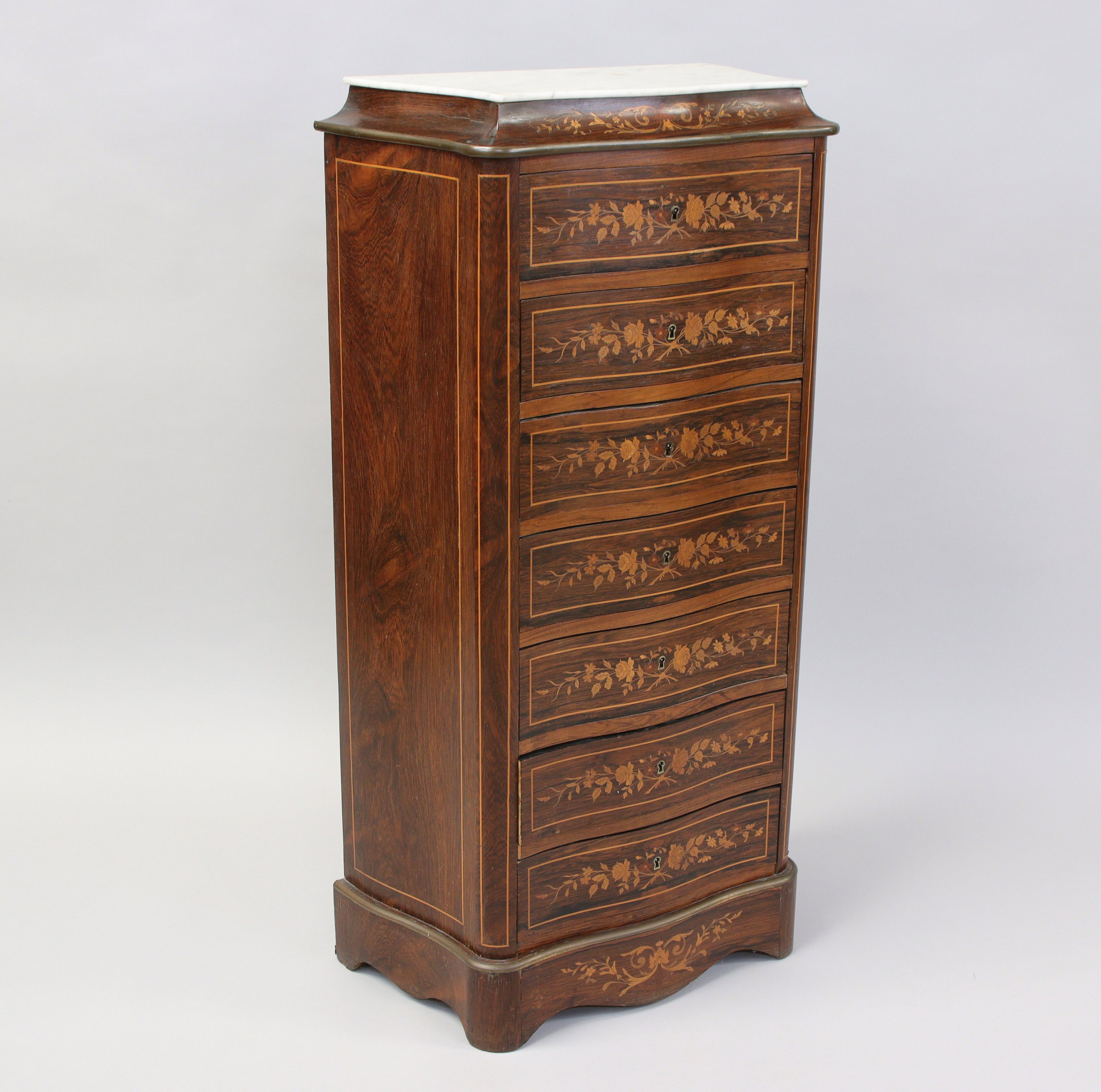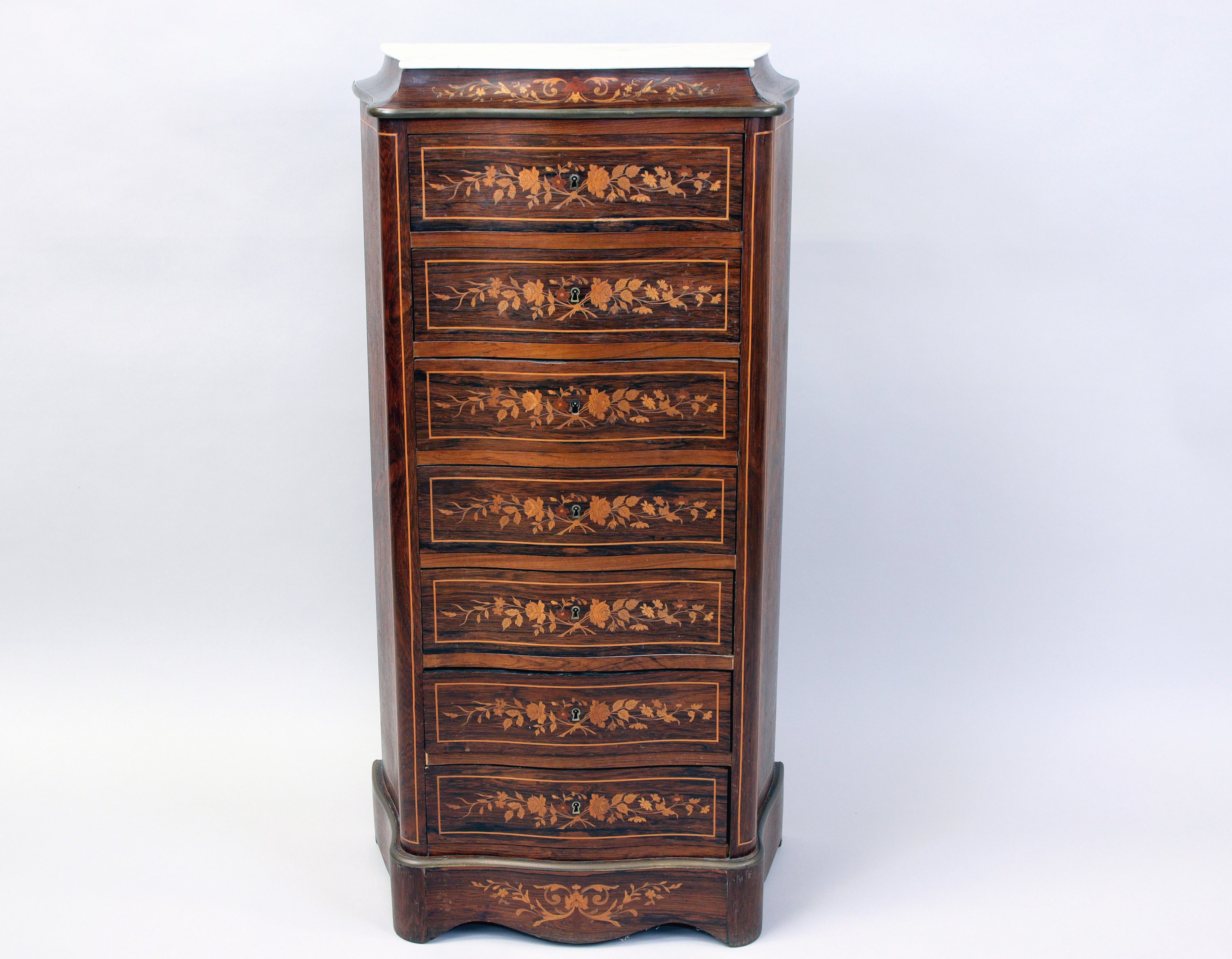 SEMAINIER en bois de placage et marqueterie à motif floral.