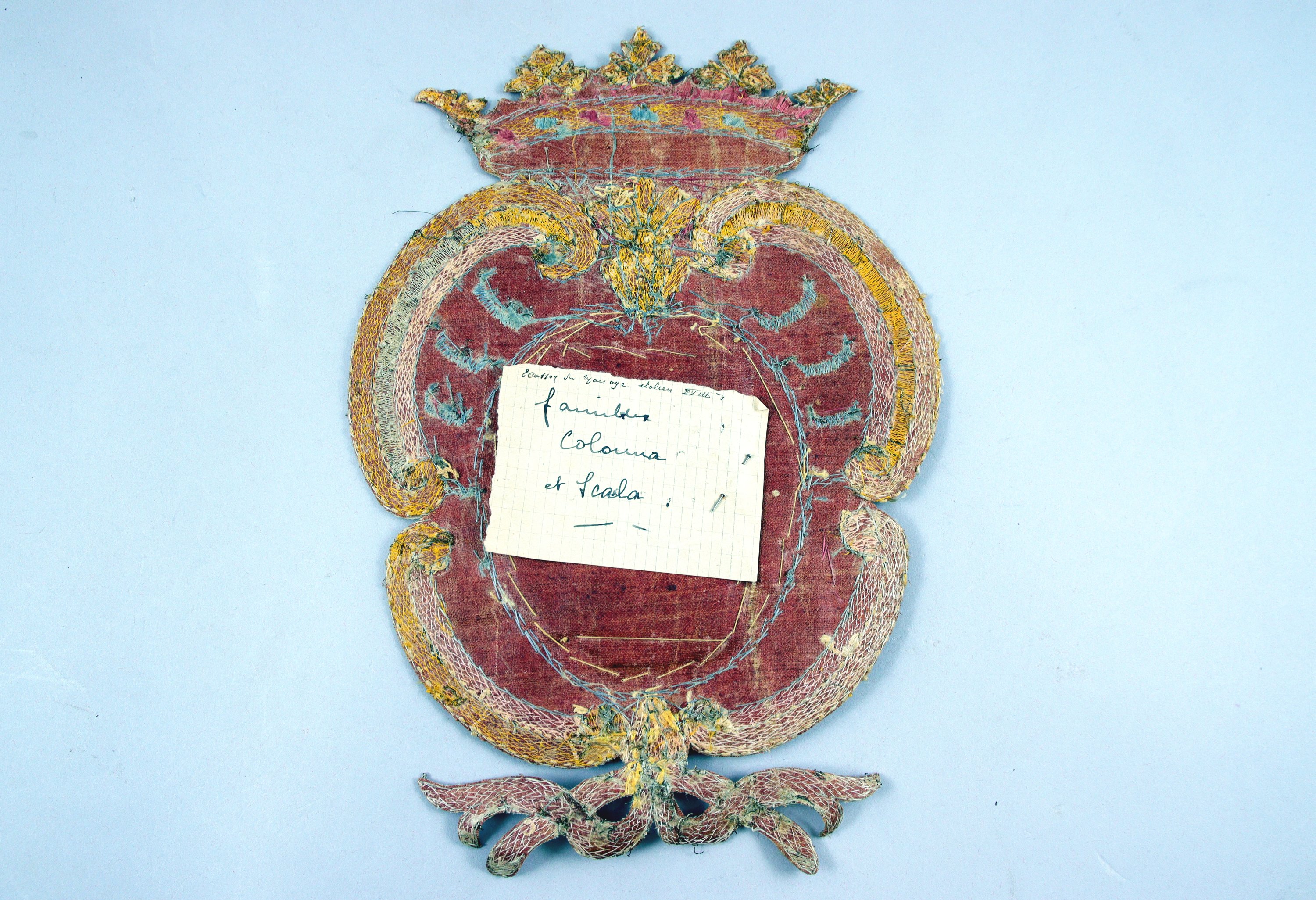 ÉCU BRODÉ "TU SOLA" de la famille Colonna et Scala