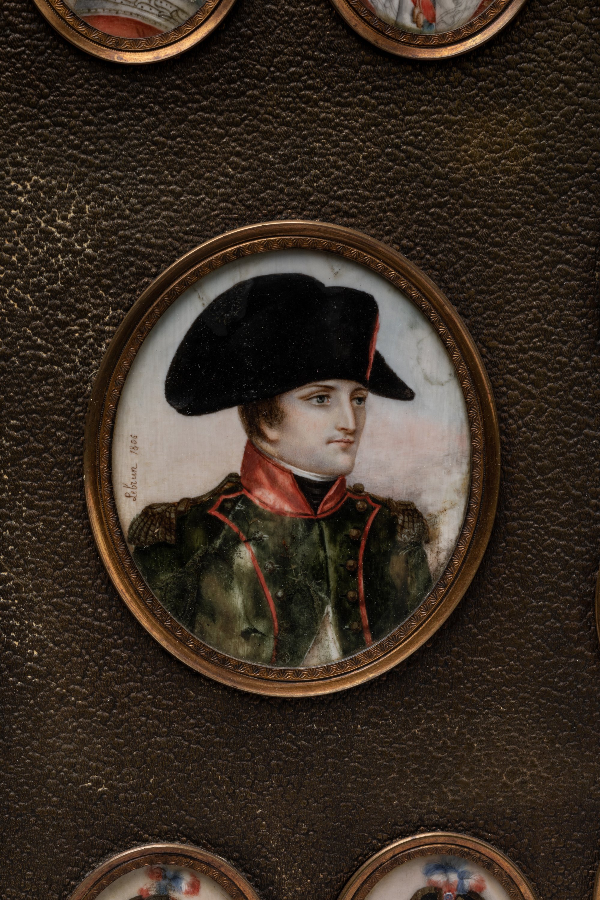 13 miniatures sur ivoire signées « Lebrun » et datées « 1806 ».