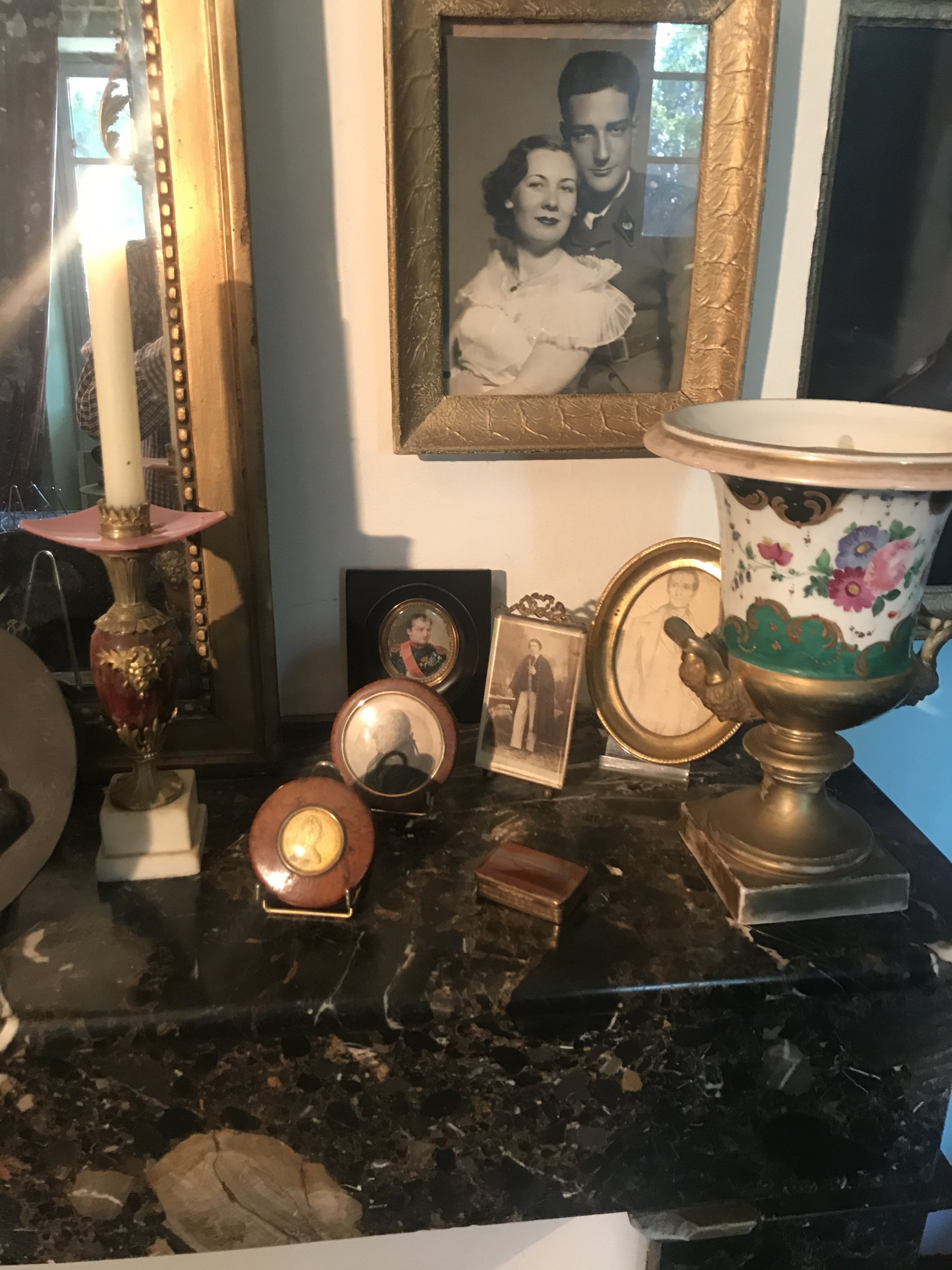 - QUATRE PORTRAITS en médaillon: miniature Napoléon au grand cordon, portrait de jeune homme à la redingote crayon et homme du XVIIIe, officier XIXe.