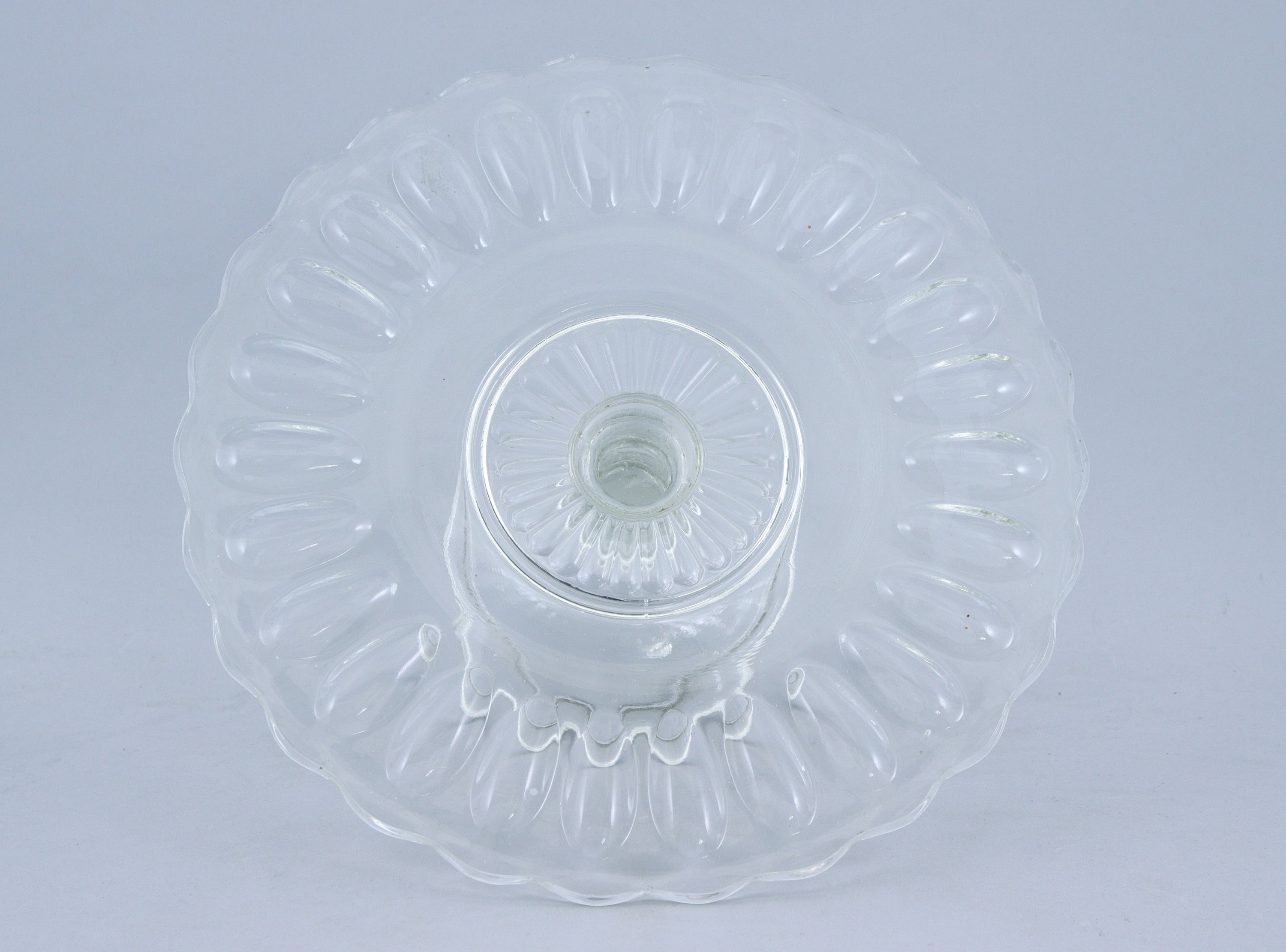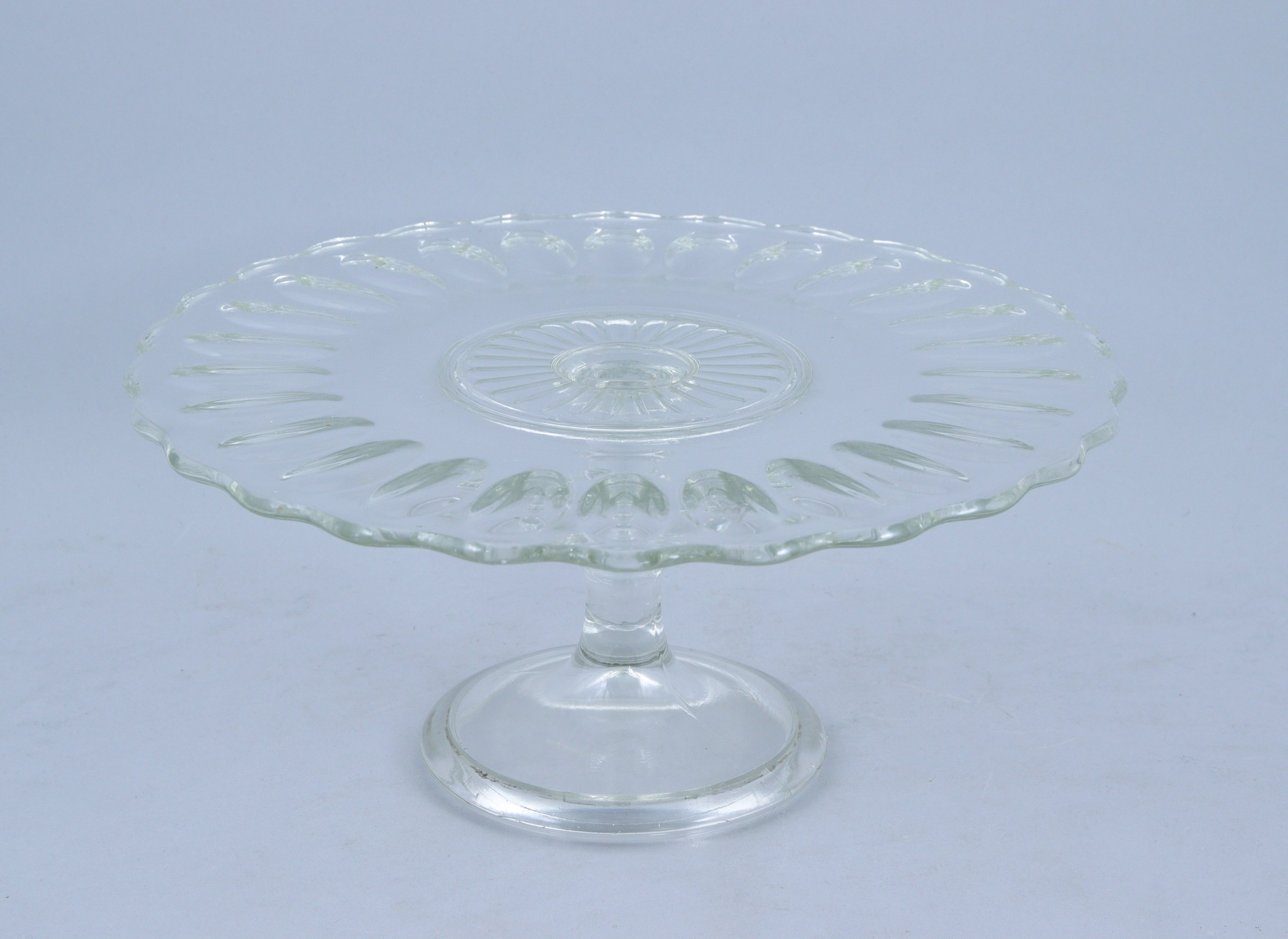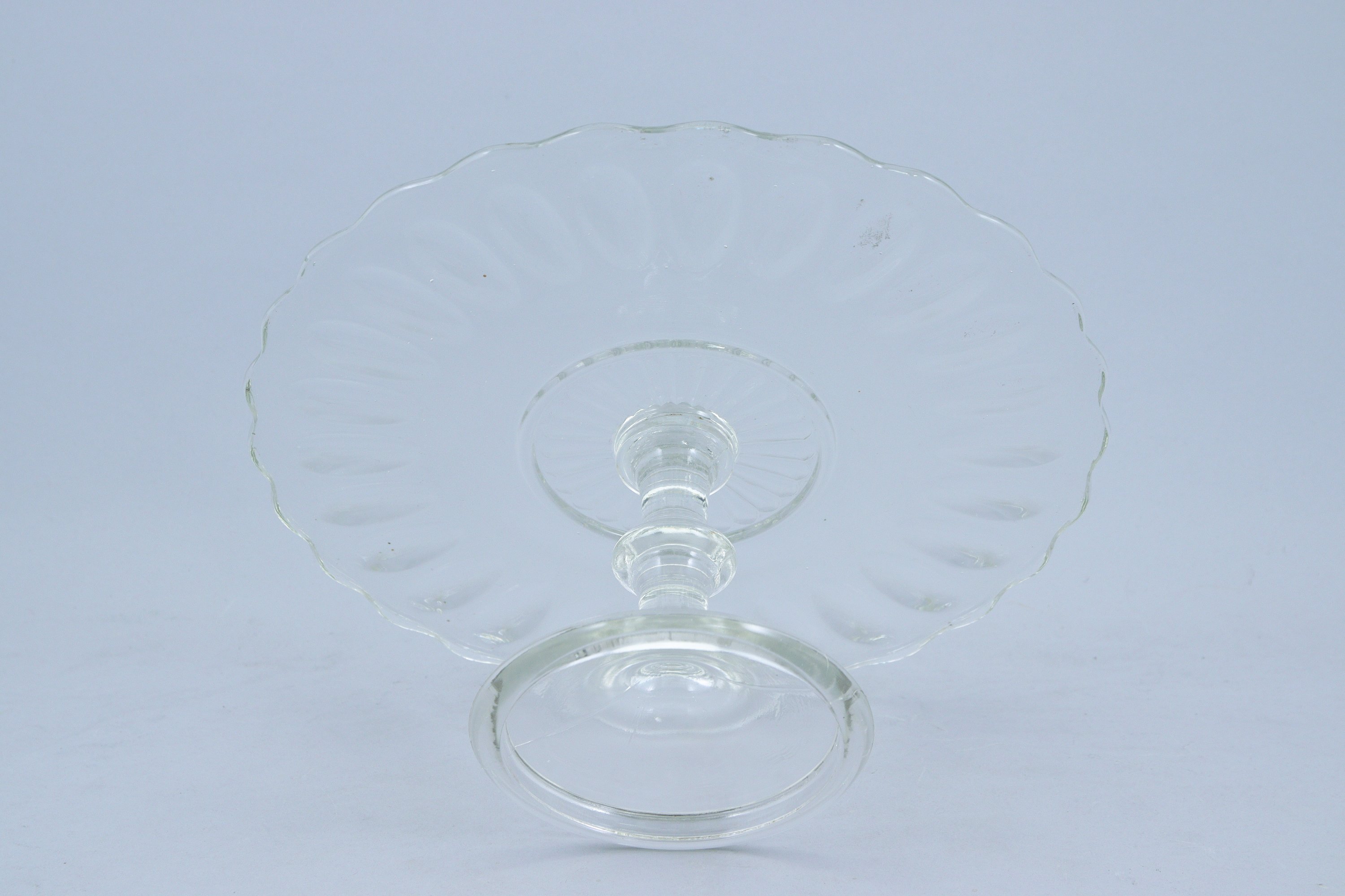 PRÉSENTOIR en verre sur piédouche à décor de godrons.