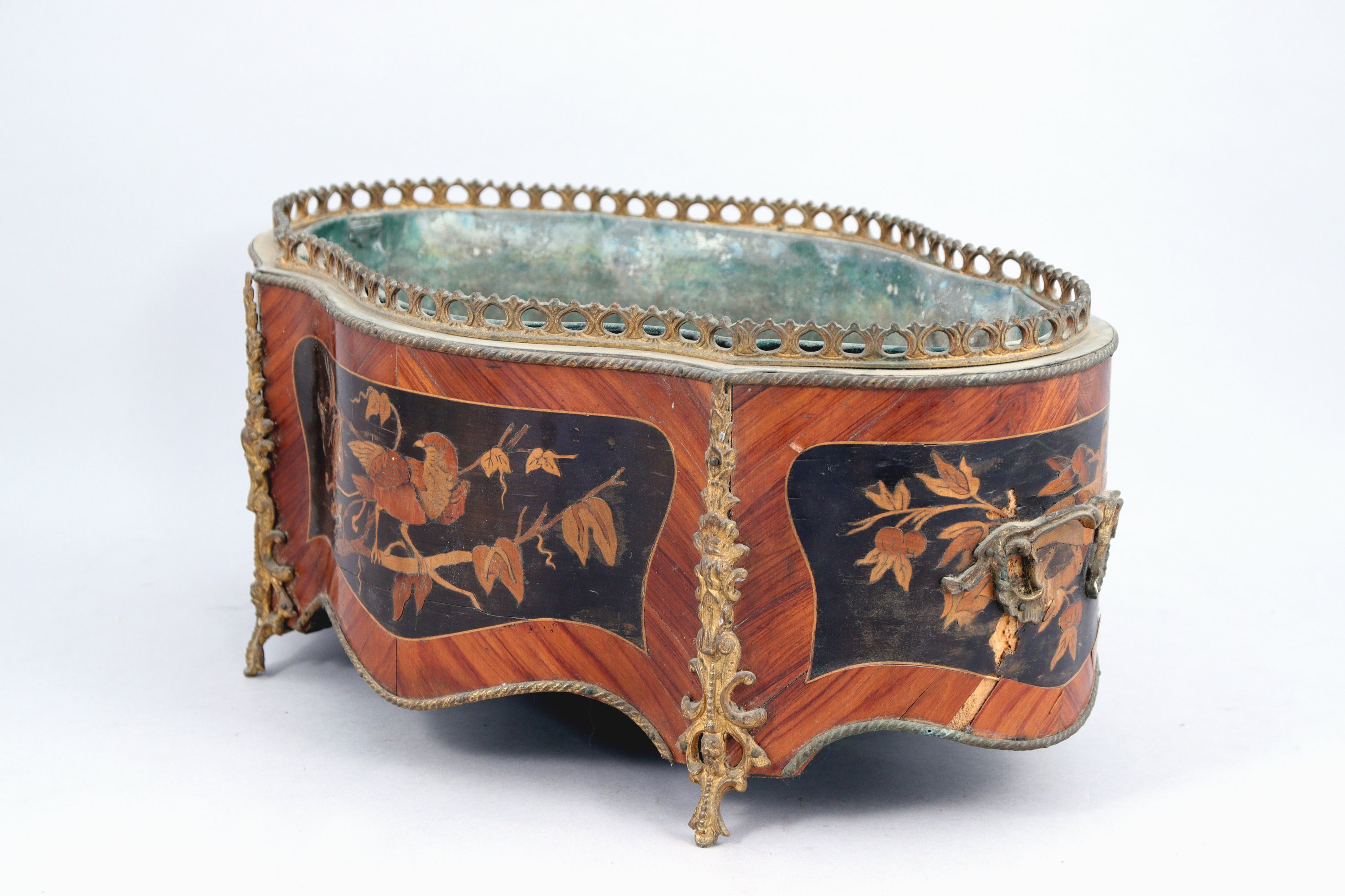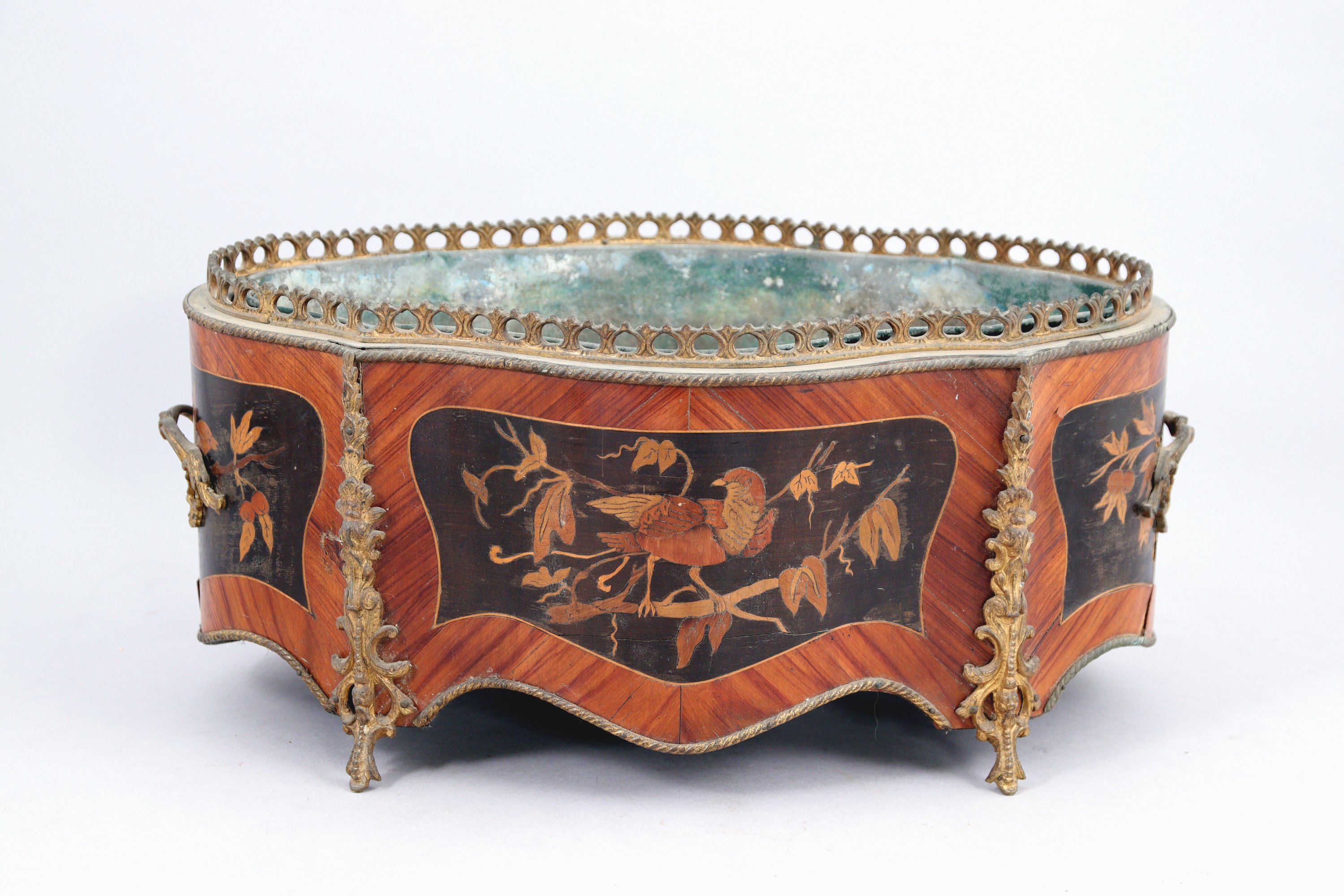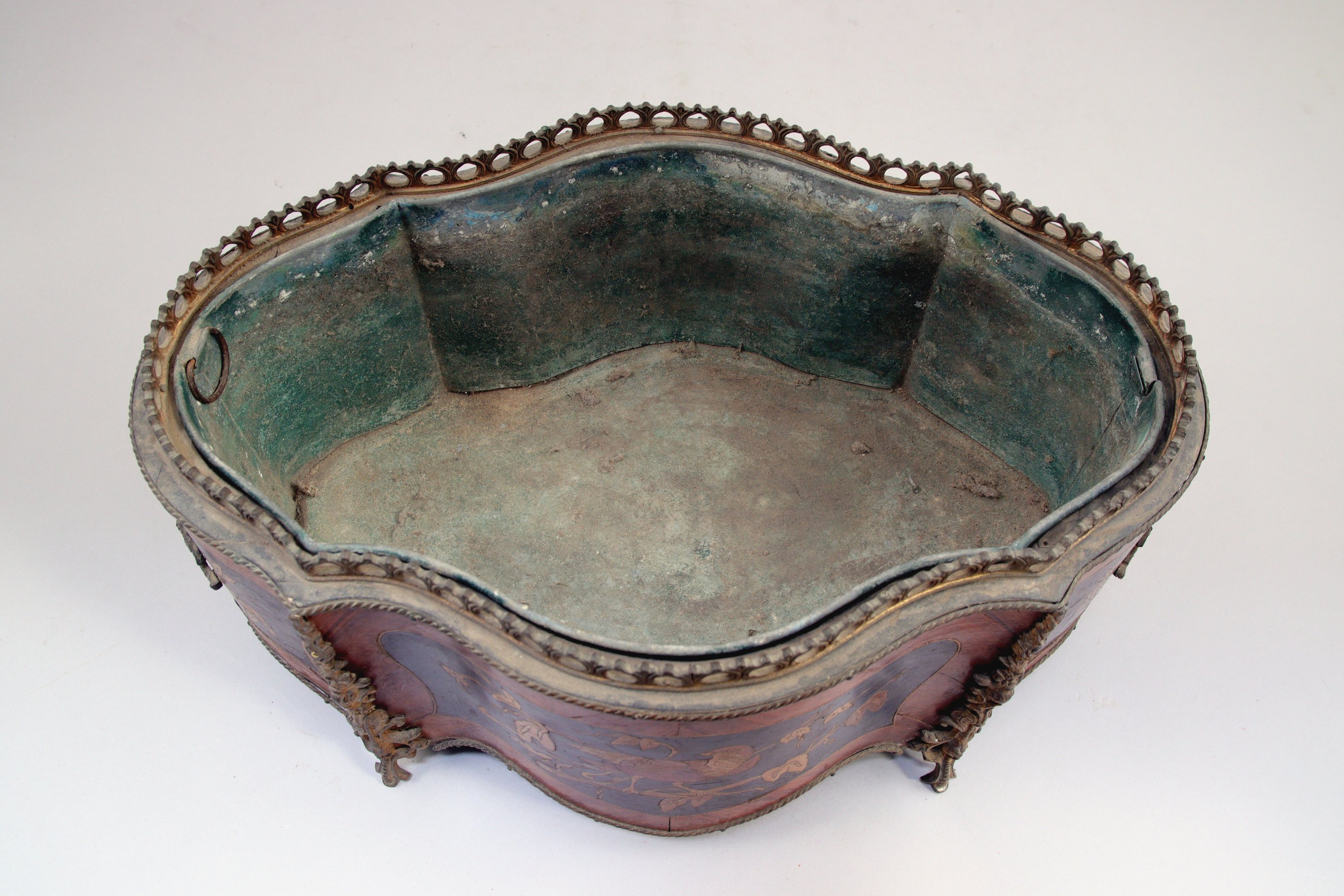 JARDINIÈRE OVALE chantournée en bois de placage marqueté