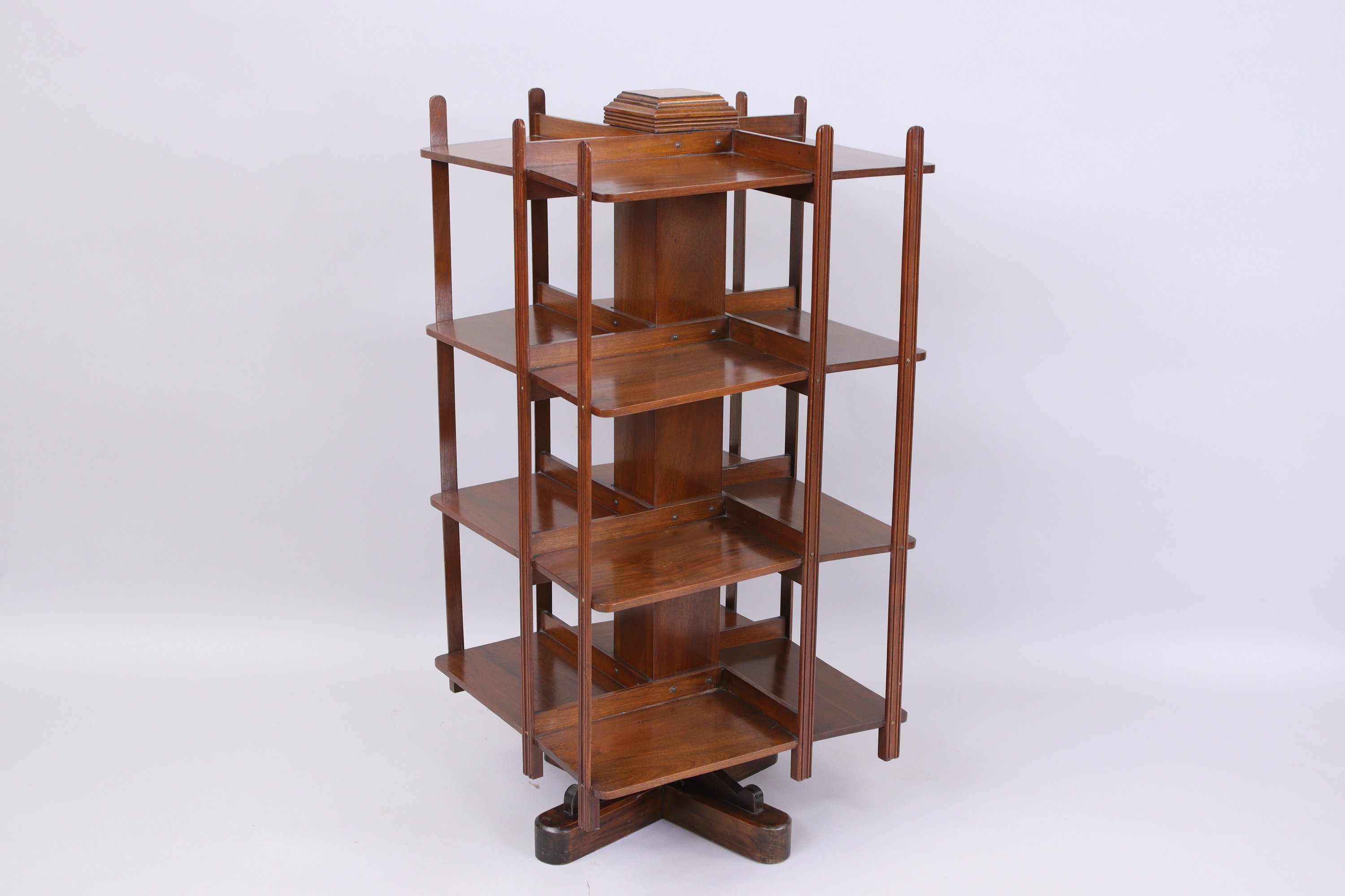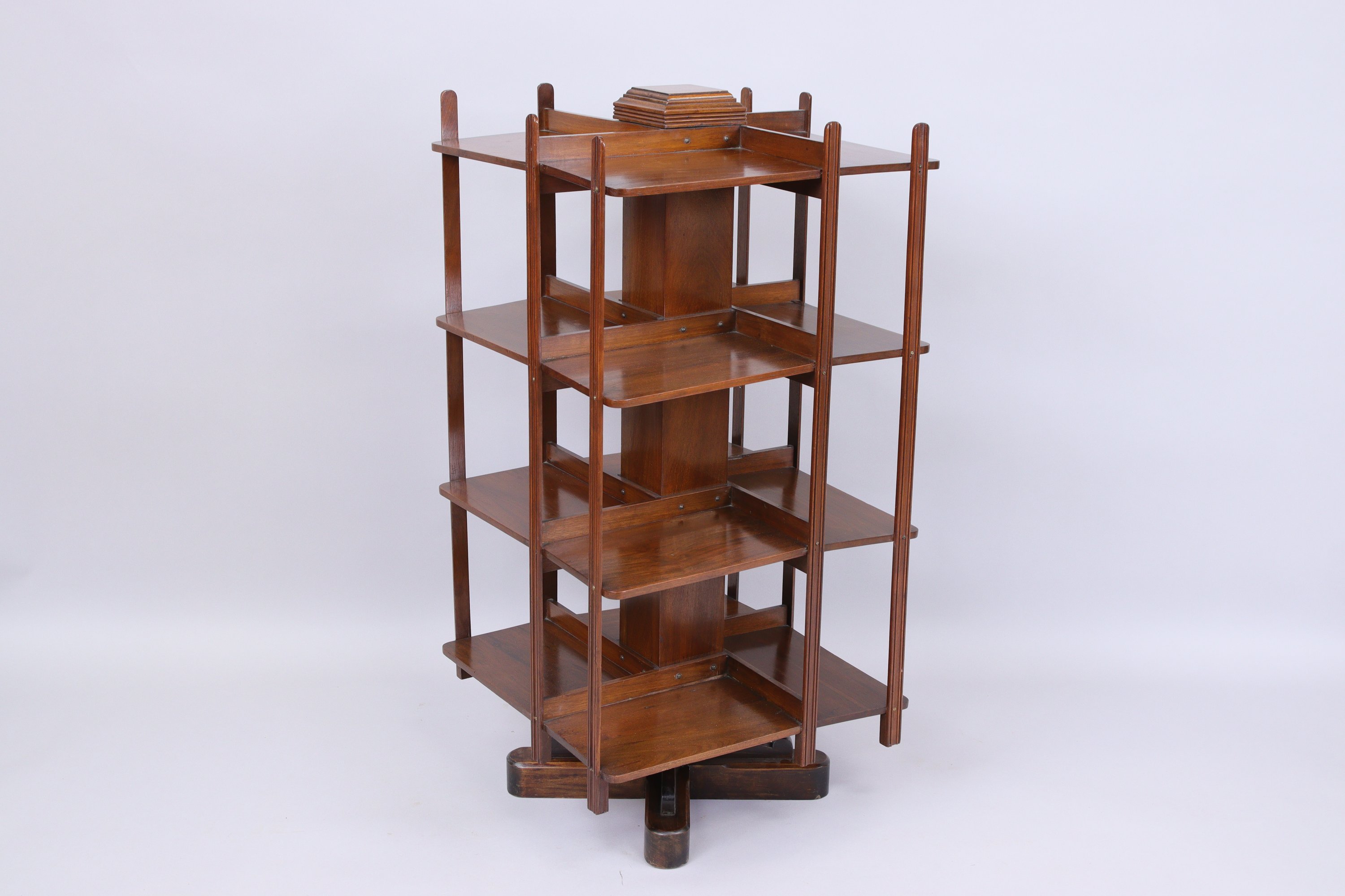 ÉTAGÈRE BIBLIOTHÈQUE TOURNANTE en bois exotique reposant sur un piétement...