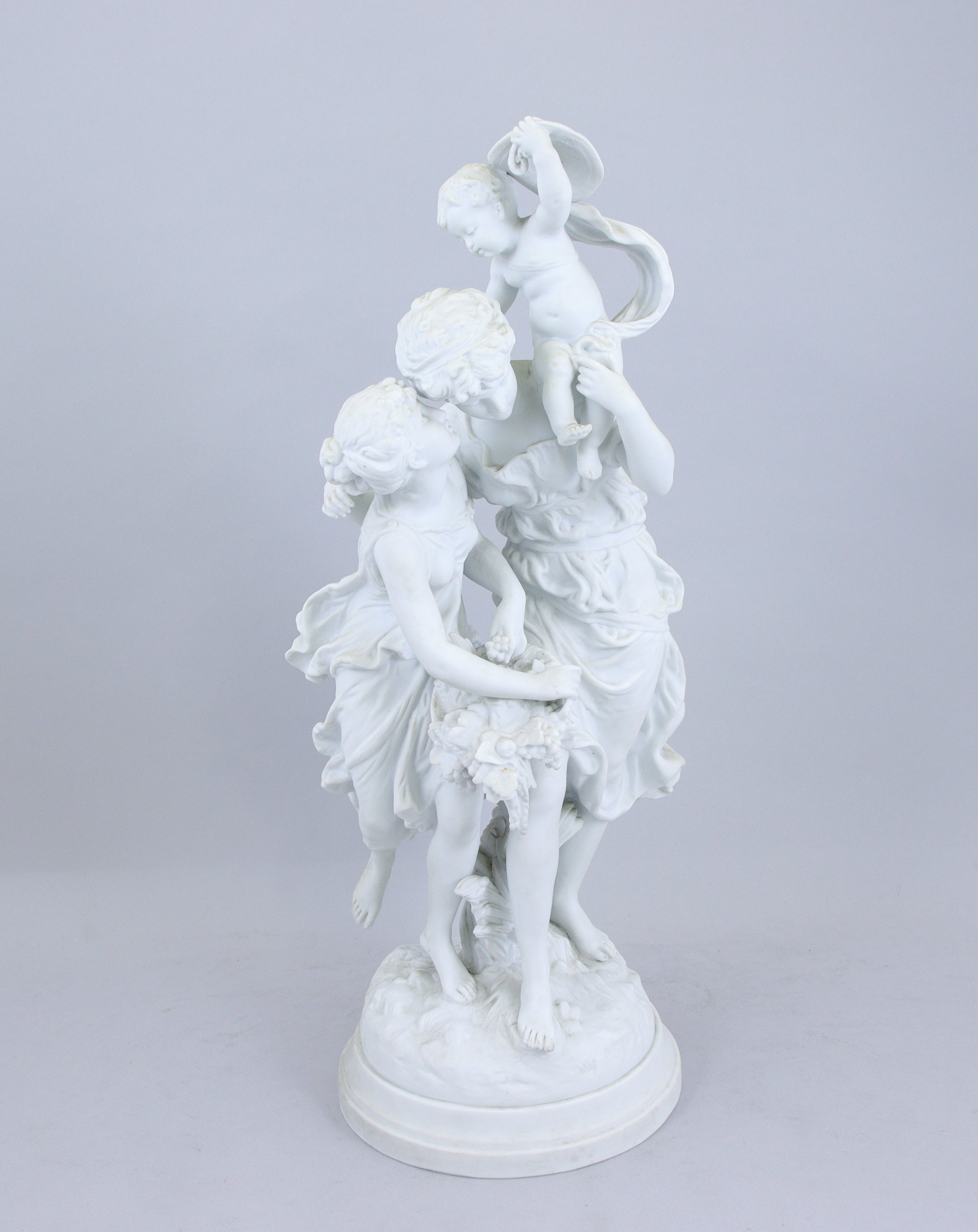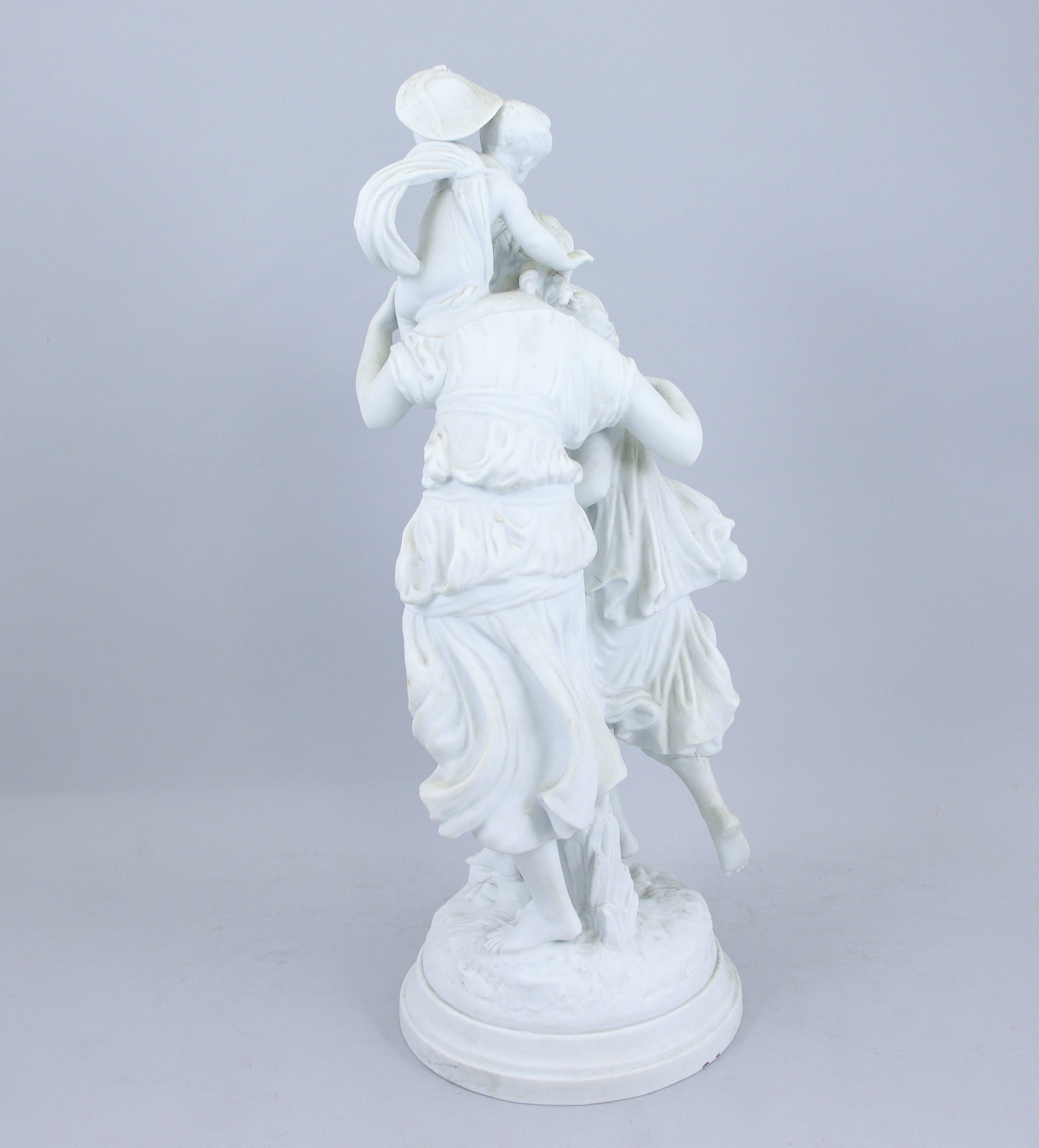 d'après MOREAUJeune couple à l'EnfantBiscuit sur piédouche.Haut. 53 cm.