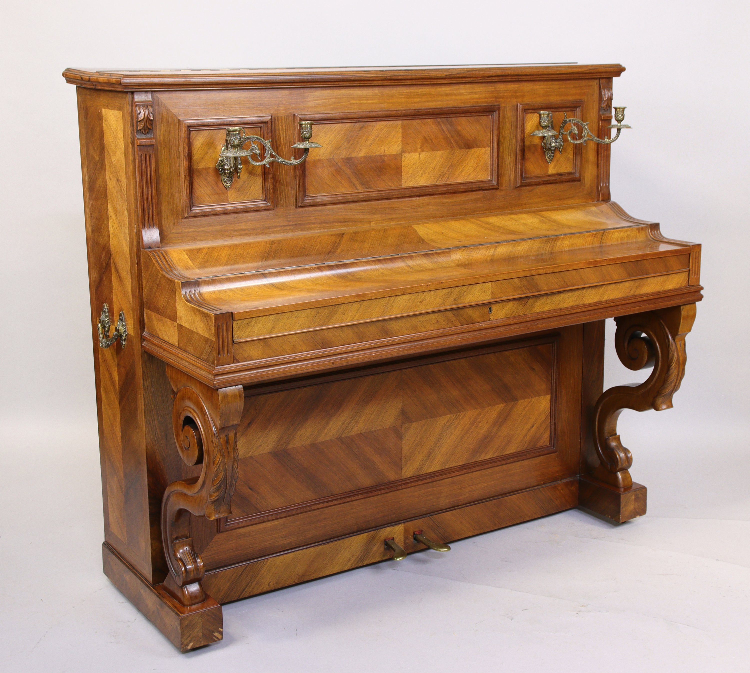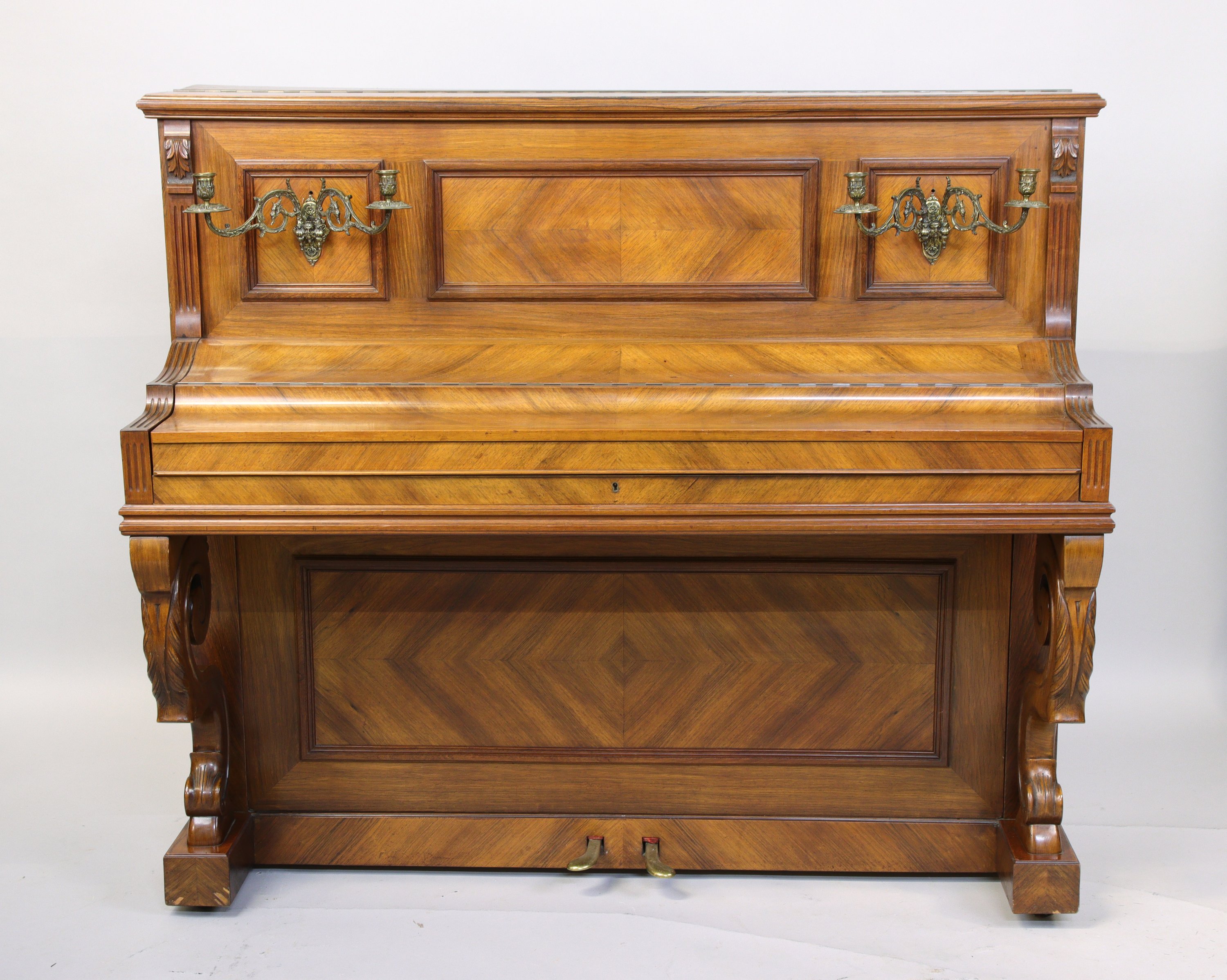 en merisier, avec chandeliers et poignées en laiton, clavier en ivoire.