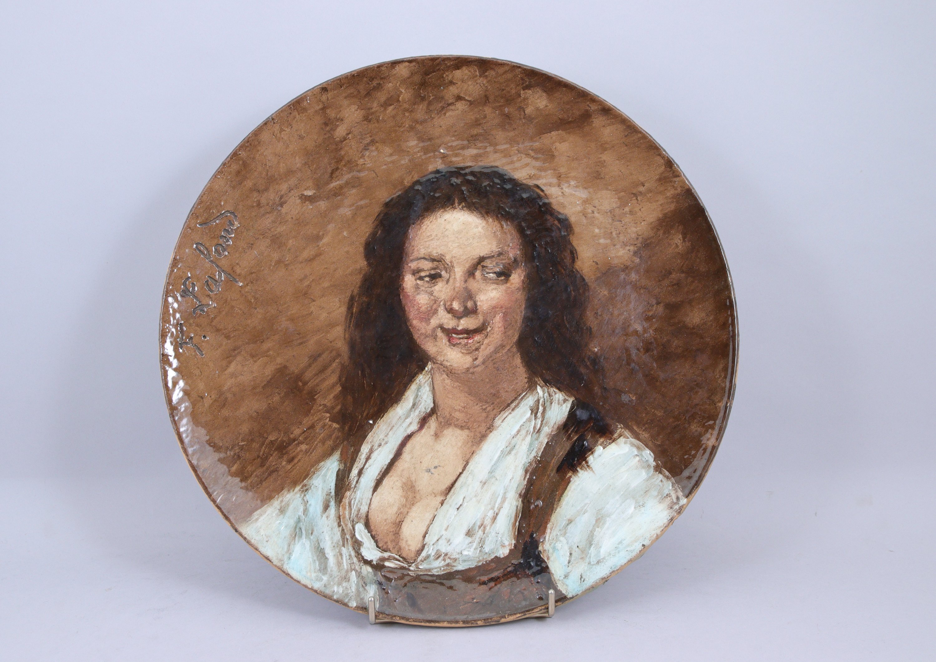 de forme circulaire en barbotine impressionniste. Signé, contresigné au dos, monogrammé DG et daté.