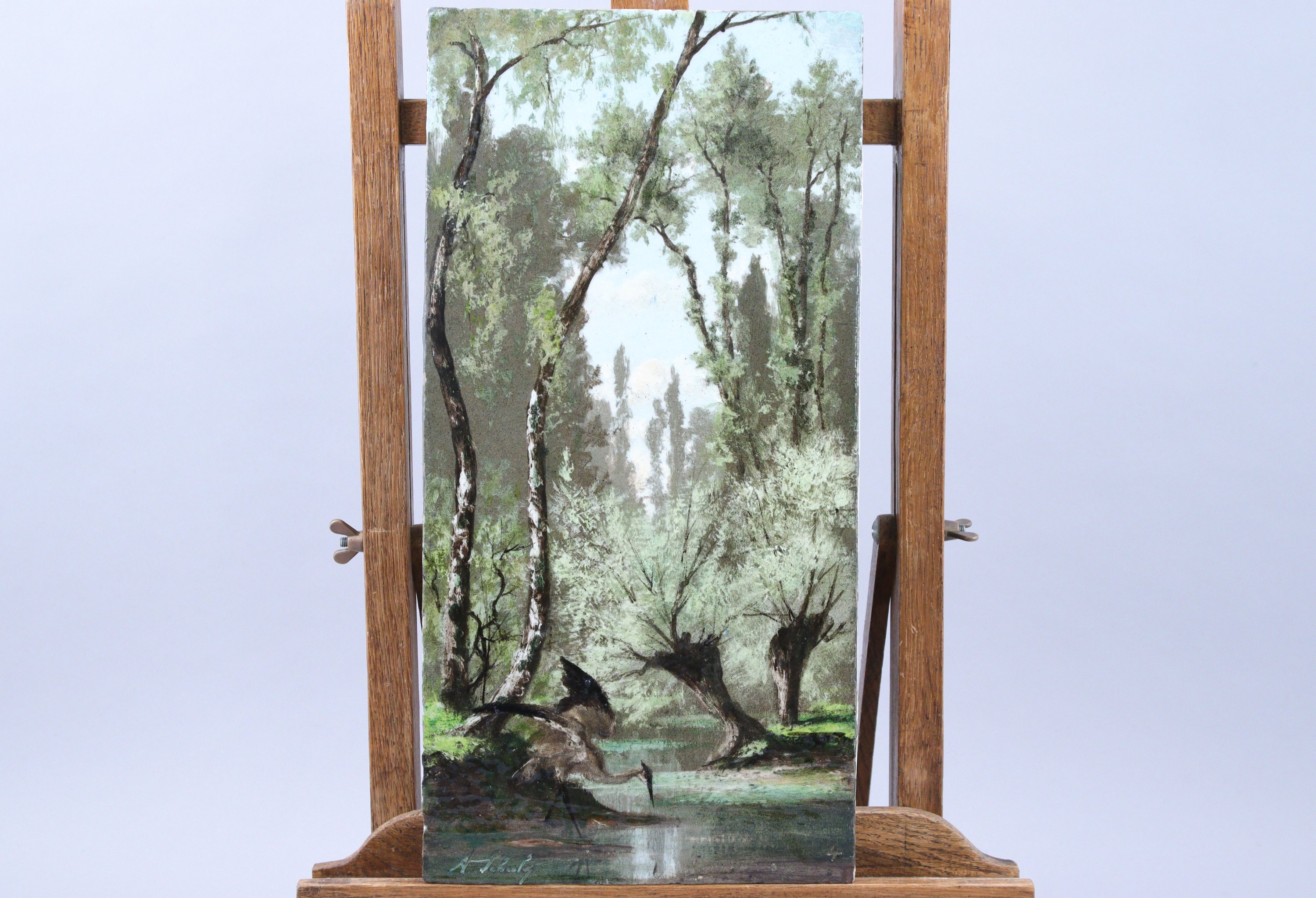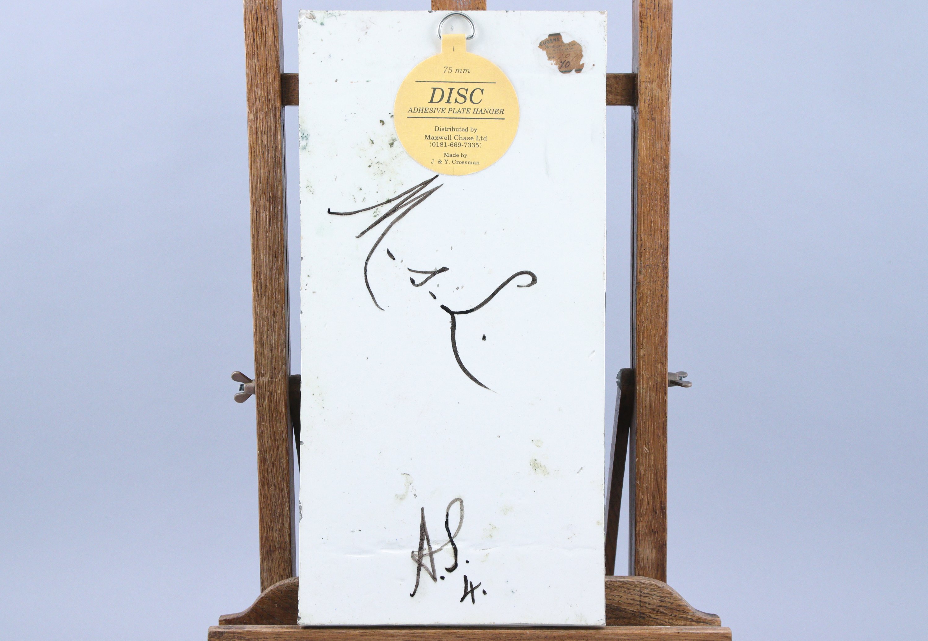 Plaque en barbotine émaillée. Signée en bas à gauche, monogrammée au dos des initiales de l'artiste et de "MSL" pour les ateliers de Montigny-sur-Loing.