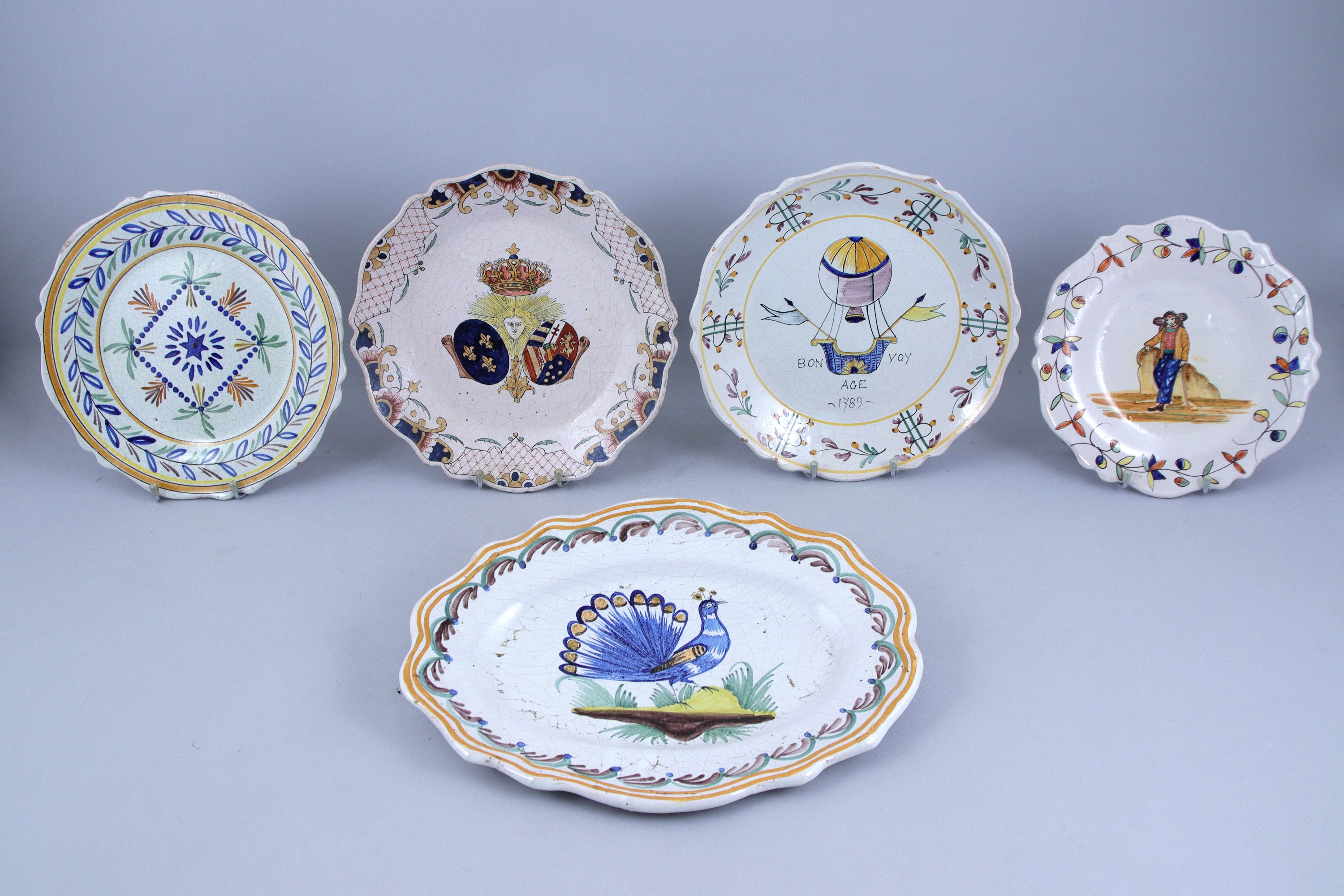 CINQ ASSIETTES DIVERSES et UN PLAT.