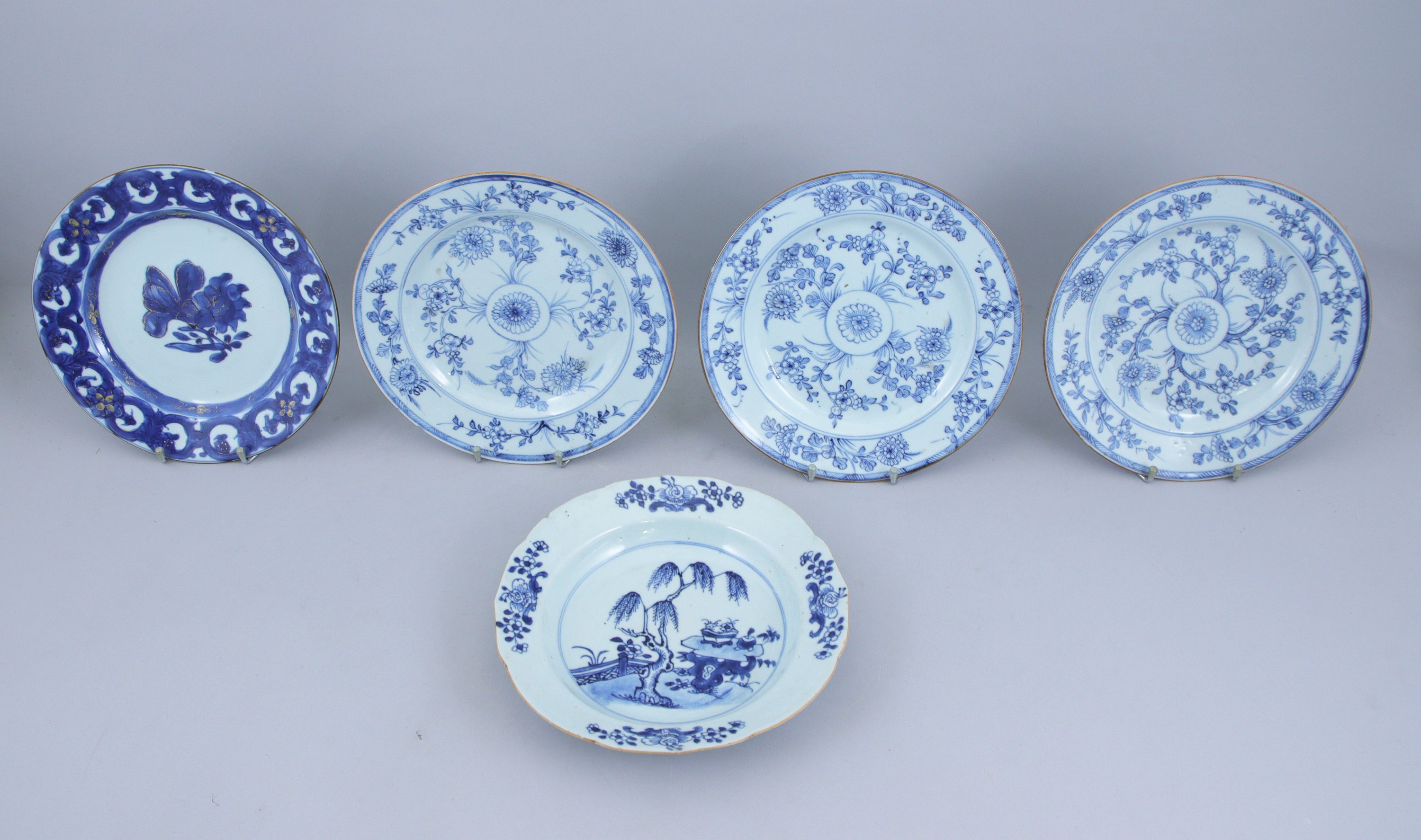 en porcelaine émaillée en bleu sous couverte à décors de bouquets, de paysages fleuris et d'entrelacs.