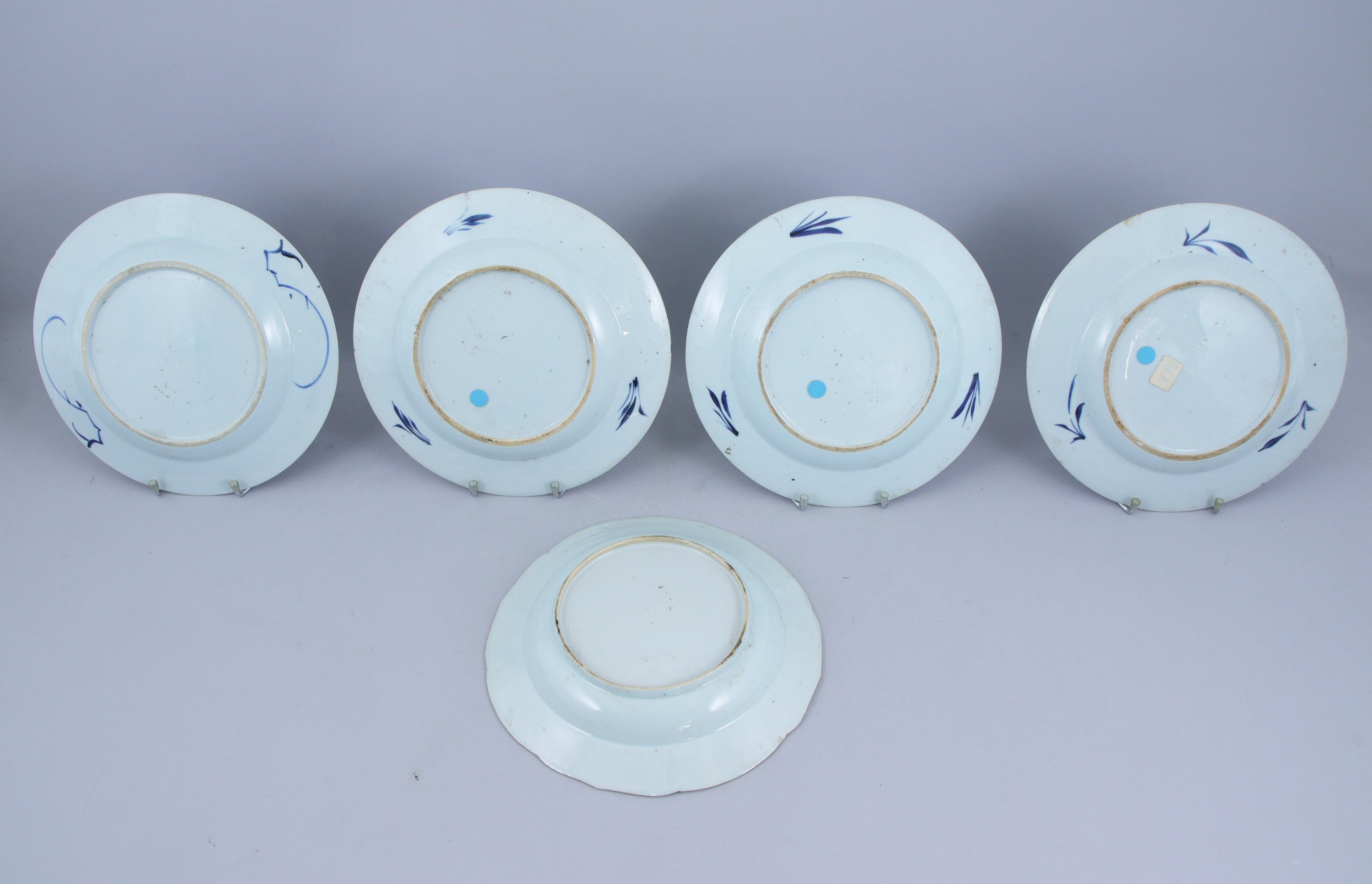 CHINE. UN PLAT et CINQ ASSIETTES dont une creuse