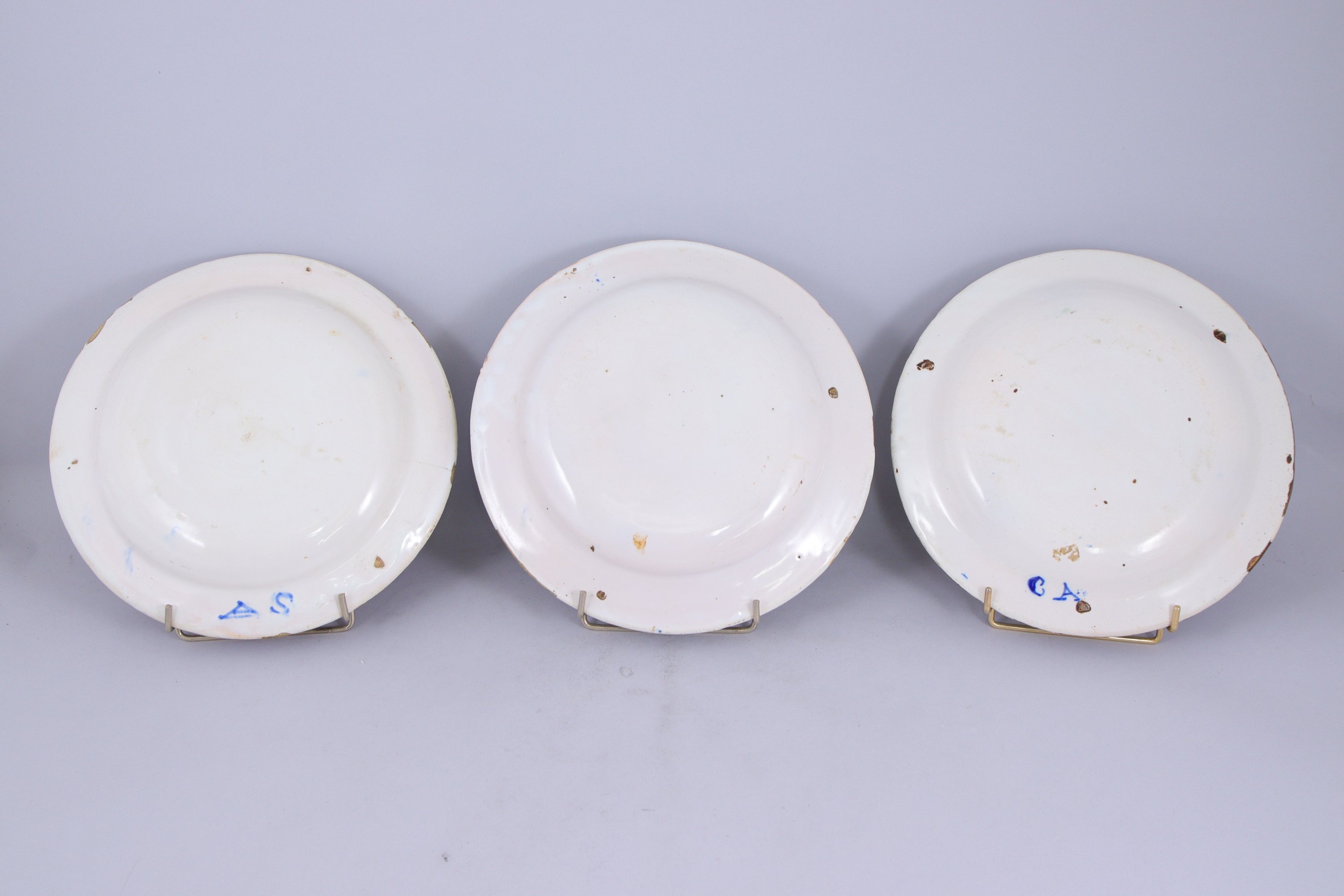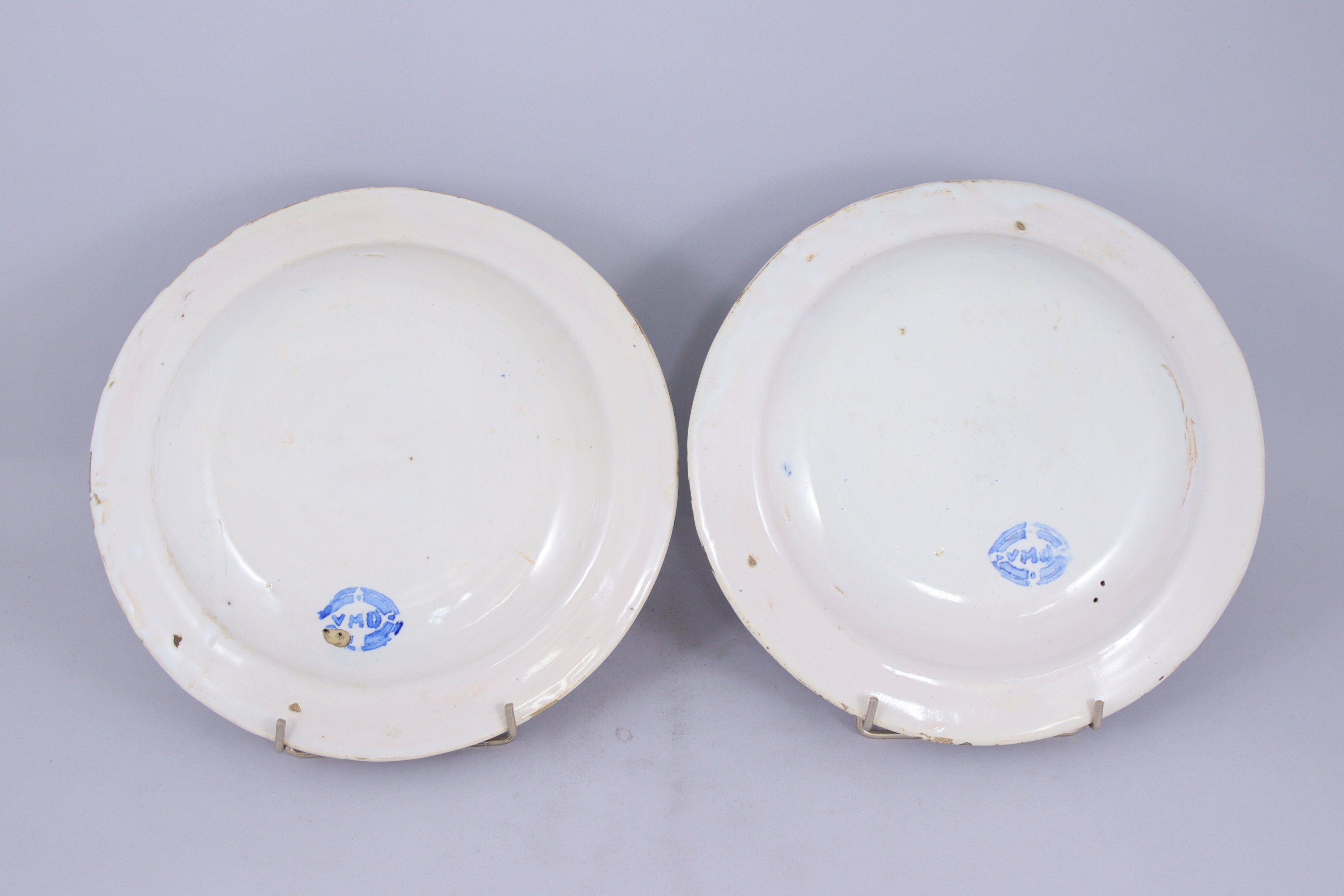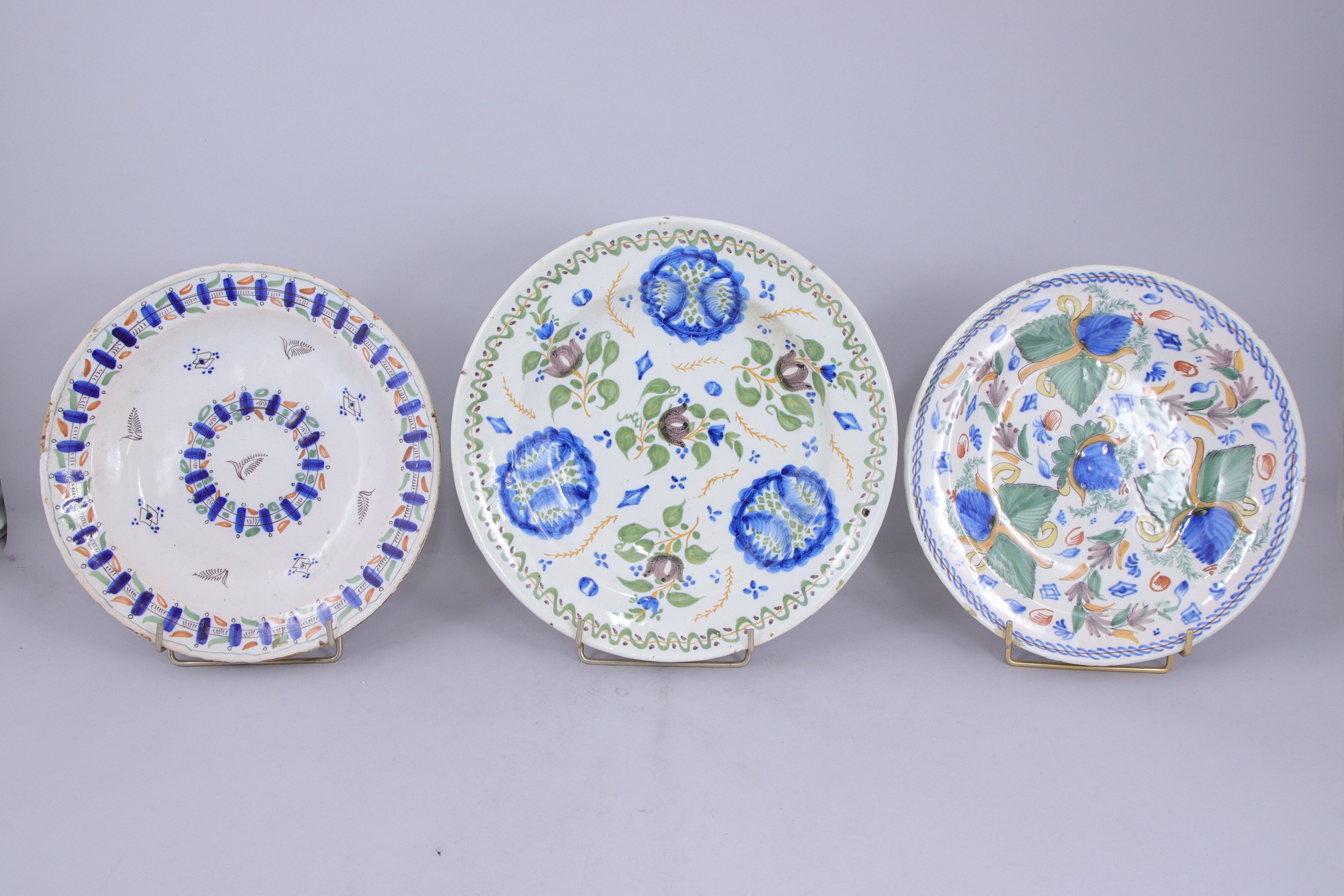 HUIT PLATS en faïence à décor feuillagé dans des dominantes...