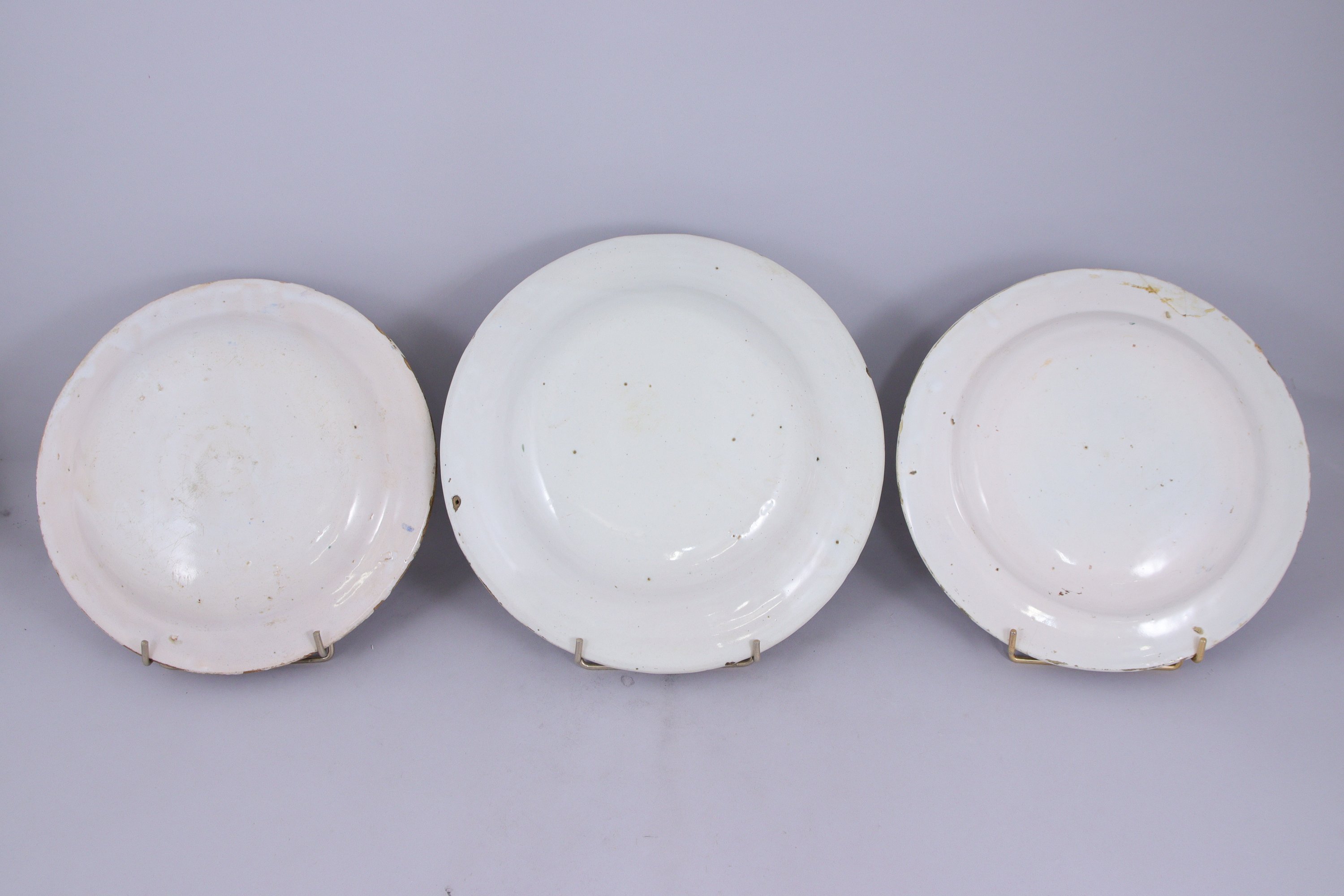 HUIT PLATS en faïence à décor feuillagé dans des dominantes vertes.