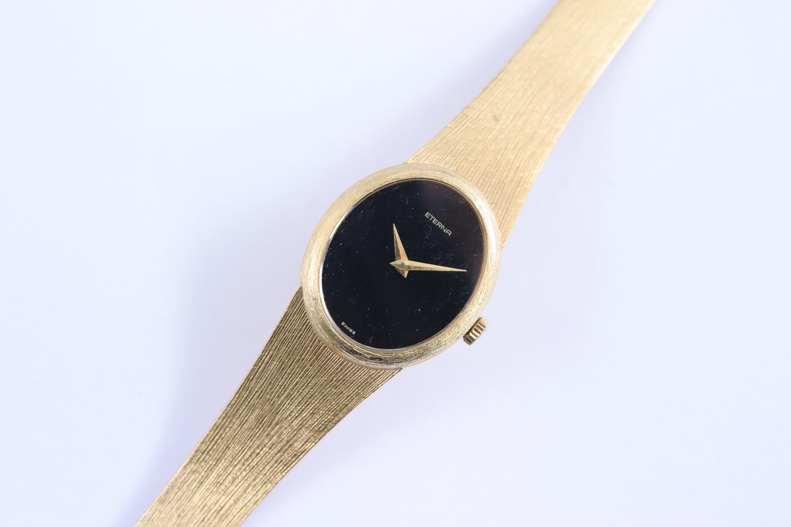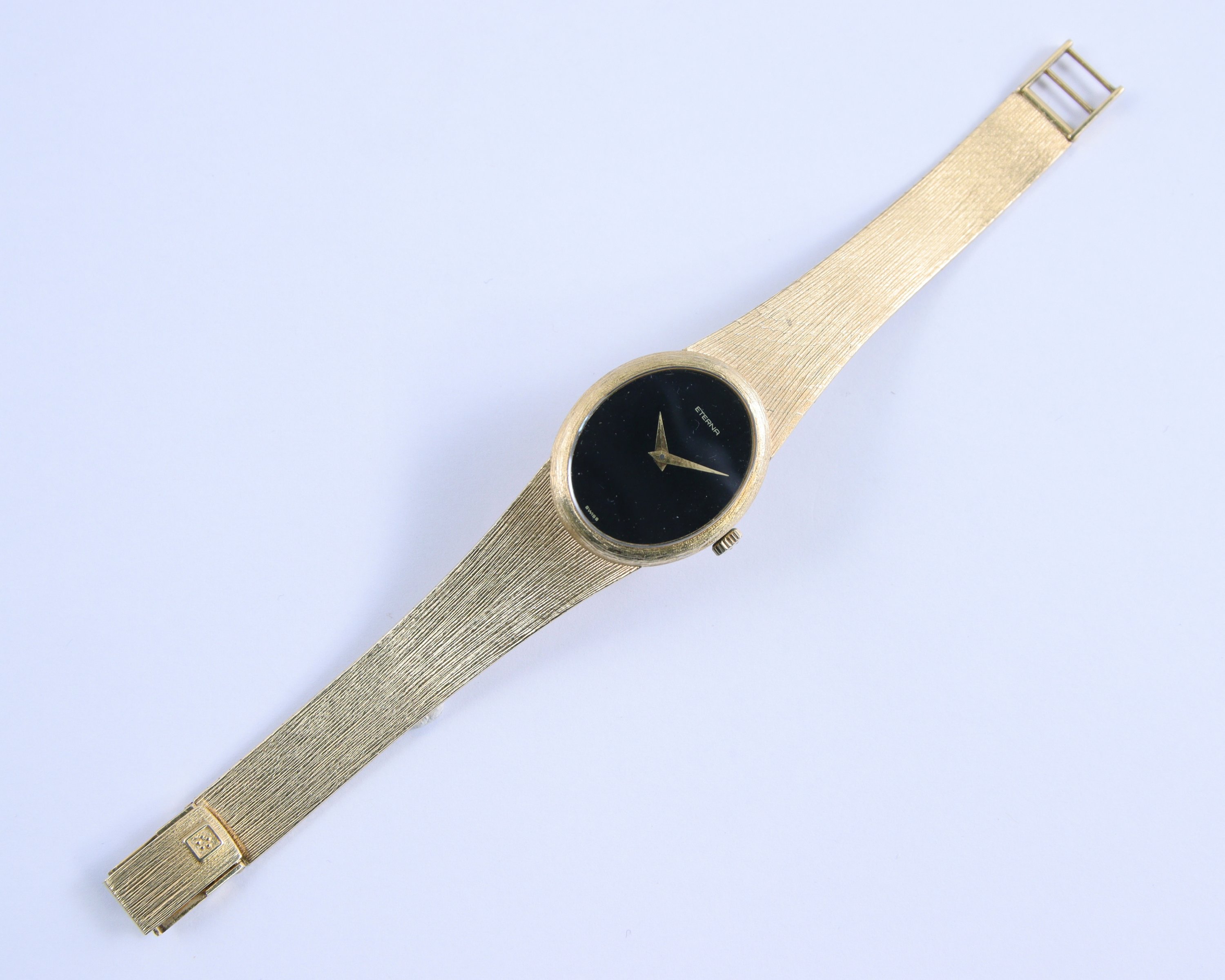 ETERNA. MONTRE BRACELET DE DAME en or jaune 750 millièmes, le cadran de forme ovale de couleur noire. Boîtier numéroté 6.195.354.