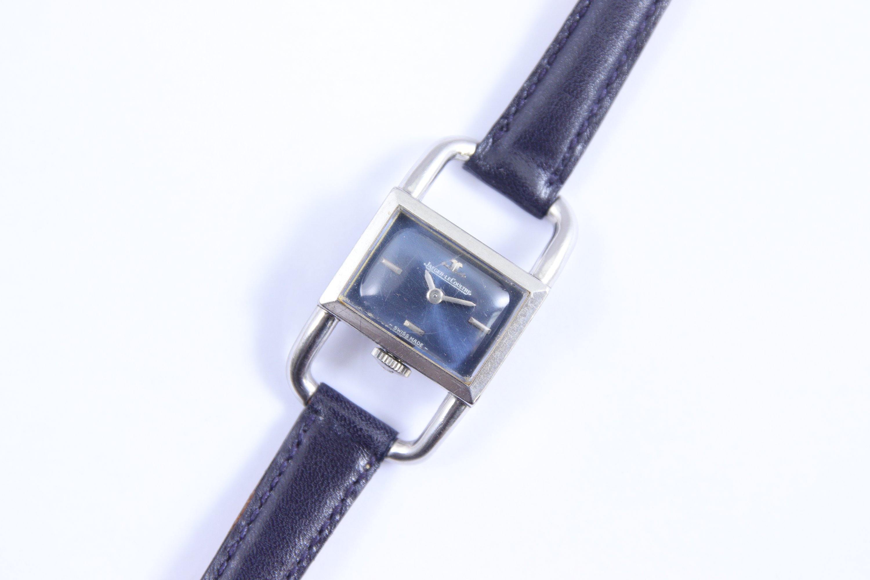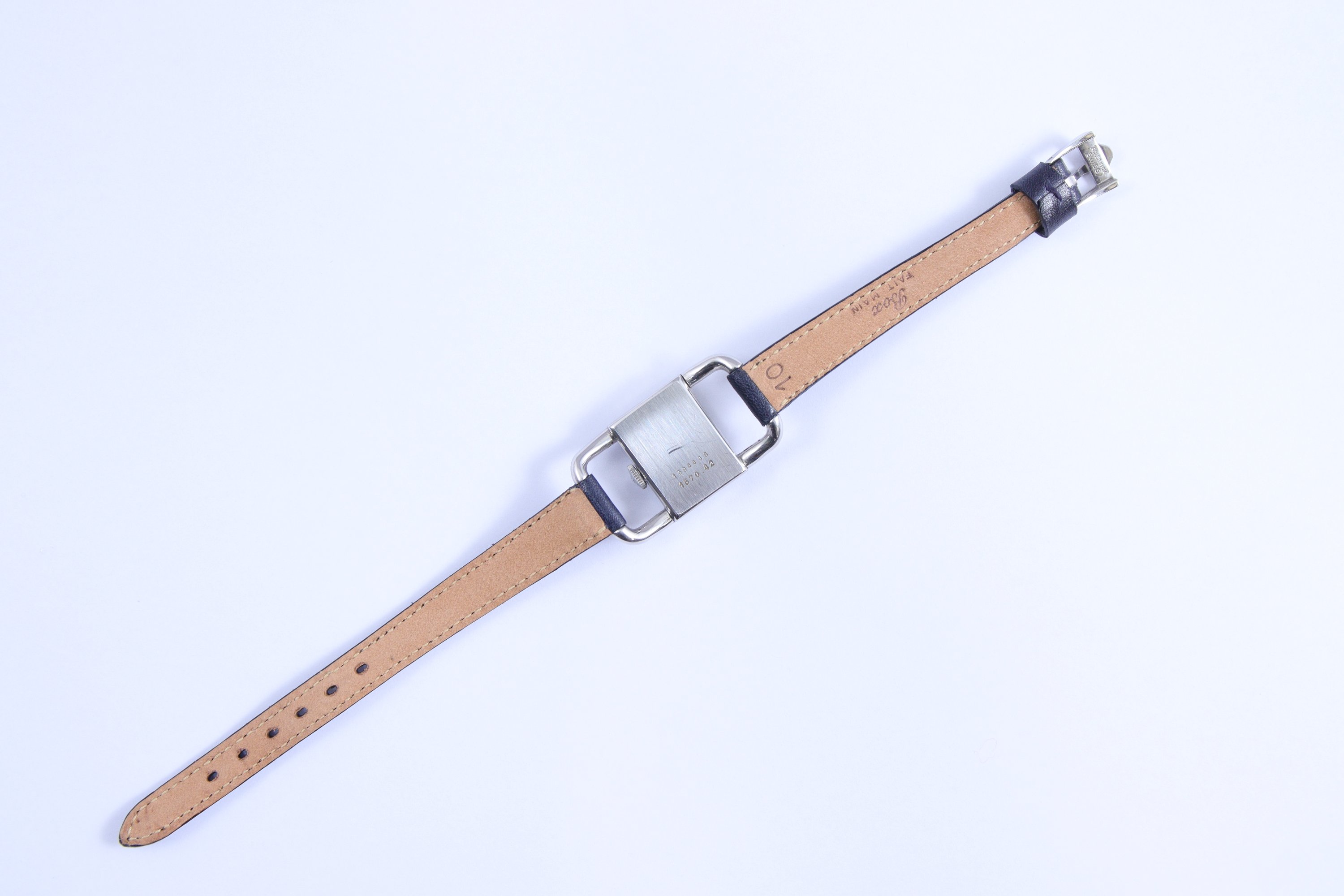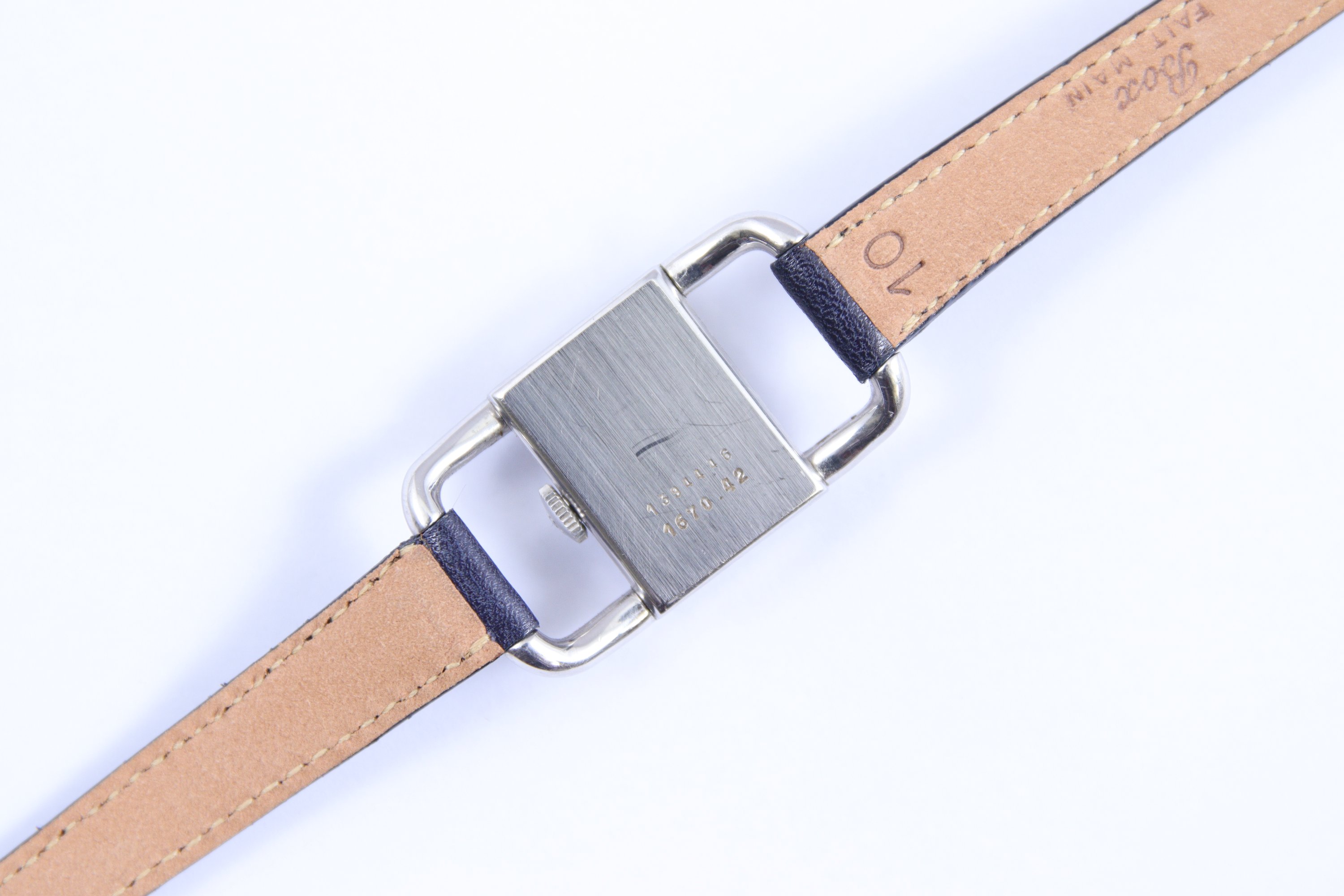 JAEGER LECOULTRE. Belle MONTRE BRACELET ÉTRIER de dame pour la maison Hermès en acier. le boitier de forme rectangulaire, le cadran noirci avec l'index des heures. Mouvement mécanique, remontoir à six heures. Numéroté 1394446 et 1670.42.