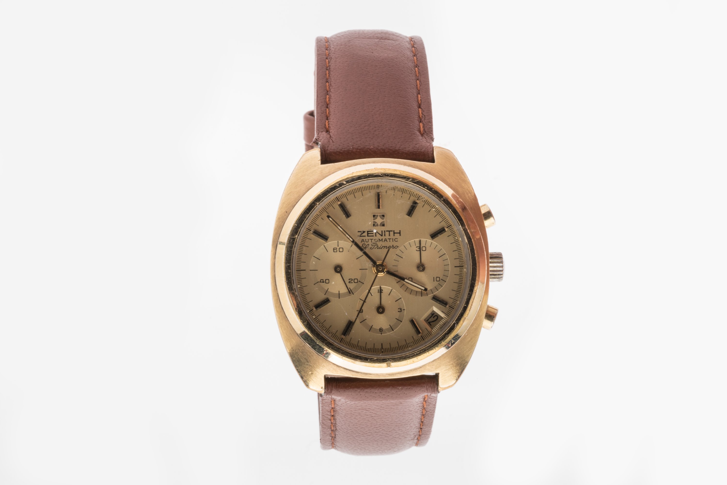 ZENITH. MONTRE CHRONOGRAPHE EL PRIMERO.Boîtier plaqué en or jaune de...