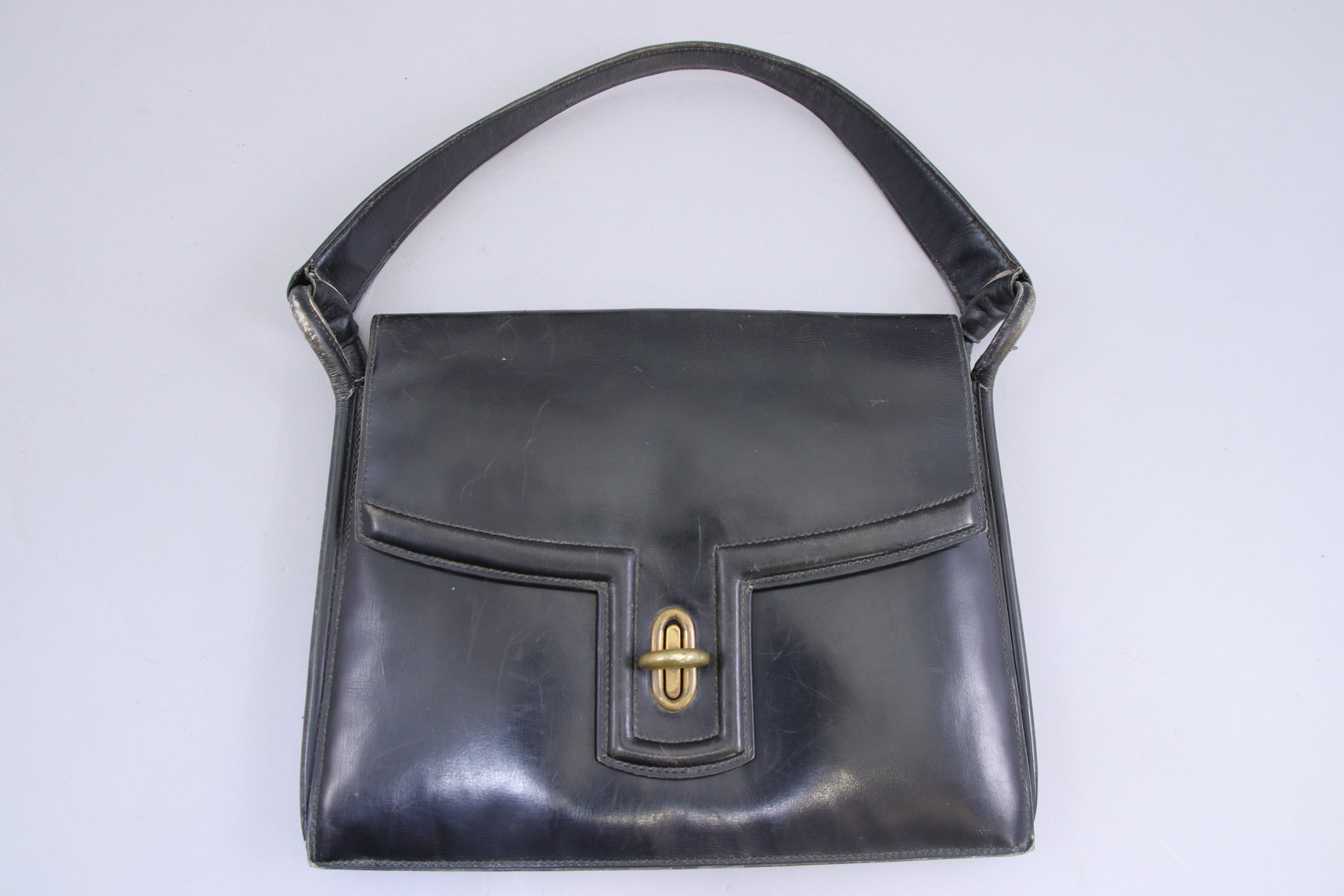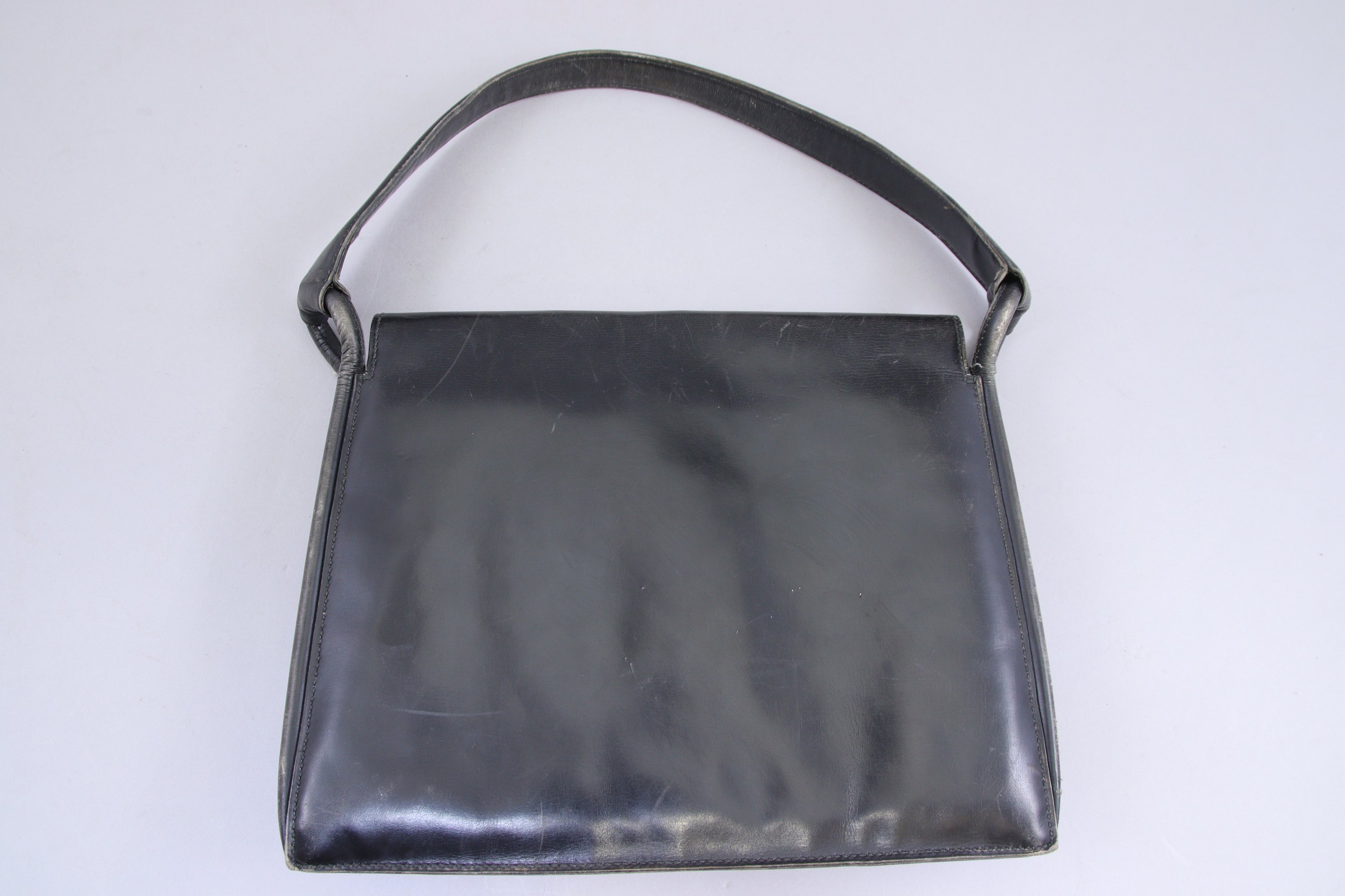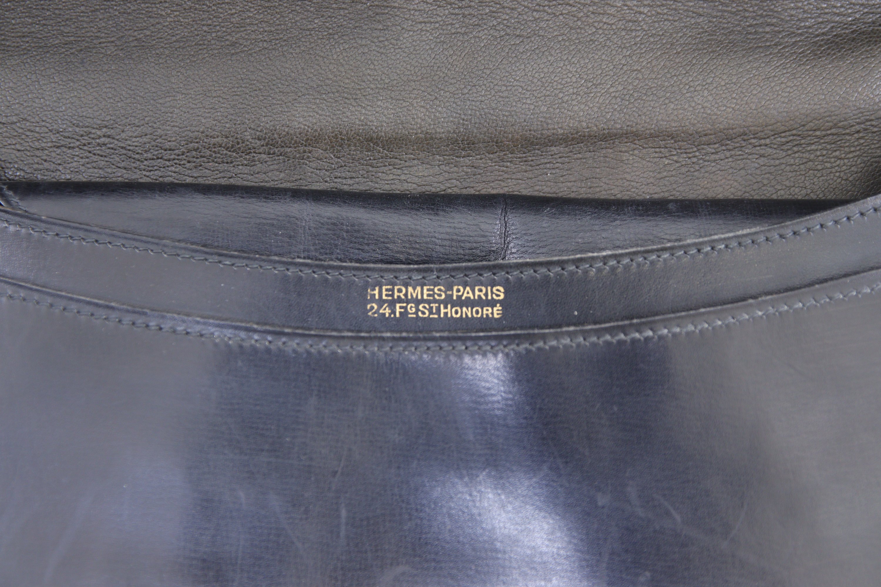 HERMÈS Paris 24 faubourg Saint Honoré. SAC à MAIN en cuir noir, modèle "Regain", fermoir en métal doré.
