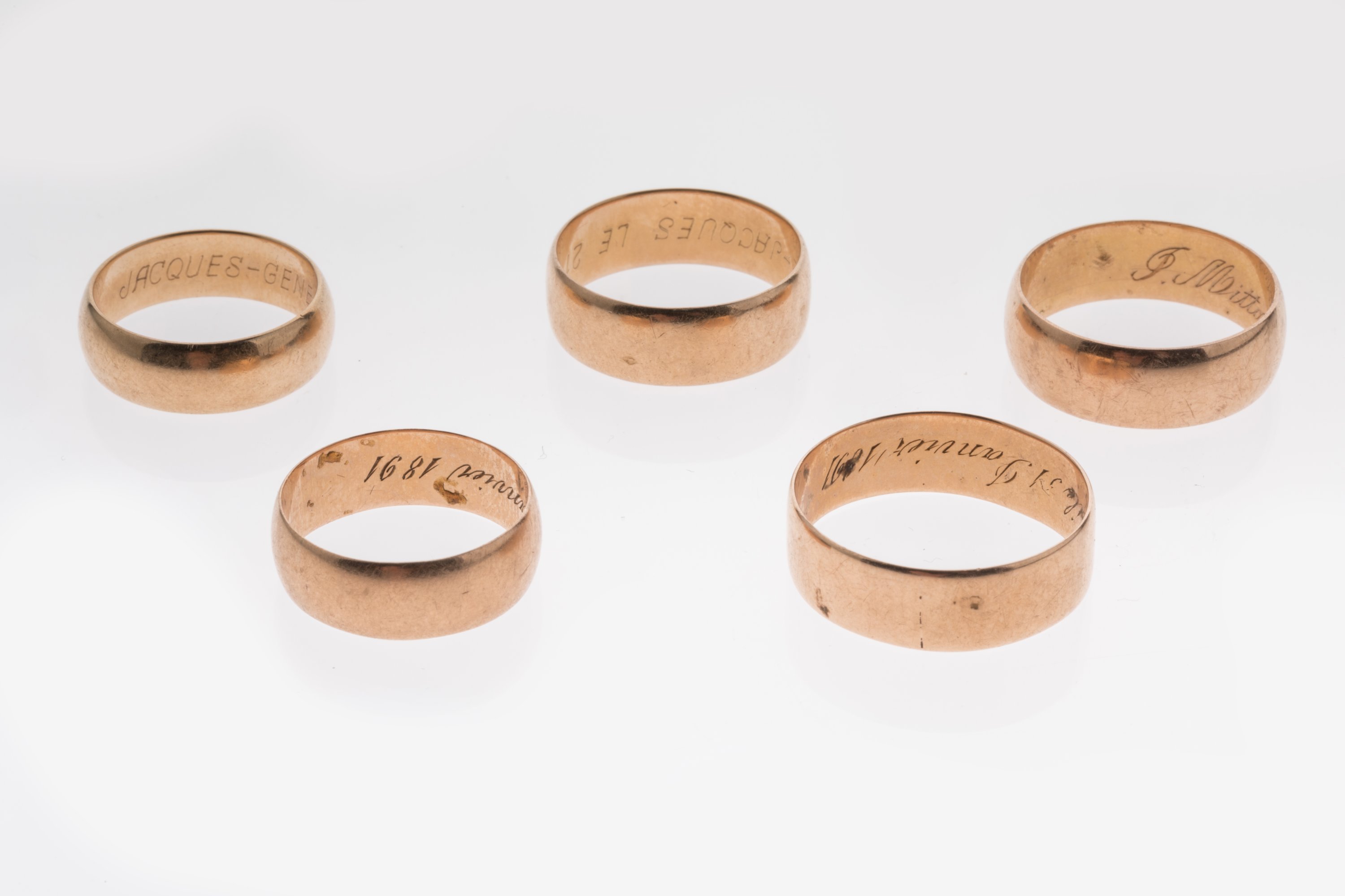 RÉUNION de CINQ ALLIANCES en or jaune 750 millièmes.