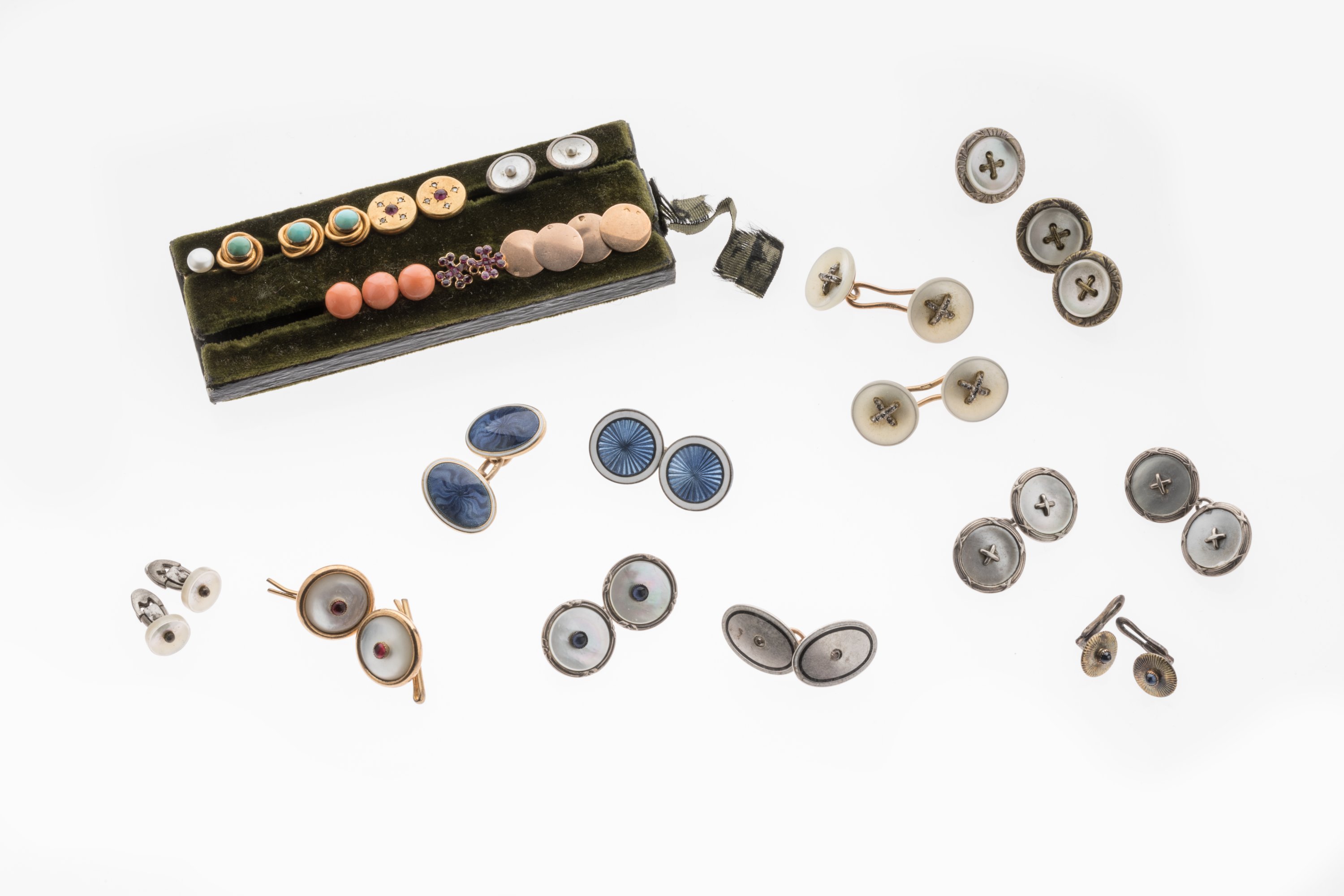 JOINT: divers boutons de cols et de manchettes en argent ou métal.