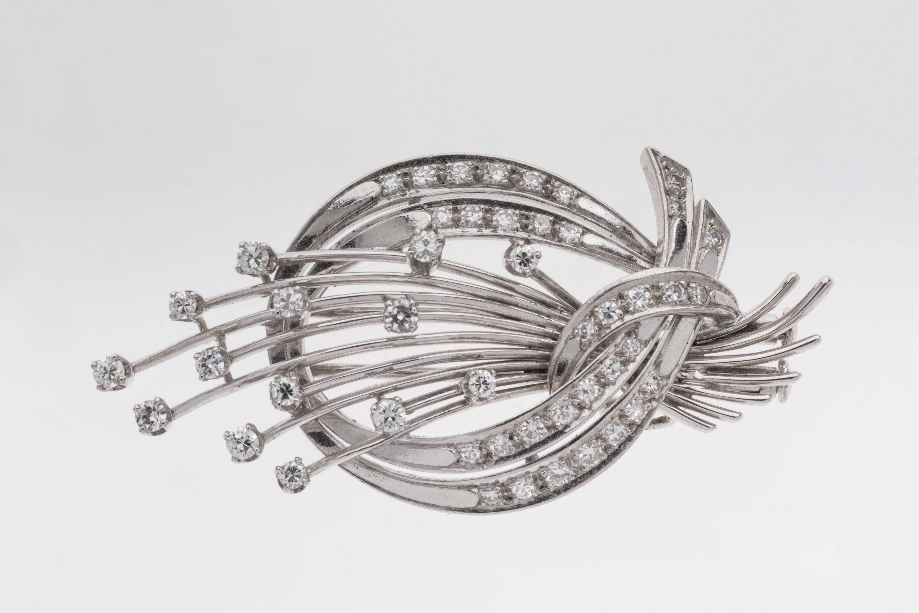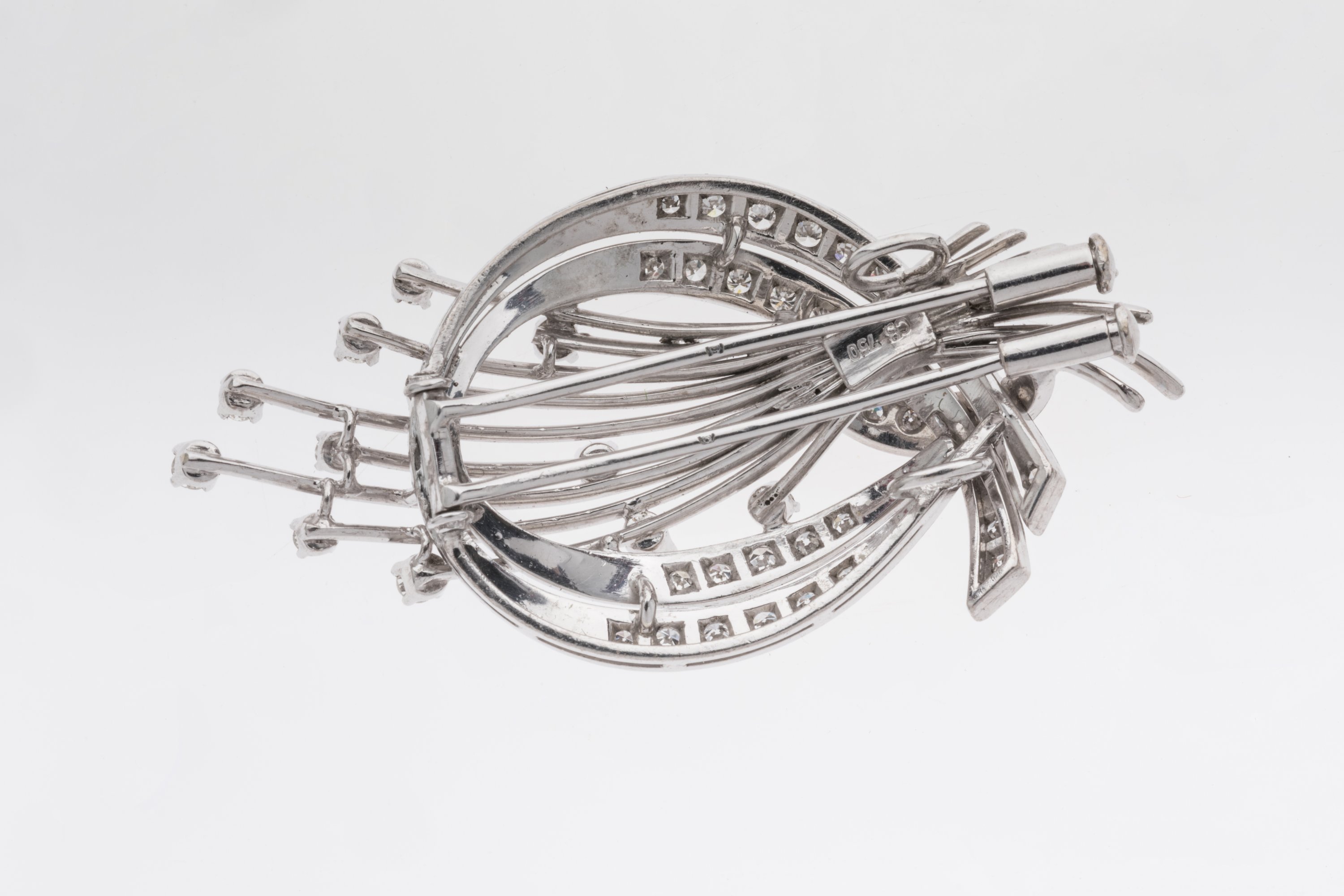 CLIP de REVERS en or gris 750 millièmes à décor de nud stylisé orné de DIAMANTS ronds taillés en huit-huit et de taille brillant.