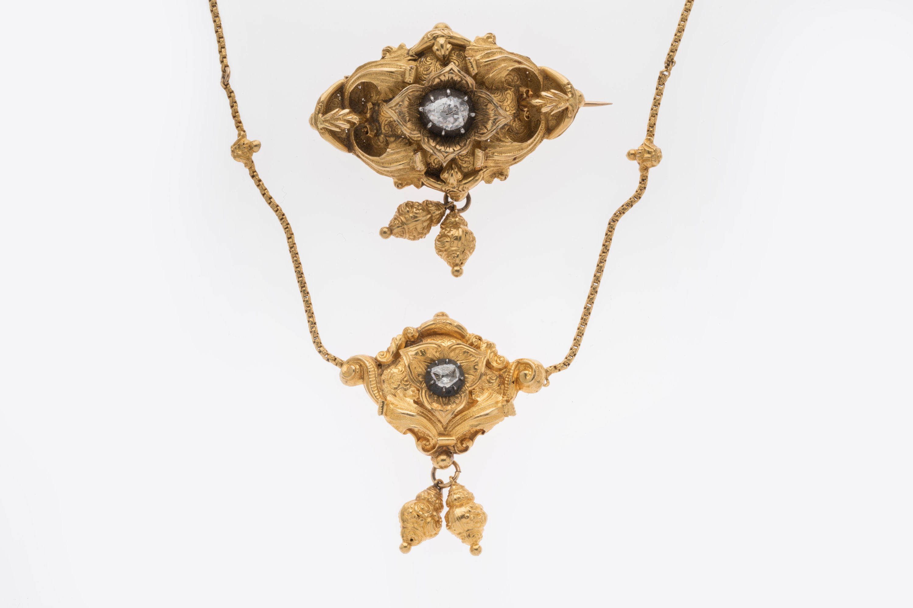 BROCHE et PENDENTIF en or jaune 750 millièmes.
