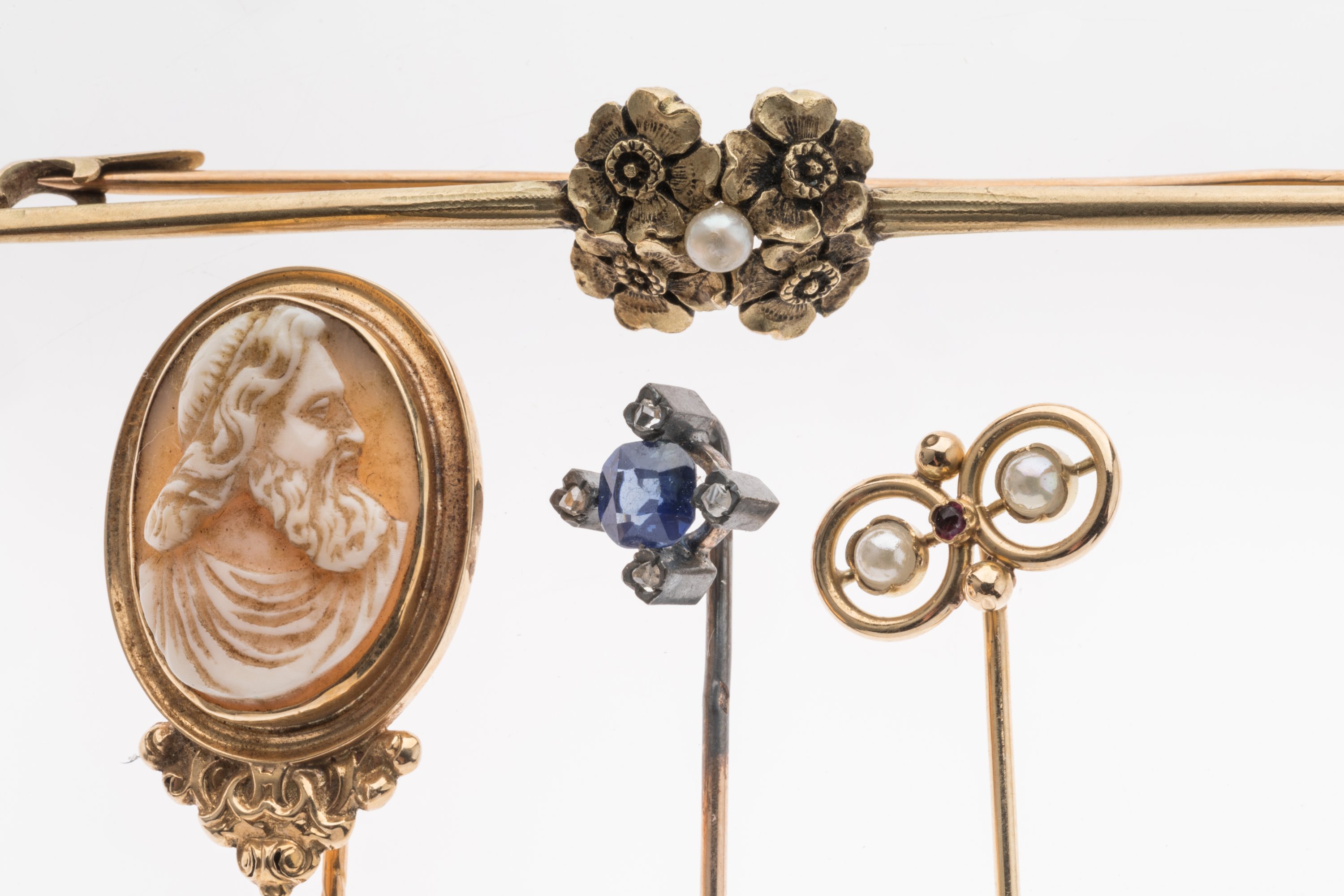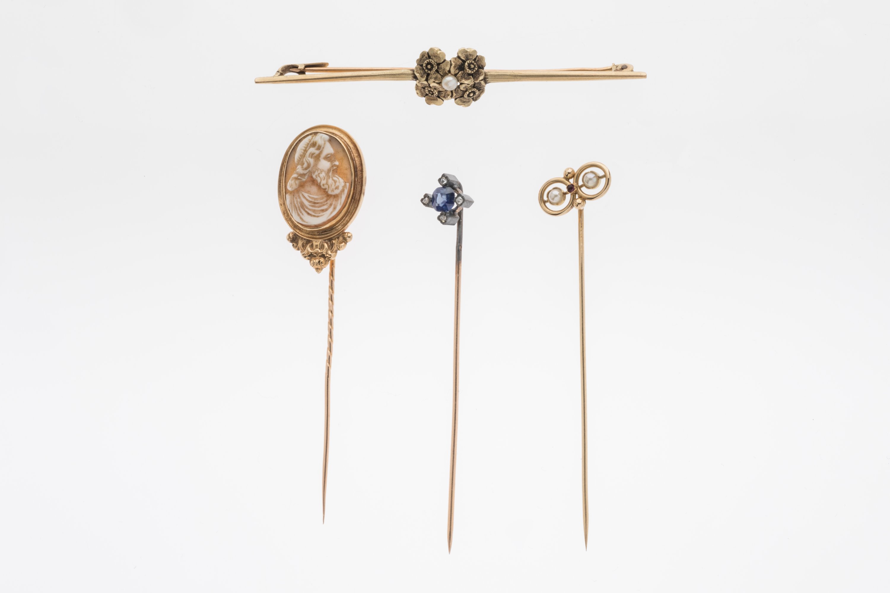 QUATRE ÉPINGLES à CRAVATE en or jaune 750 millièmes.