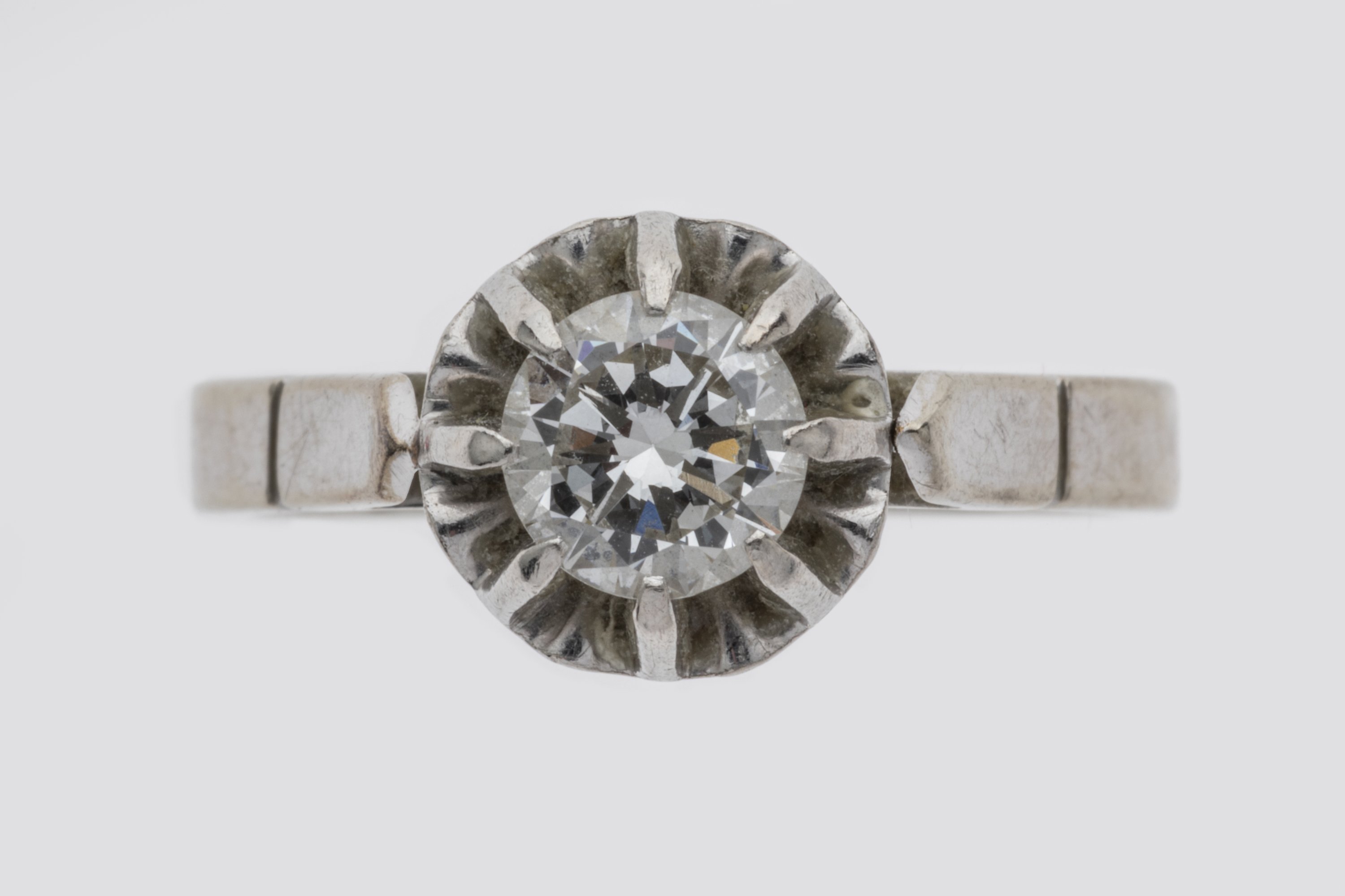 BAGUE sur or blanc et platine enchâssant un DIAMANT taille brillant monté en solitaire.
