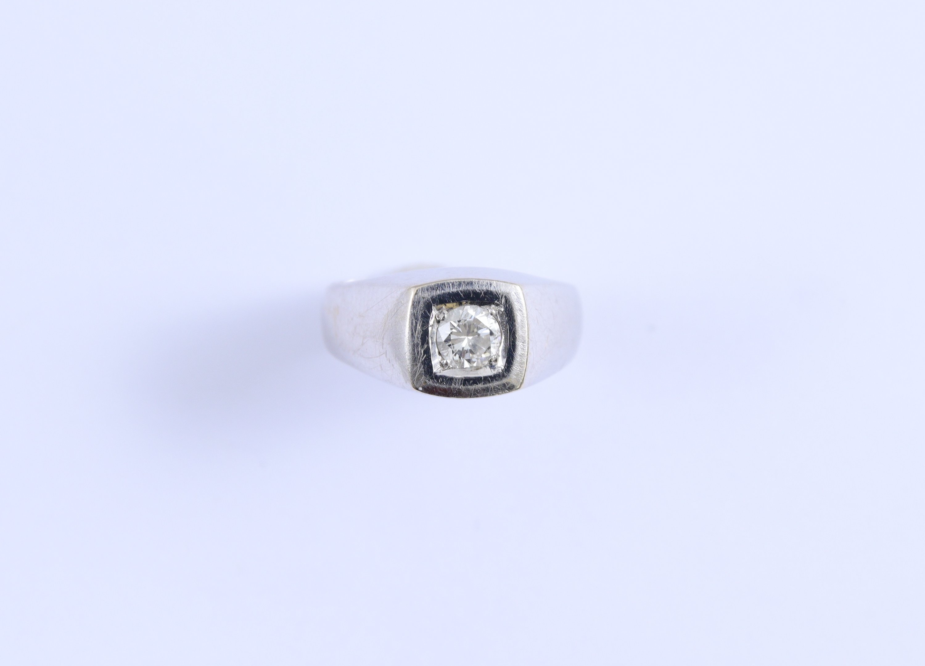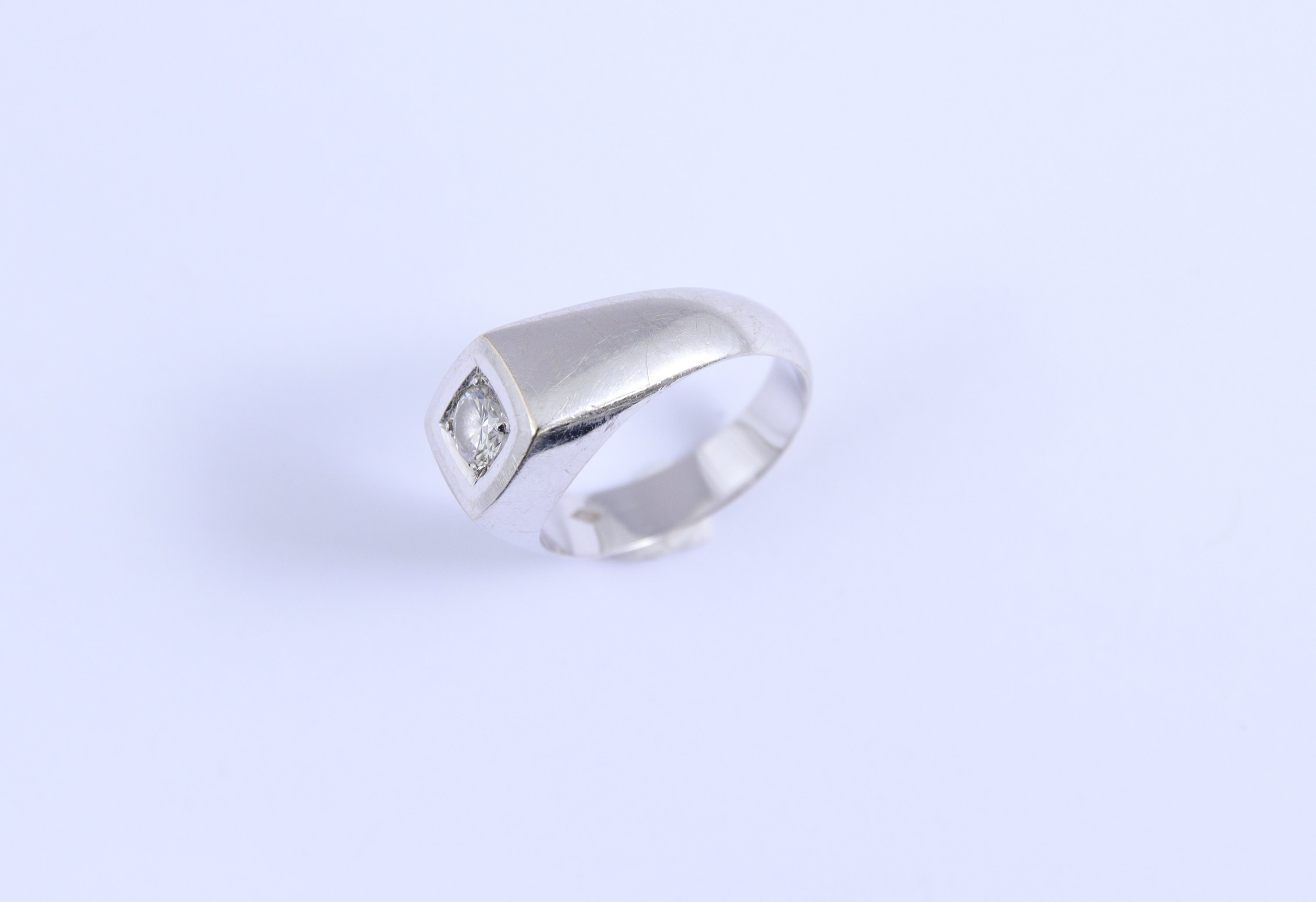 CHEVALLIÉRE en or gris 14 K ornée d'un diamant taille brillant d'environ 0,25 carat.