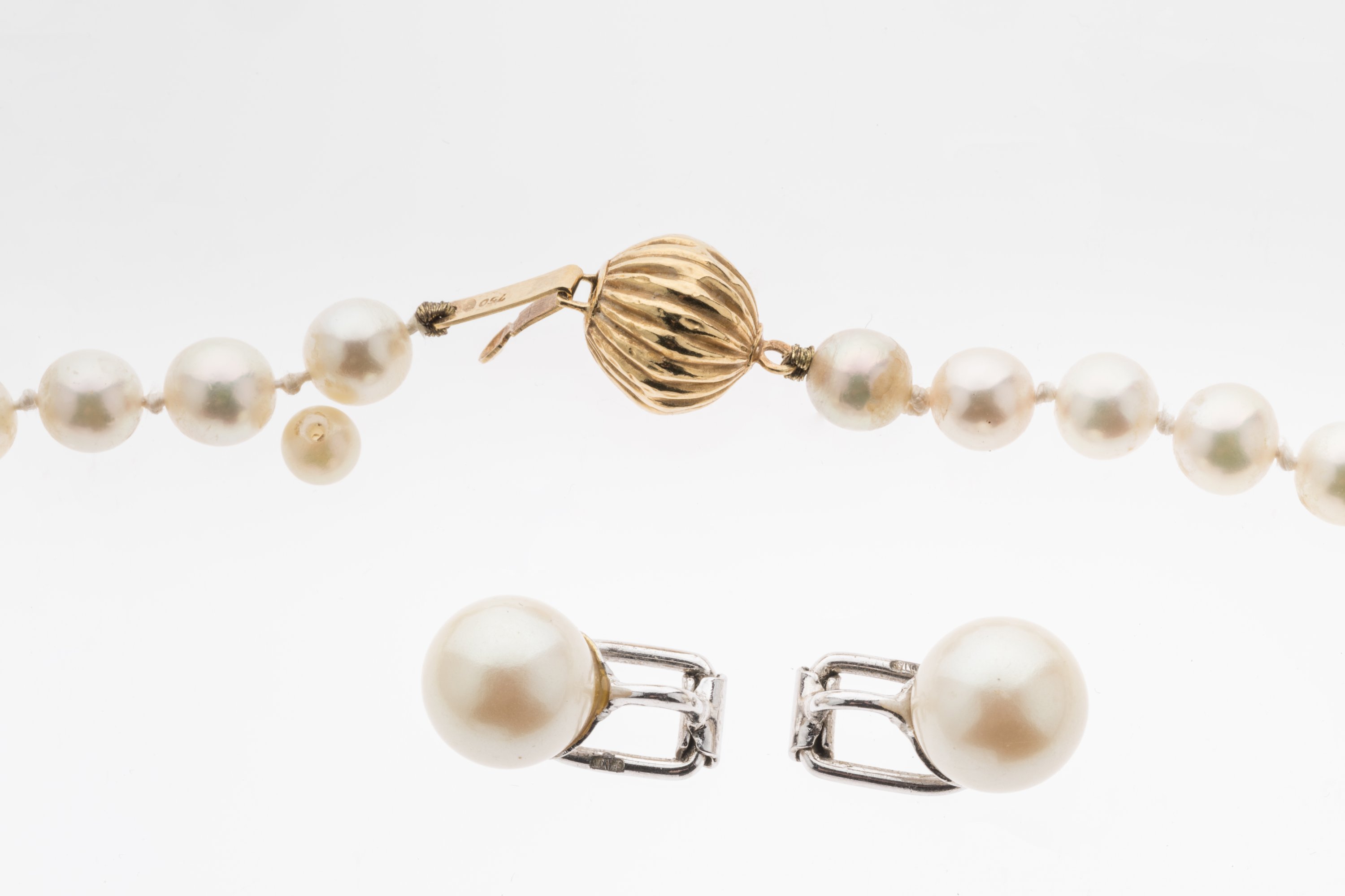 - COLLIER de perles de culture, le fermoir en or jaune 750 millièmes. Long. 49,5 cm.
