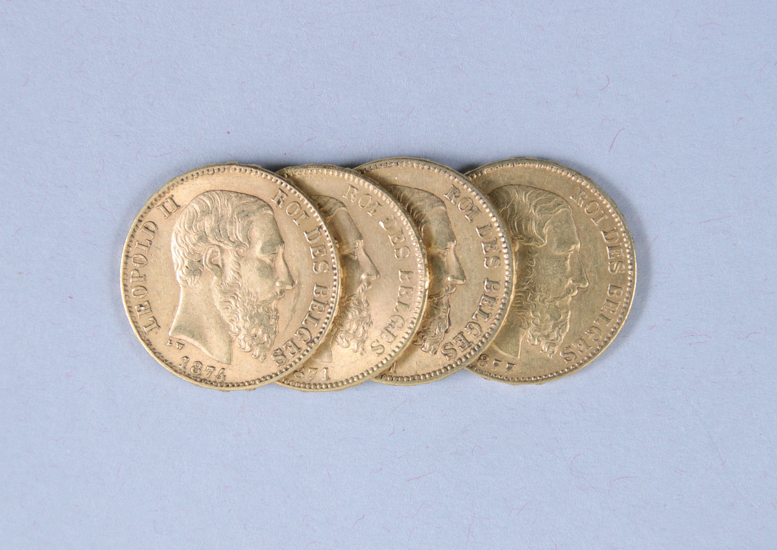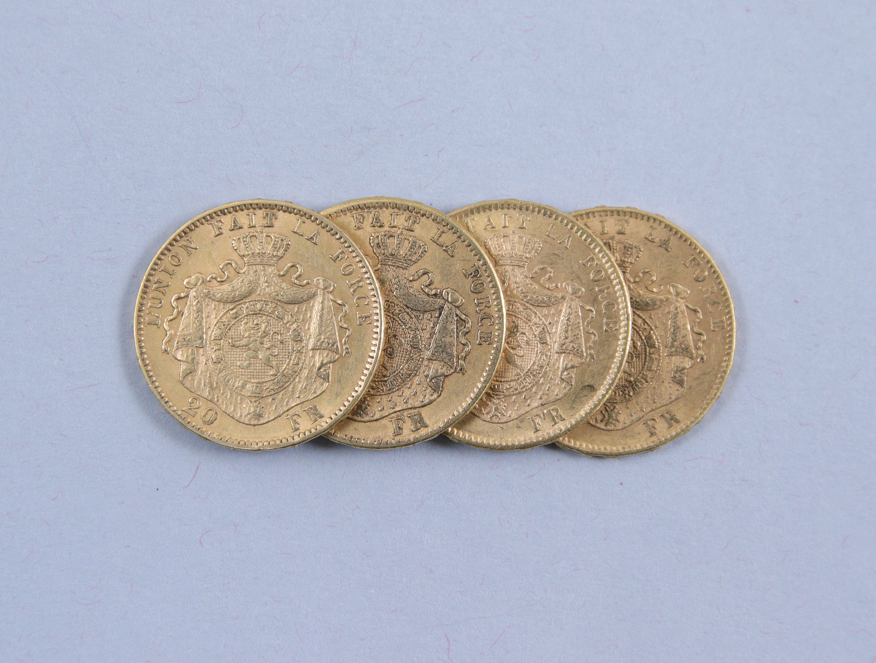 BELGIQUE. 4 PIÈCES Léopold II, 20 FRANCS OR.