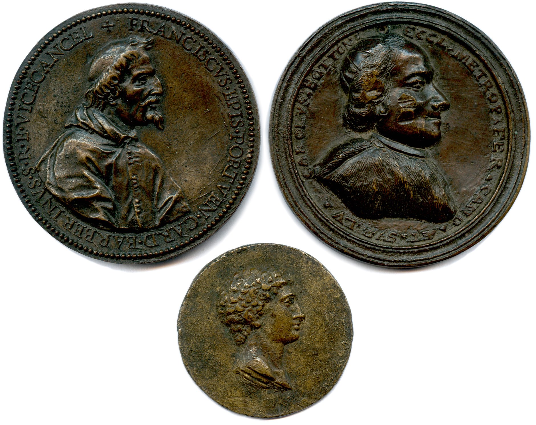 Lot de TROIS MÉDAILLES en BRONZEMédaille Cardinal Francesco Barberini graveur...