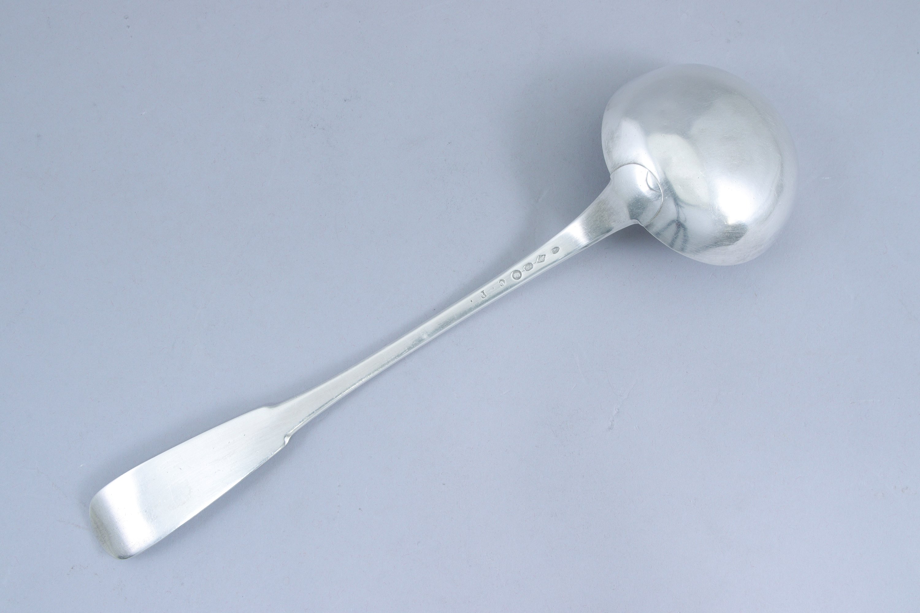 LOUCHE en argent, modèle uniplat monogrammé CP.