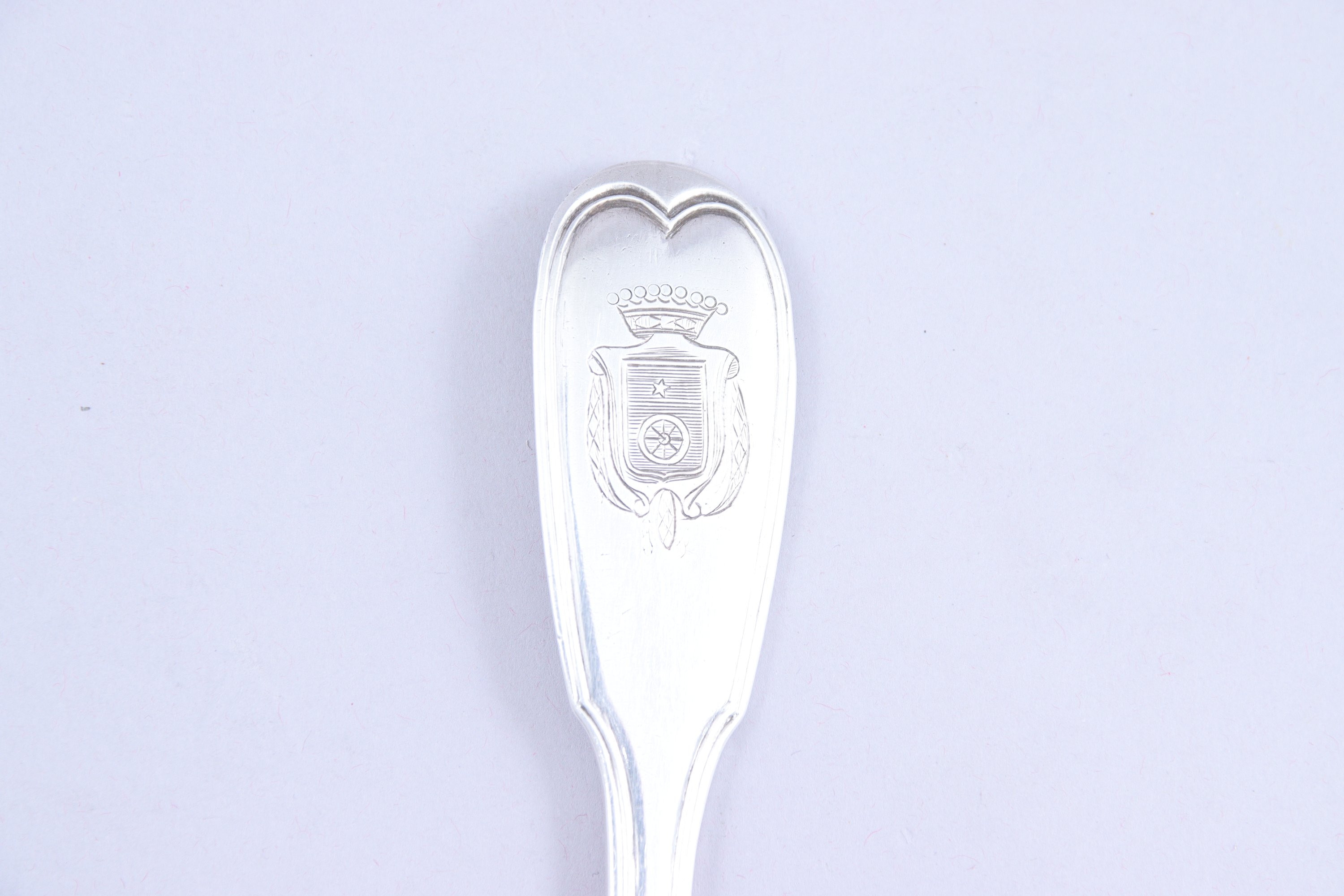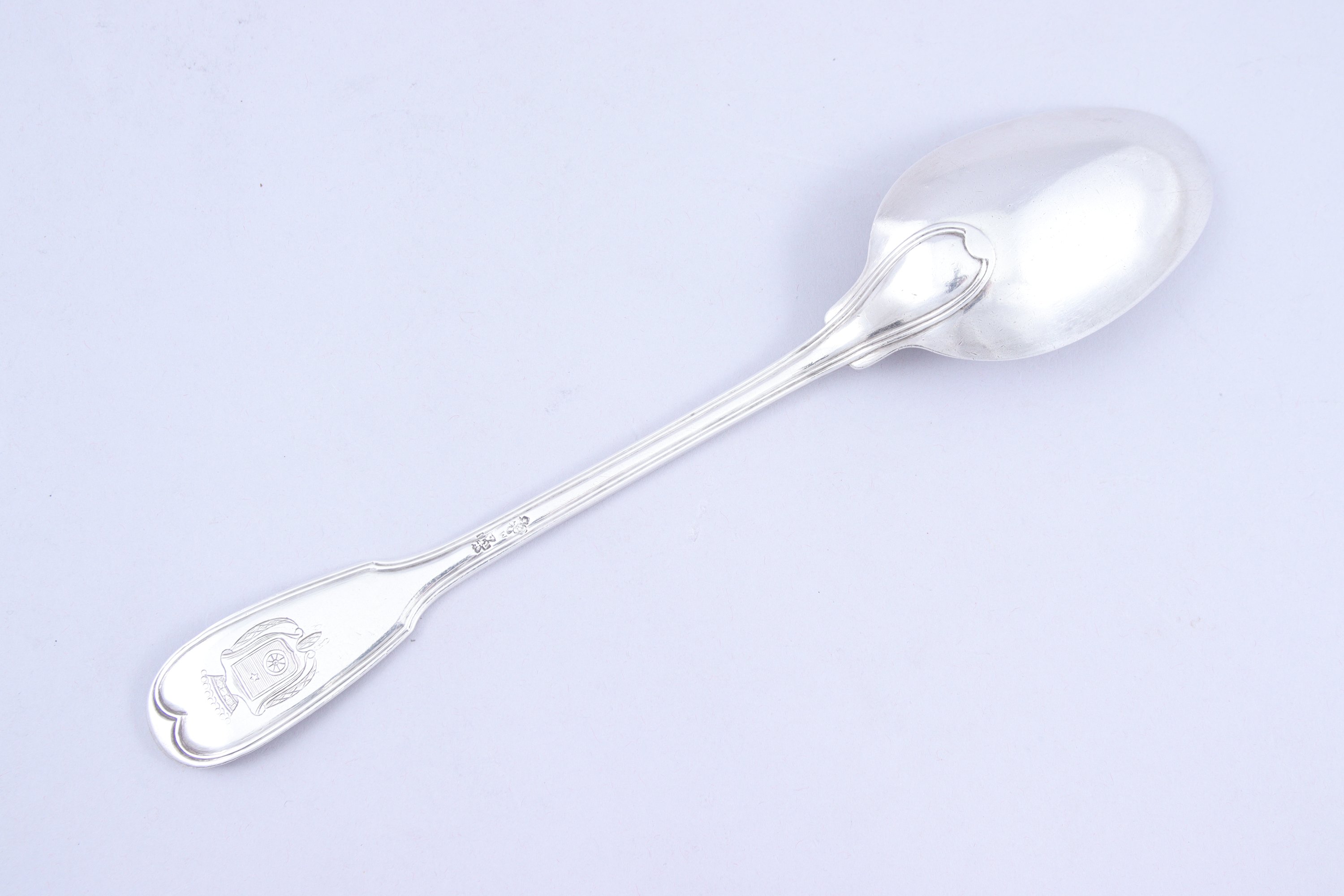 CUILLER à RAGOUT en argent. Armoiries surmontées d'une couronne comtale.