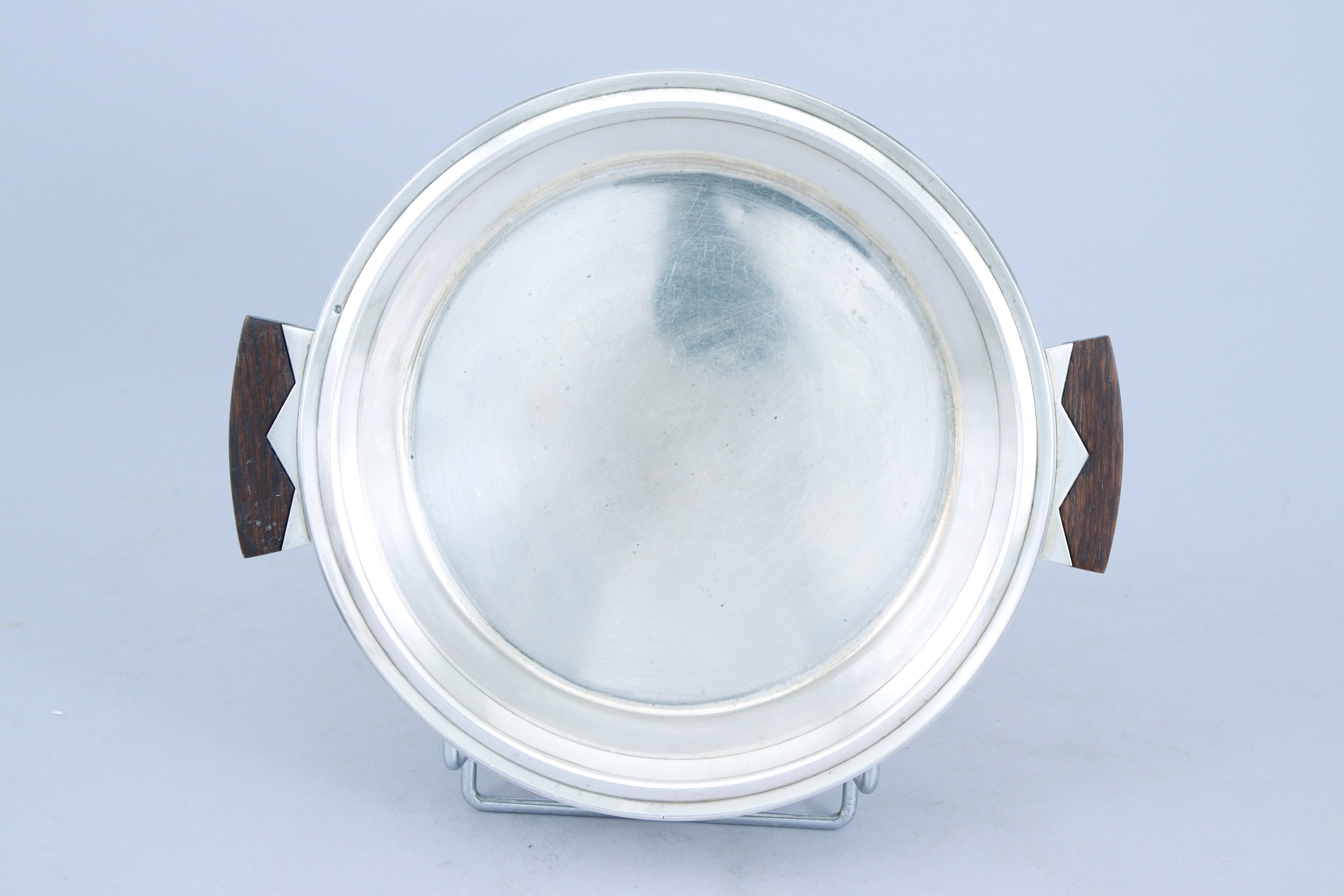 ÉCUELLE à OREILLES en argent de style Art déco. Les oreilles en bois teinté à décor de frise triangulaire.