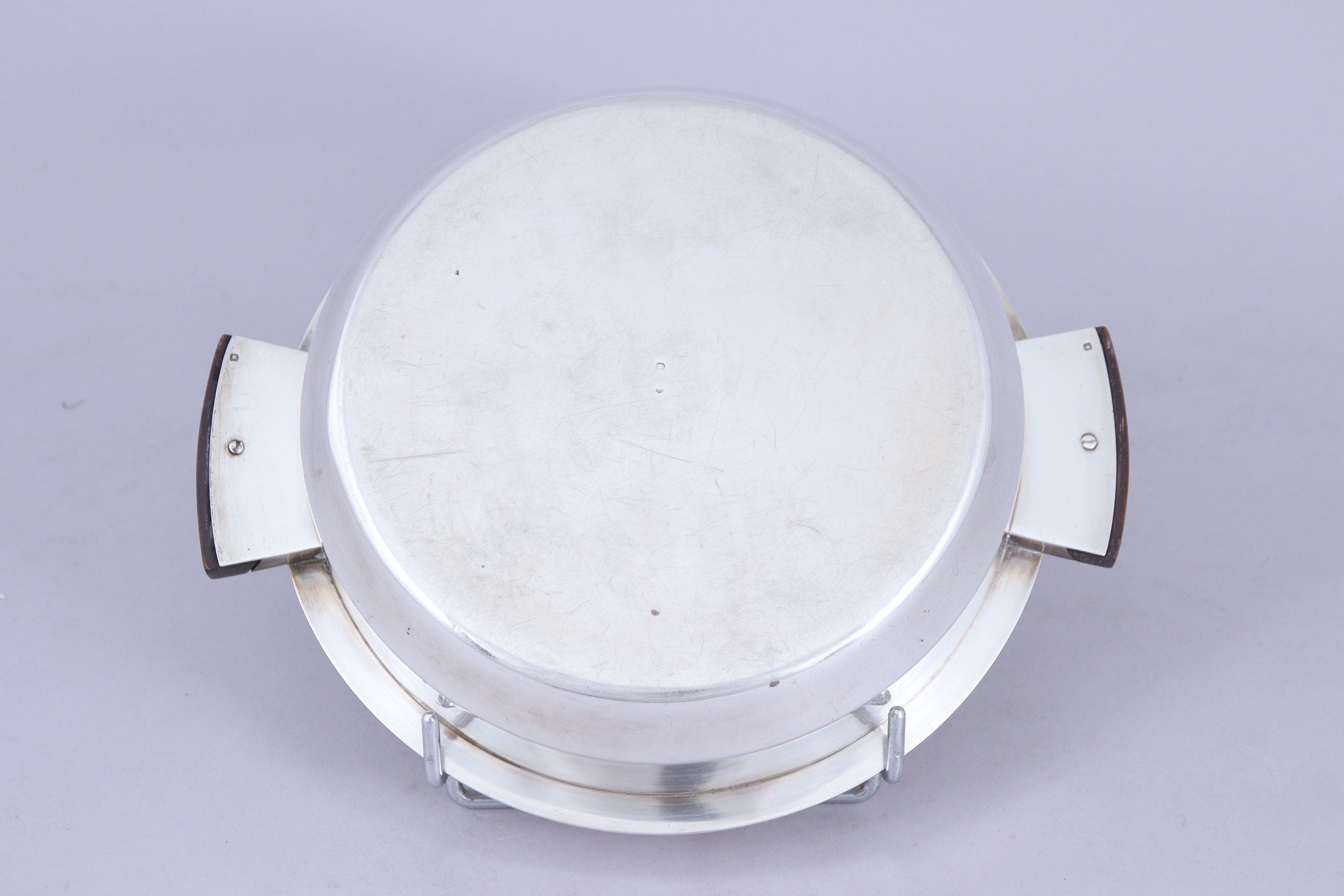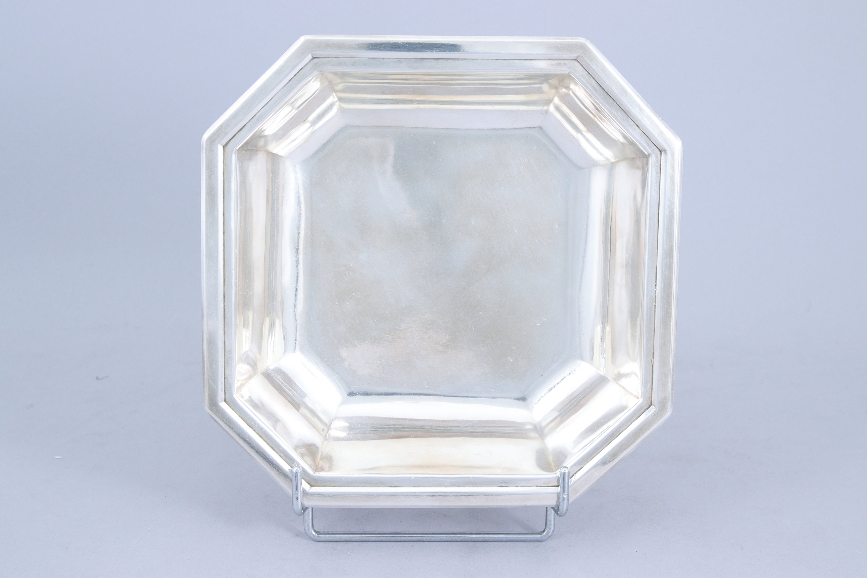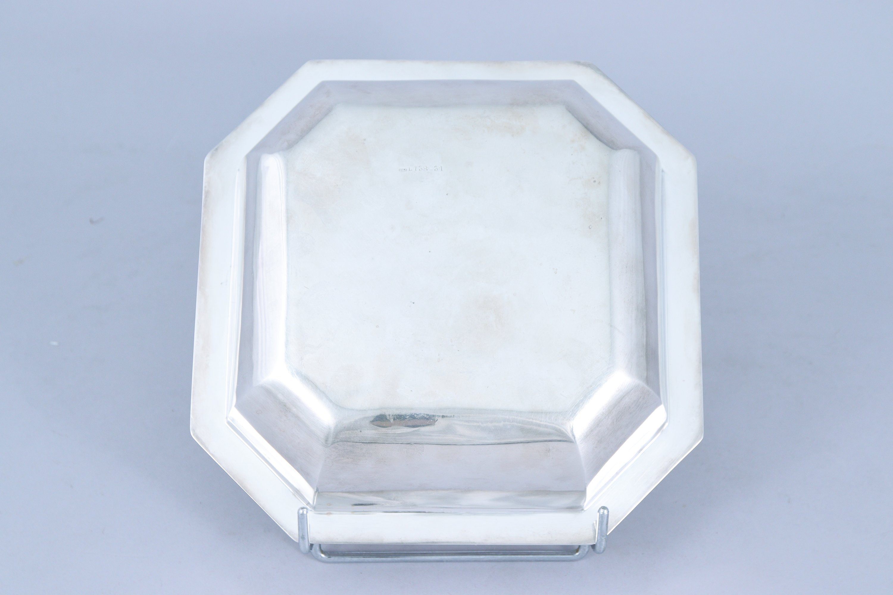 JOINT: JATTE en métal argenté. Haut. 5,5, Long. 23,3, Larg. 23,3 cm.