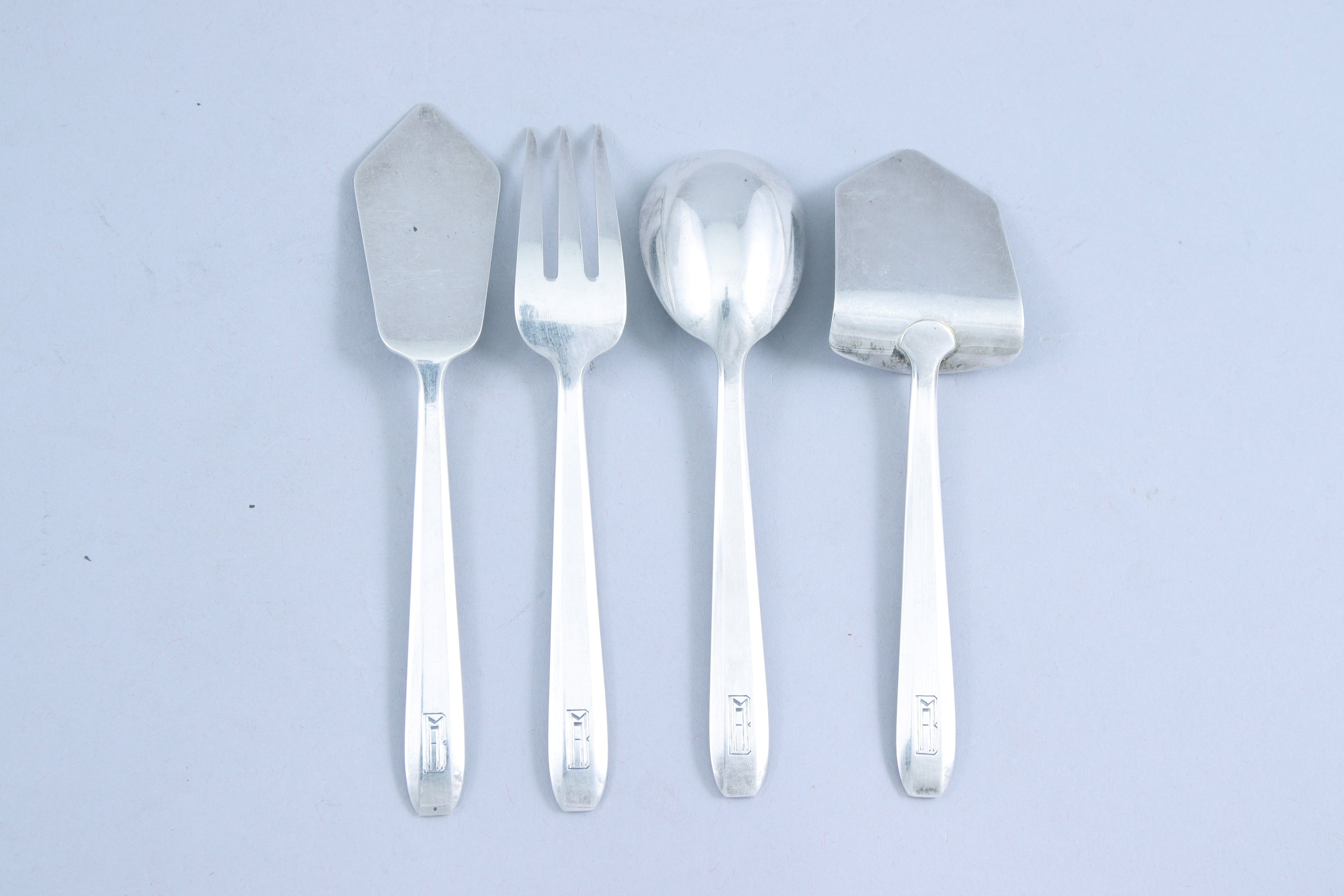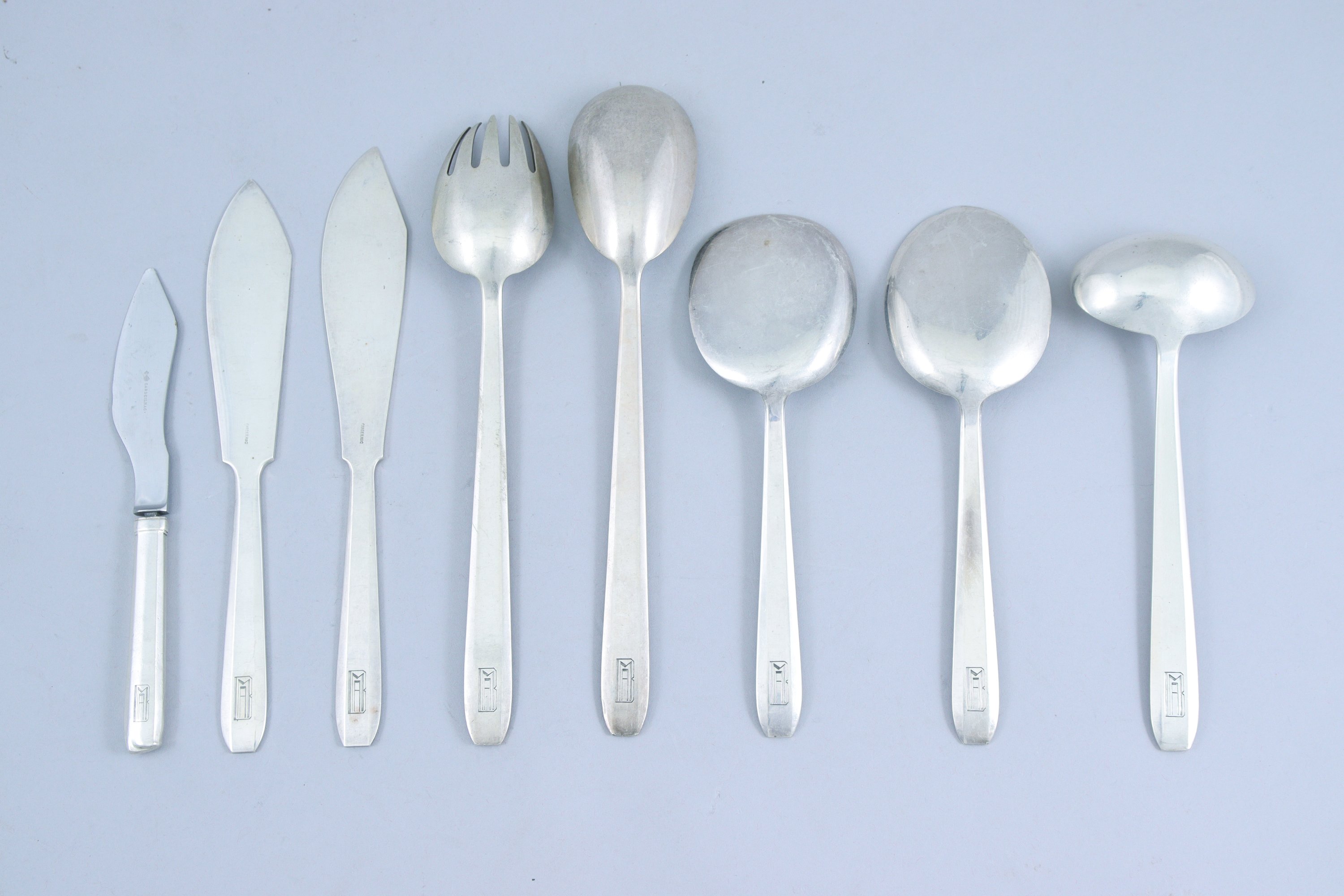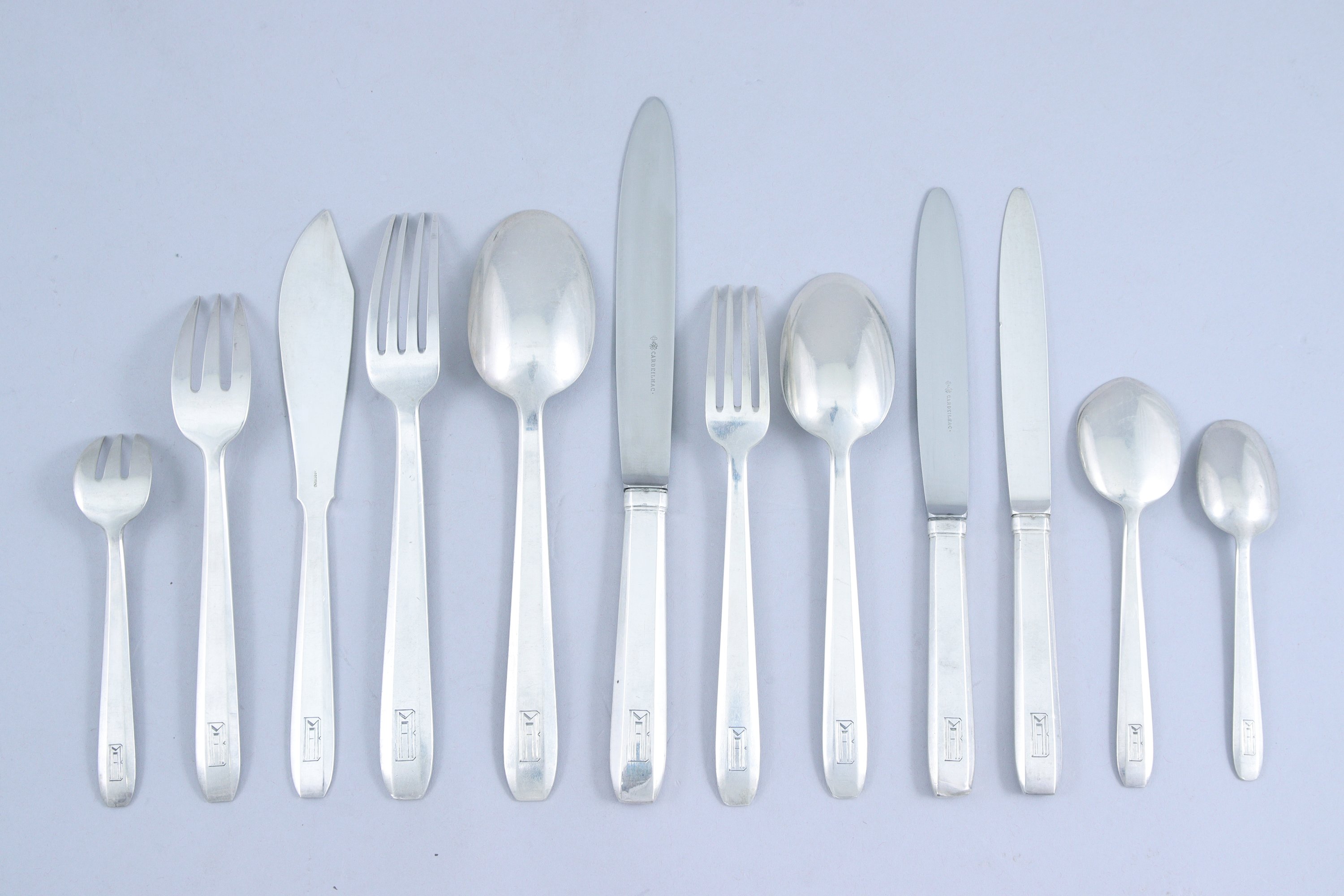 CARDEILHAC. MÉNAGÈRE de 182 pièces en argent de style Art Déco monogrammée "MAB", pour Marianne Alfred Bensaude, comprenant: