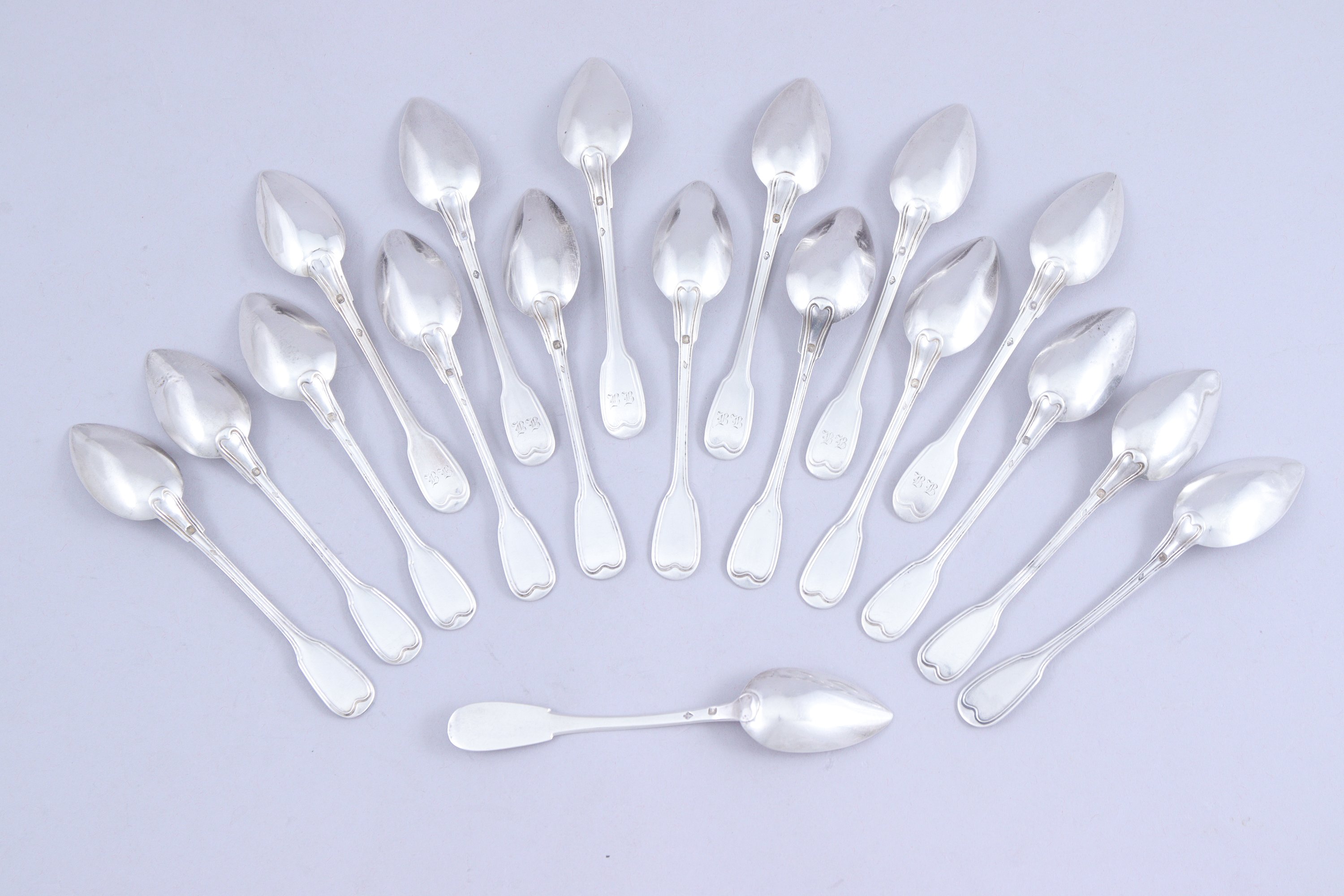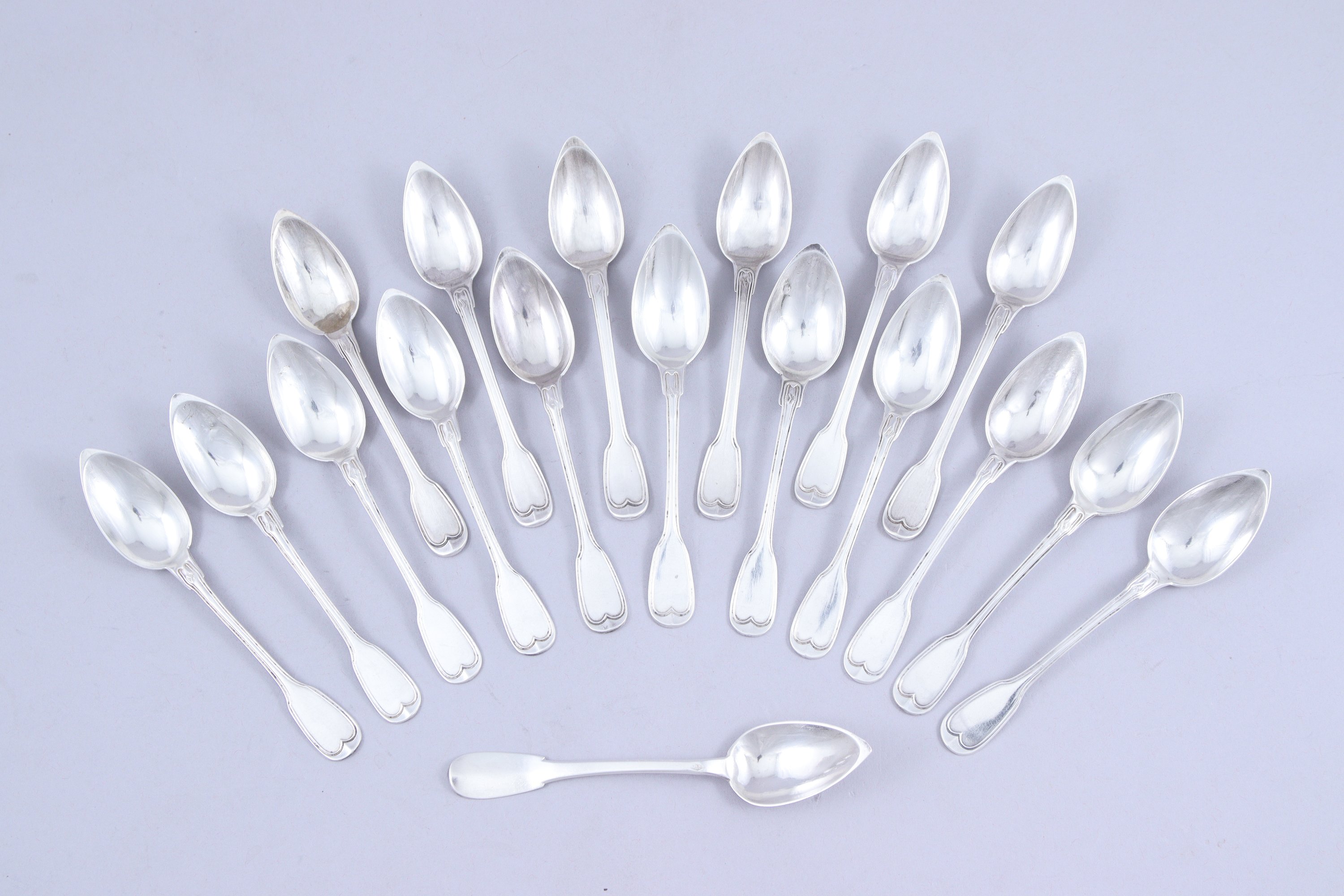 DIX-SEPT CUILLERS à MOKA en argent, modèle filet et une à modèle Uniplat.