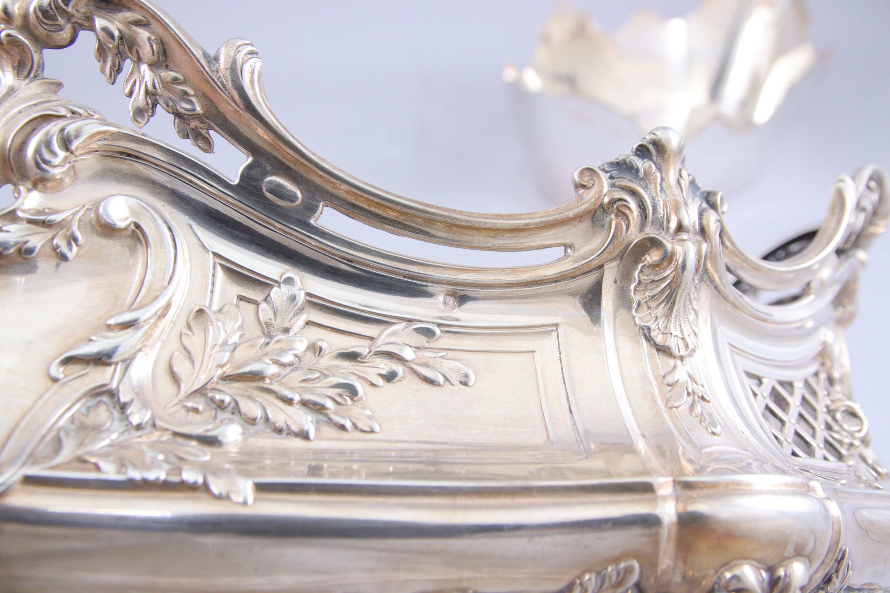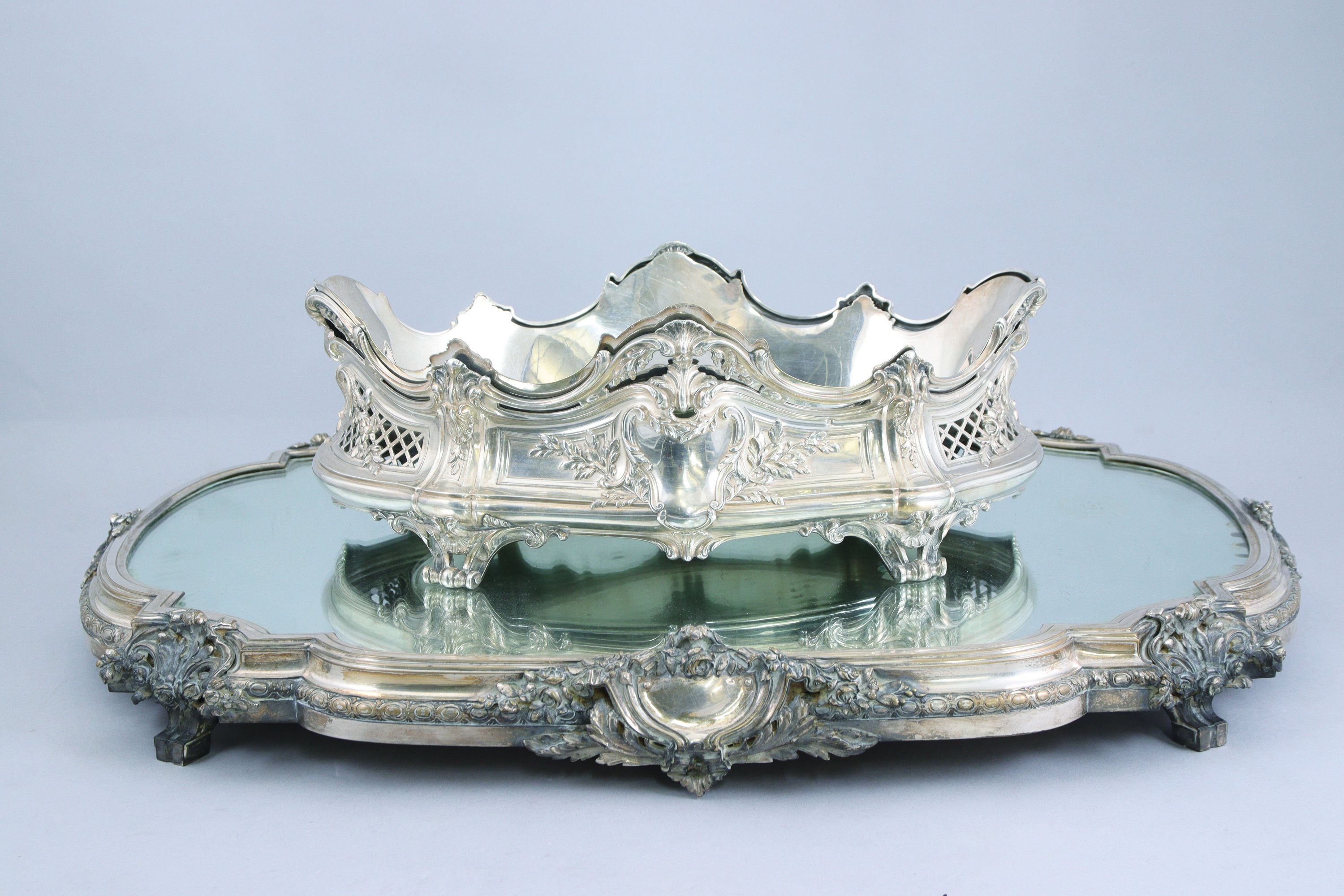 JARDINIÈRE en argent et SURTOUT en métal argenté.
